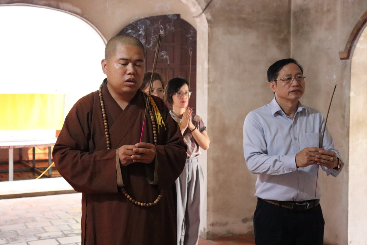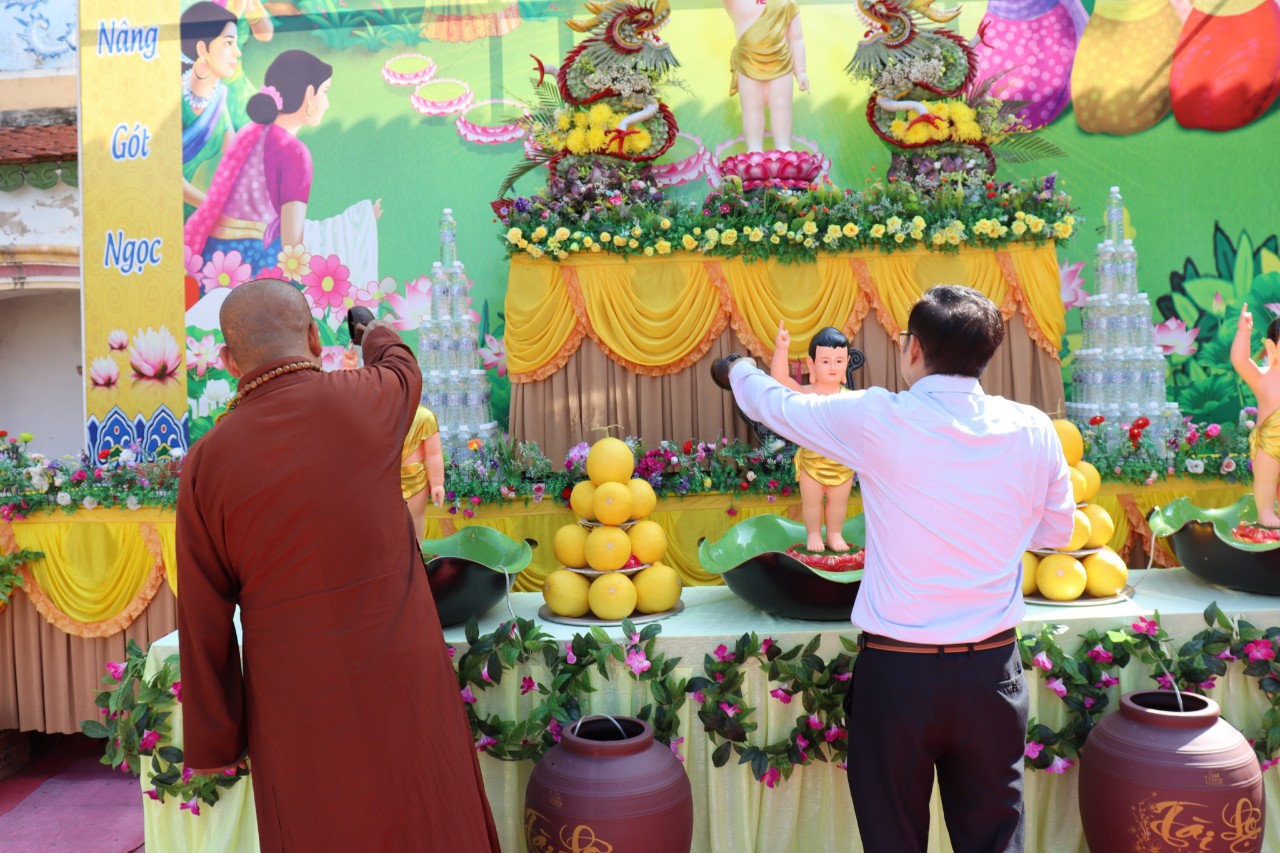 Thay mặt nhà chùa Đại đức Thích Tâm Hưng gửi lời cảm ơn và chúc mừng đến quý lãnh đạo huyện cùng gia đình có một mùa Phật đản an lành hạnh phúc, thành tựu sở nguyện cũng như xây dựng quê hương Nga Sơn phát triển phồn thịnh. Qua đây, Đại đức cũng hướng dẫn đoàn dâng hương lễ Phật và thực hiện nghi thức tắm Phật truyền thống của Dân tộc.