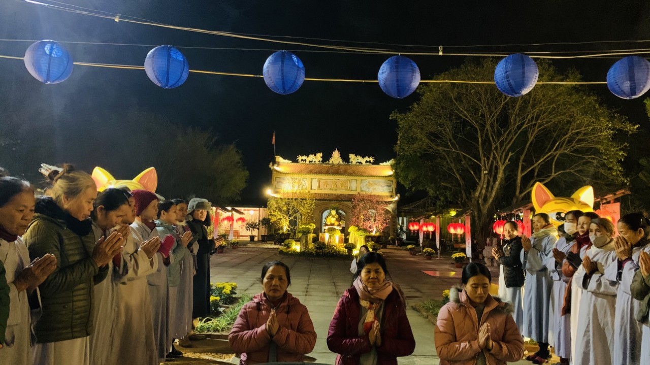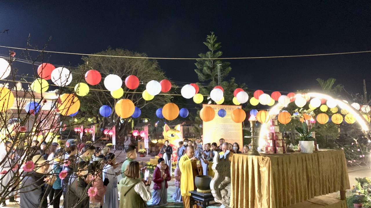 Tại đây, Đại đức trụ trì đã nói lên mục đích ý nghĩa dựng cây Nêu và quý Phật tử đại diện đã dang hương cũng như chư Tôn đức đã sái tịnh và quý Phật tử và bà con thập phương có mặt dựng cây nêu trong niềm hoan hỷ cây Nêu được dựng trong khuôn viên chùa từ tối ngày 27/12 - 08/01/Quý Mão (18 - 29/01/ 2023).