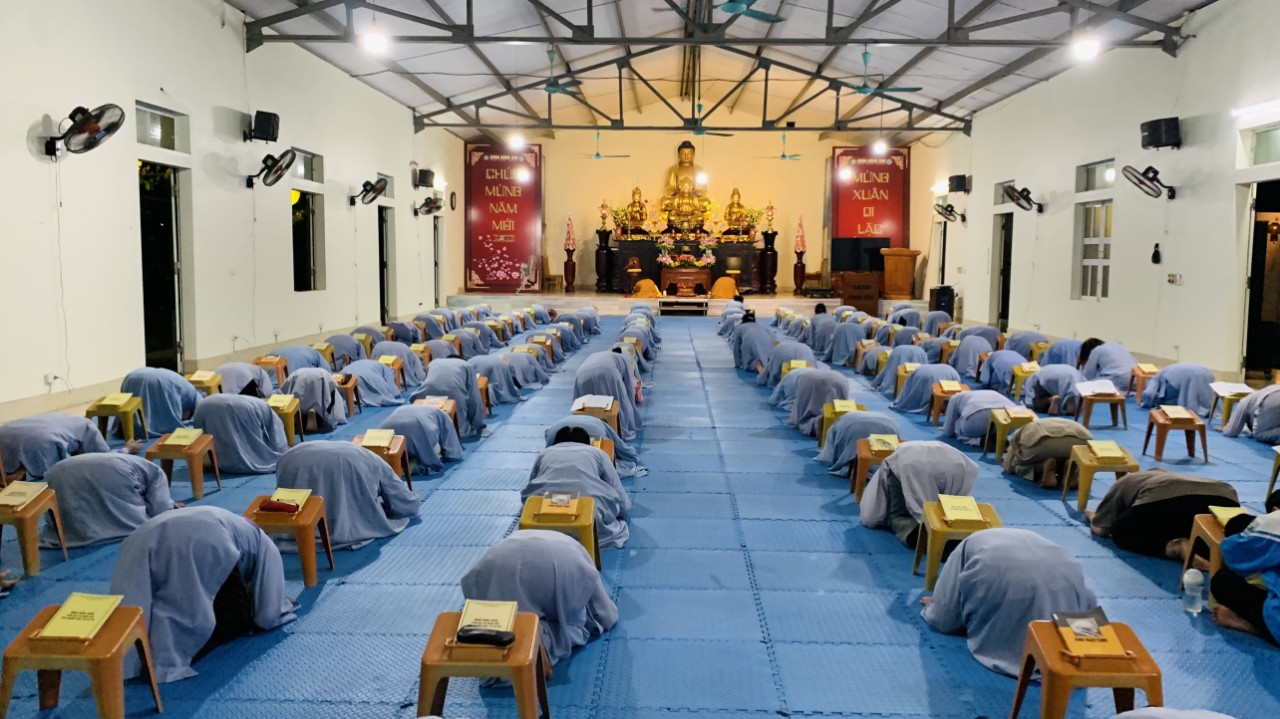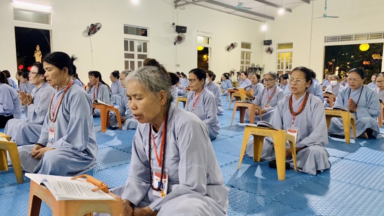 Mở đầu Phật tử Tịnh Hùng, Trưởng đạo tràng Yên Pháp đã ôn lại nội quy sinh hoạt. Tiếp đó, Đại đức Thích Tâm Hưng đã hướng dẫn đại chúng đọc tụng kinh chú, lễ lạy xưng tán hồng danh chư Phật và ôn lại Tam Quy ngũ giới. Và Đại đức cũng có những lời vàng ngọc chia sẻ đến đại chúng giúp đại chúng giữ vững tâm Bồ Đề.