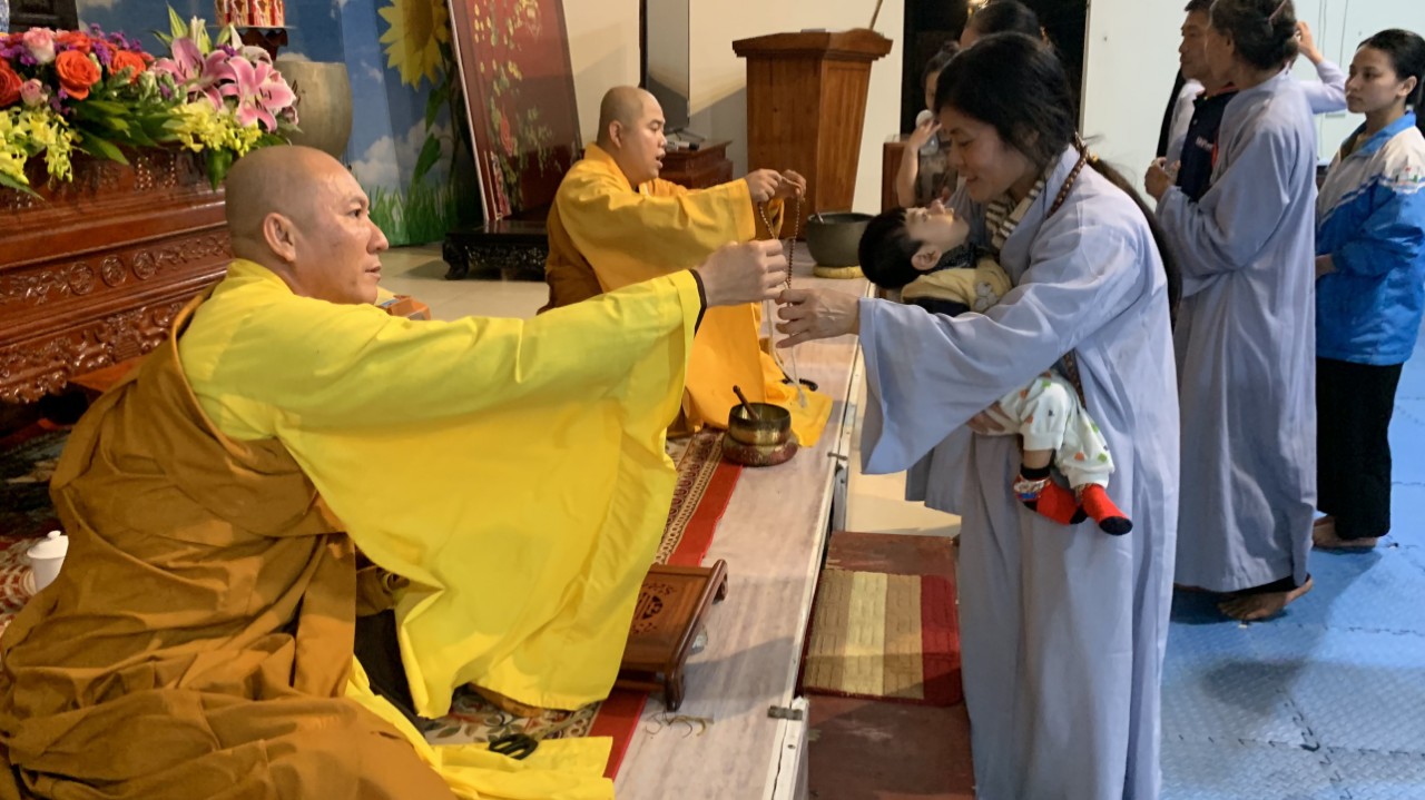 Trước khi buổi lễ kết thúc, quý Thầy đã gửi tặng những phần quà tới đại chúng đang có mặt, đại chúng cùng nhau thọ lộc Phật.