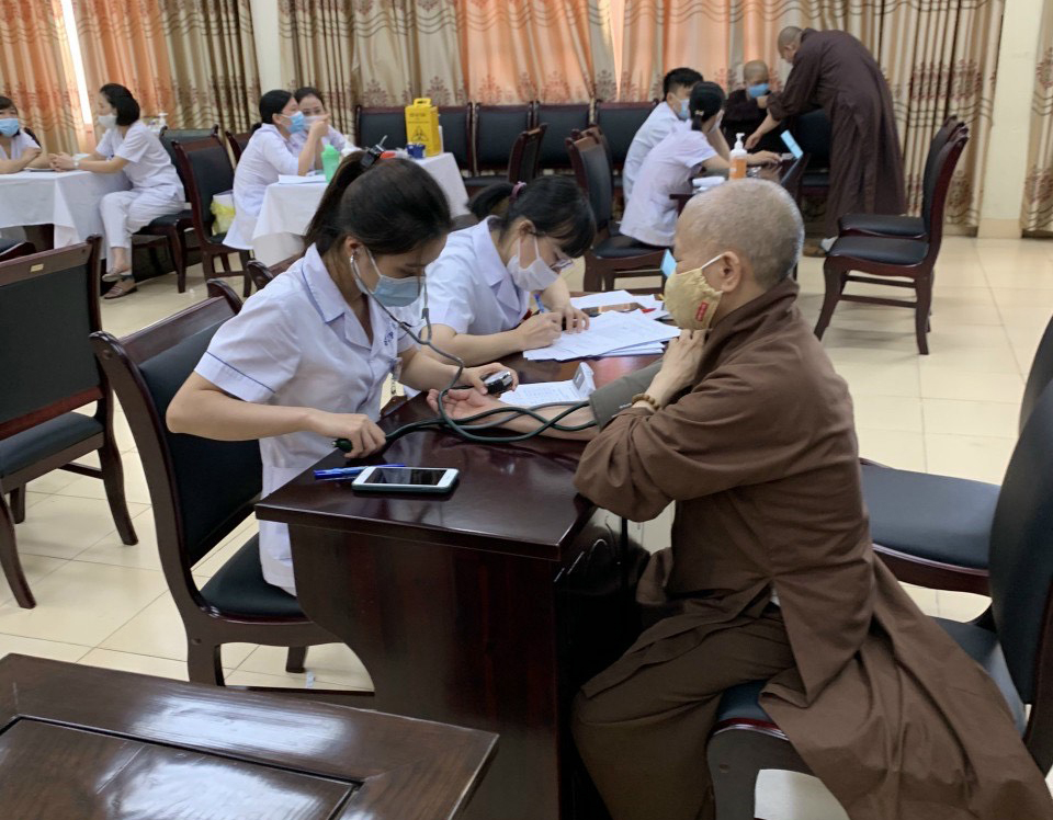 Trước khi tiêm vắc xin, chư Tôn đức Tăng Ni được các bác sĩ khám sàng lọc sức khoẻ trước tiêm và sau khi tiêm ở lại theo dõi tại chỗ 30 phút trước khi về trú xứ.