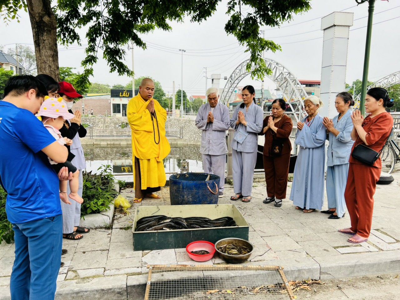 Sau thời khóa trì tụng kinh Địa tạng do Phật tử Diệu Thăng hướng dẫn; Đại đức Thích Tâm Hưng cùng đại chúng đã thực hiện lễ phóng sinh trên dòng sông Hưng Long.