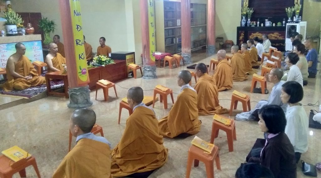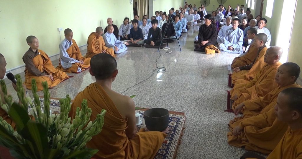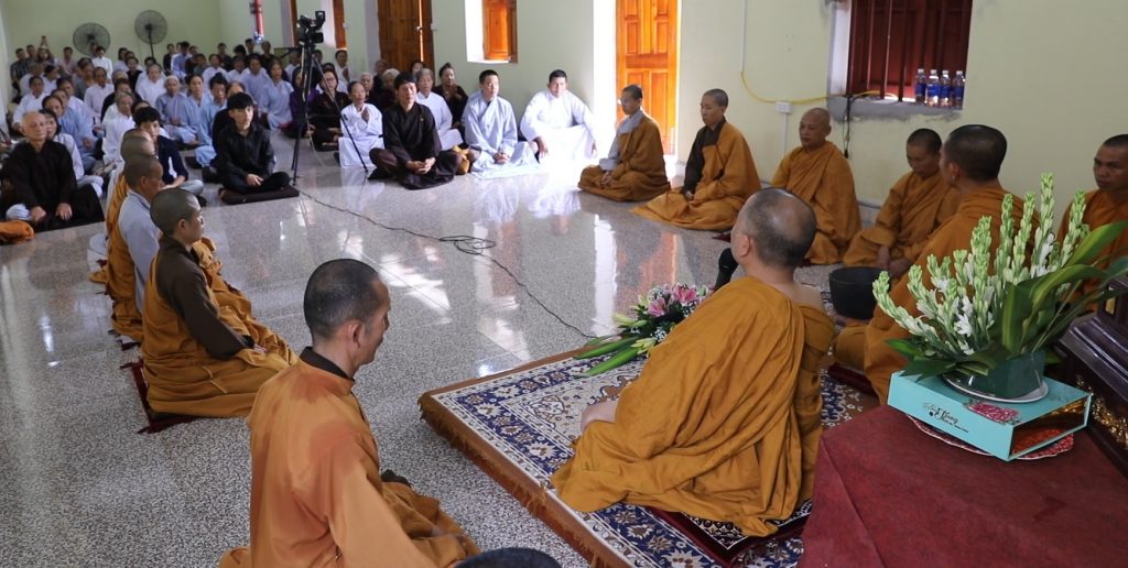 Tiếp theo là thời khóa trao truyền giới pháp, đại diện cho hàng Phật tử tại gia dâng lời tác bạch lên chư Tôn đức Giảng sư nguyện xin được ngõ hầu học tu cung thỉnh các bậc sứ giả của Như Lai trao truyền giới pháp để hàng Phật tử tại gia tu học nương theo từ đó được tạo thêm phước lành cho tự thân cũng như toàn thể đại chúng.