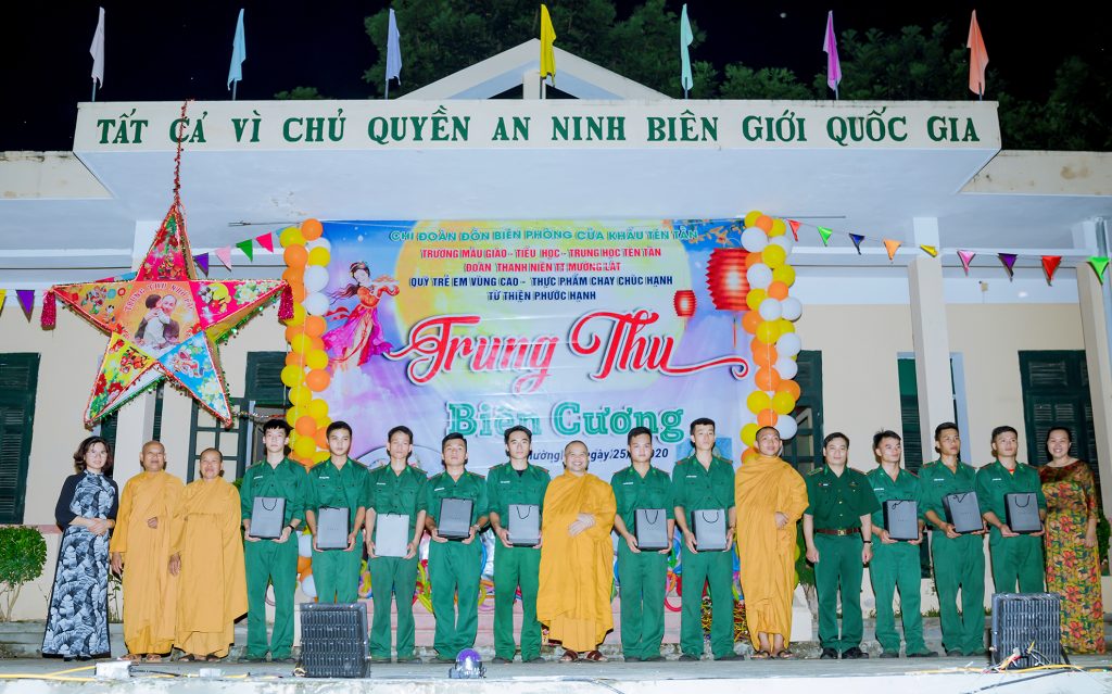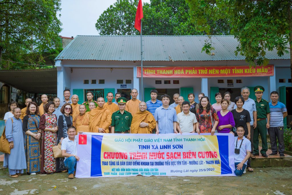 PSO - Trong hai ngày 25 và 26/09/2020 (nhằm ngày 09 và 10/8 năm Canh Tý), Đoàn từ thiện Tịnh xá Linh Sơn (xã Trung Thành, huyện Nông Cống, tỉnh Thanh Hóa) cùng các nhóm từ thiện các mạnh thường quân, nhà hảo tâm đến từ TP. HCM, TP. Hà Nội, TP. Hạ Long (tỉnh Quảng Ninh), TP. Biên Hòa (tỉnh Đồng Nai) đã đến huyện vùng cao biên giới Mường Lát (tỉnh Thanh Hóa) tổ chức nhiều chương trình trao tặng quà từ thiện. Các phần quả đươc trao tới Chiến sỹ Bộ đội Đồn Biên phòng Tén Tằn, Đồn Biên phòng Hiền Kiệt, Đồn Biên phòng Tam Chung, chốt phòng dịch biên giới, Trạm Biên phòng cửa khẩu Tén Tằn, Công an Biên phòng nước bạn Lào, Bệnh viện và Hải quan cửa khẩu nước bạn Lào.... Bên cạnh đó, đoàn cũng trao tặng giếng khoan nước cho trường Tiểu học, trường Mầm non (thị trấn Mường Lát); khởi công xây tặng nhà tình thương; công trình vệ sinh và lắp bình nước nóng tại Trường Mầm non Tén Tằn, trồng cây xanh đường ra cửa khẩu Tén Tằn. Đặc biệt, trong chuyến thiện nguyện này, đoàn từ thiện đã tổ chức đêm hội Trăng rằm tại Đồn Biên phòng Tén Tằn cho các em Thiếu niên Nhi đồng trên địa bàn thị trấn Mường Lát.