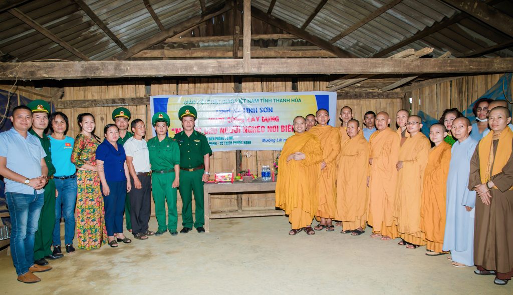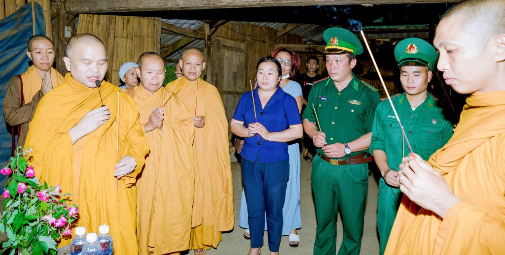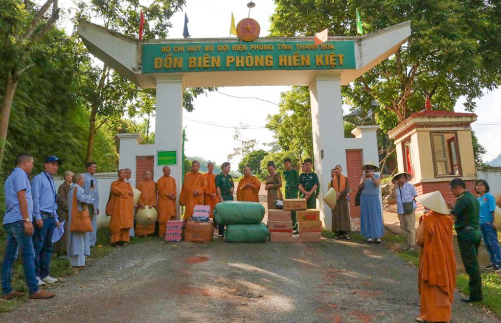 Cũng trong buổi sáng ngày 26/09 Đoàn từ Thiện do TT. Thích Giác Hoàng đã đến trao tặng quà cho các chiến sỹ chốt phòng dịch Biên giới ngay đầu nguồn con sông Mã, sát với biên giới Việt Nam và nước bạn Lào, Thượng tọa đã có lời động viên thăm hỏi ân cần các chiến sỹ Biên phòng đang làm nhiệm vụ nơi tuyến đầu Biên cương.