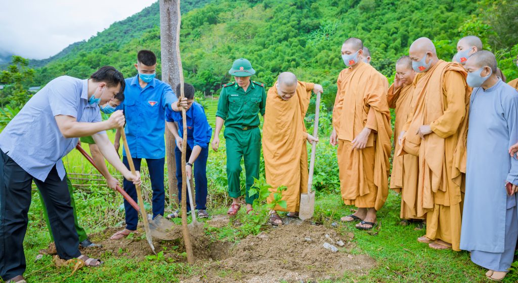 Tiếp đó là chương trình trồng cây xanh vì môi trường. Đoàn từ thiện cùng với các ông, bà đại diện chính quyền địa phương thị trấn Mường lát, Công an huyện, Đồn Biên Phòng Tén Tằn đã trồng hàng cây xanh lưu niệm dài hơn 1km trên đường ra cửa khẩu Tén Tằn.