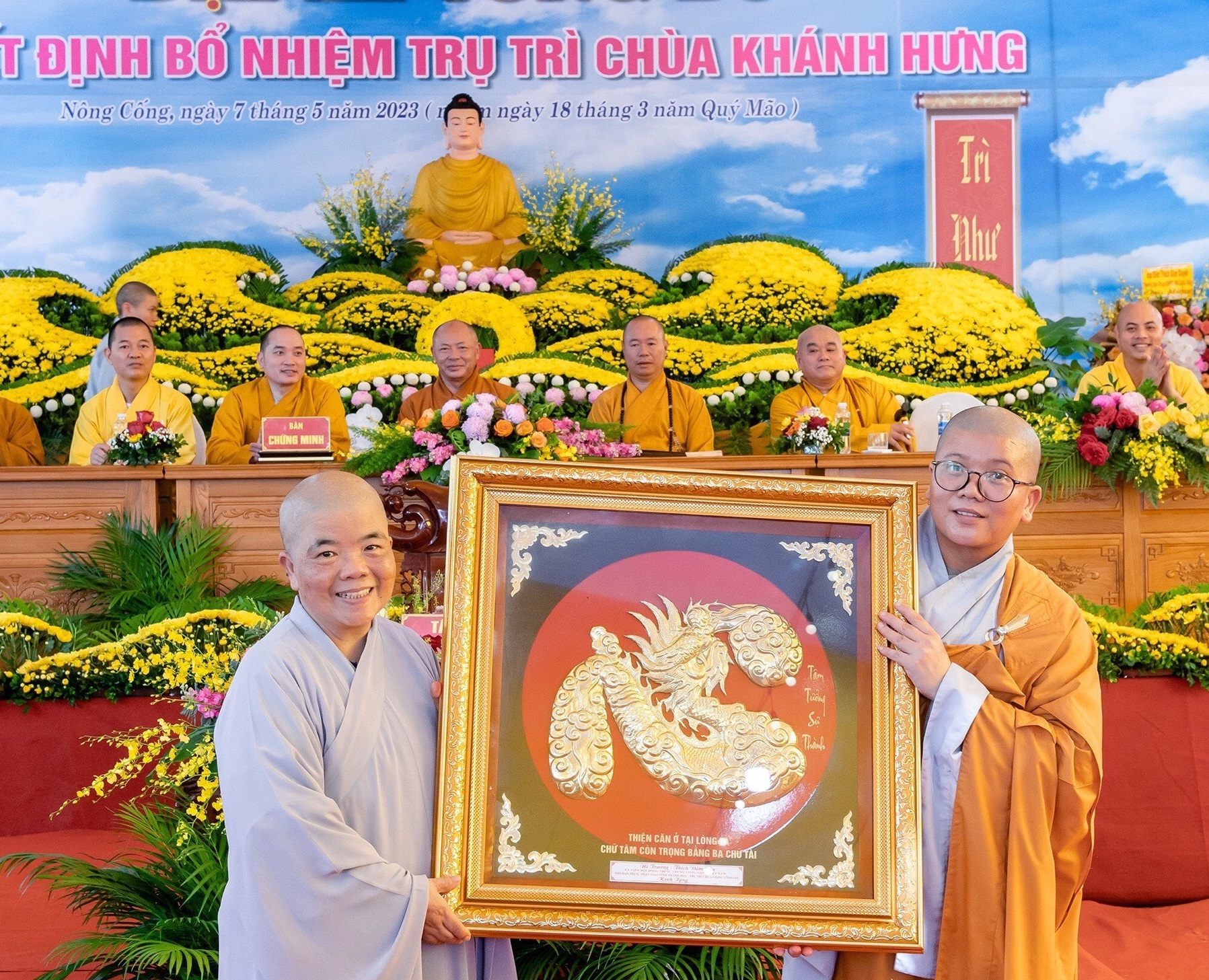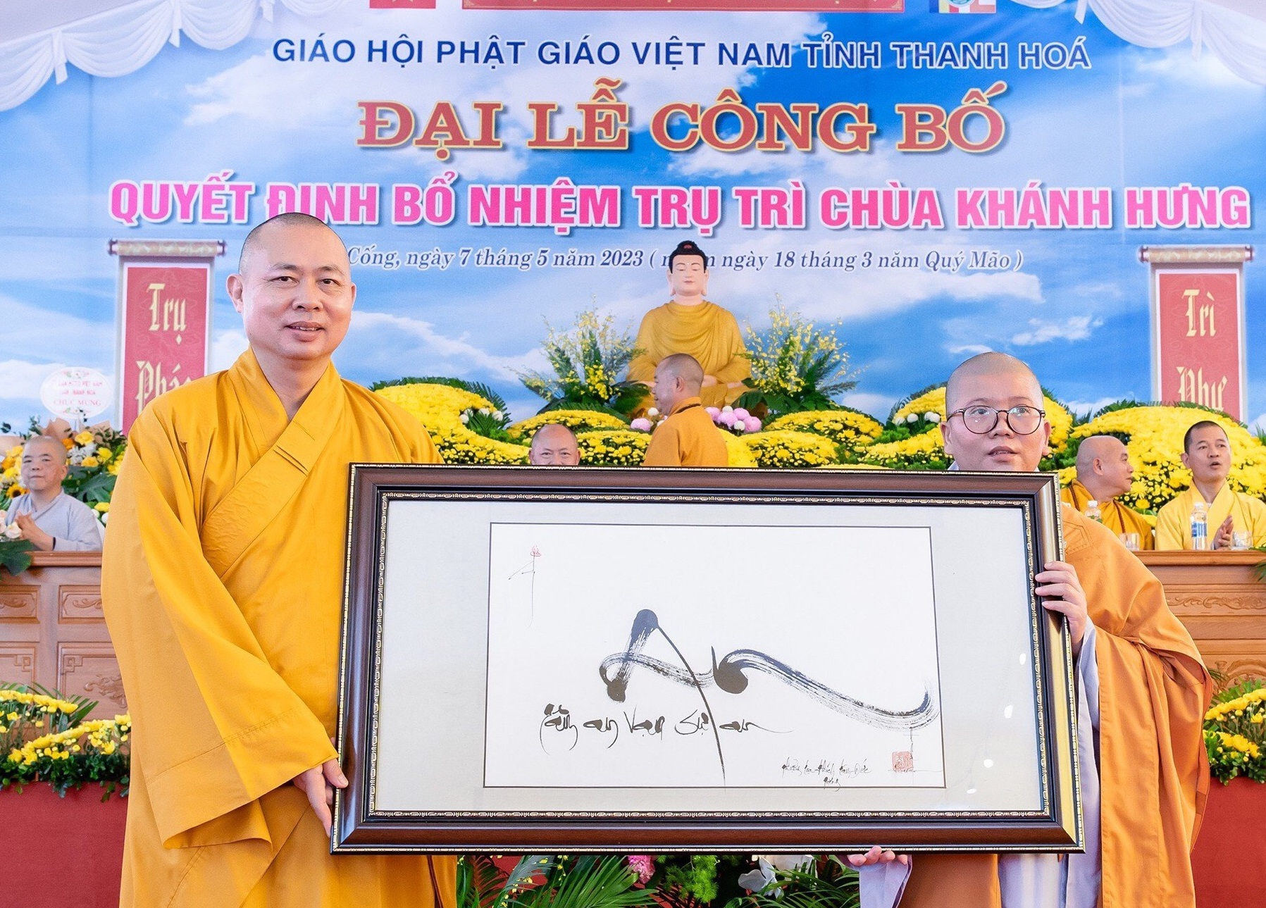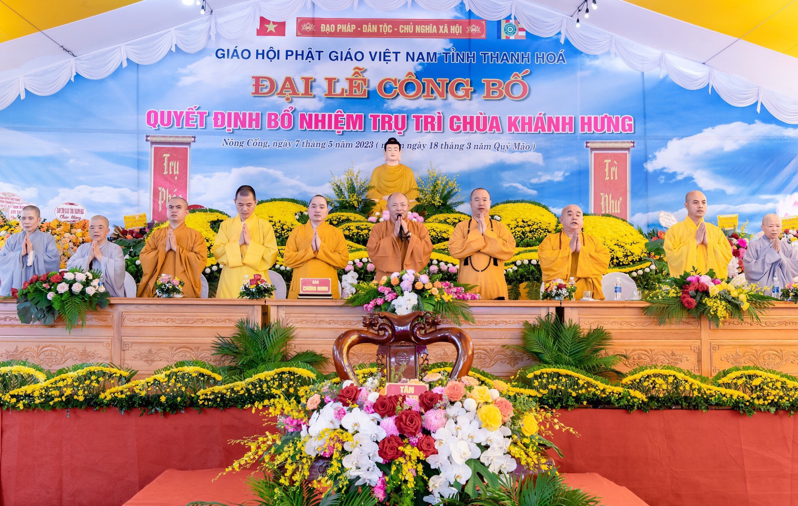 PSO - Sáng ngày 07/05/2023, Ban Trị sự GHPGVN tỉnh Thanh Hóa đã tổ chức lễ trao Quyết định bổ nhiệm trụ trì chùa Khánh Hưng (xã Tân Thọ, huyện Nông Cống) đến Sư cô Thích Nữ Nhuận Quân.