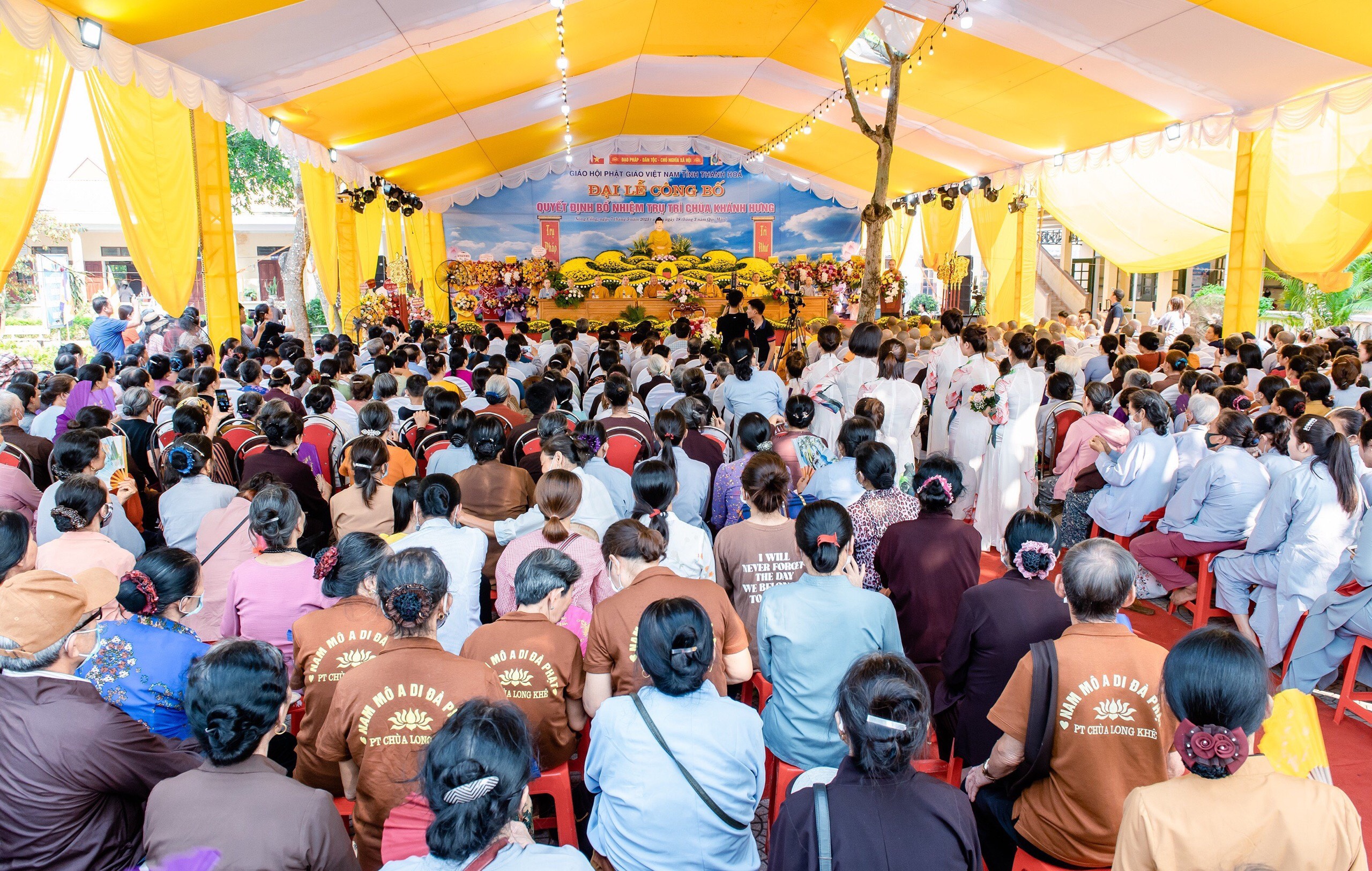 Quang cảnh buổi lễTại buổi lễ, ông Nguyễn Văn Sơn, Chủ tịch UBND xã Tân Thọ phát biểu khai mạc đã sơ lược đôi nét về lịch sử hình thành và phát triển của chùa Khánh Hưng cũng như quá trình hành đạo của Sư cô Thích Nữ Nhuận Quân. Việc bổ nhiệm trụ trì kịp thời đáp ứng được nhu cầu sinh hoạt tôn giáo của đông đảo tín đồ Phật tử tại chùa Khánh Hưng và nhân dân các xã phụ cận.