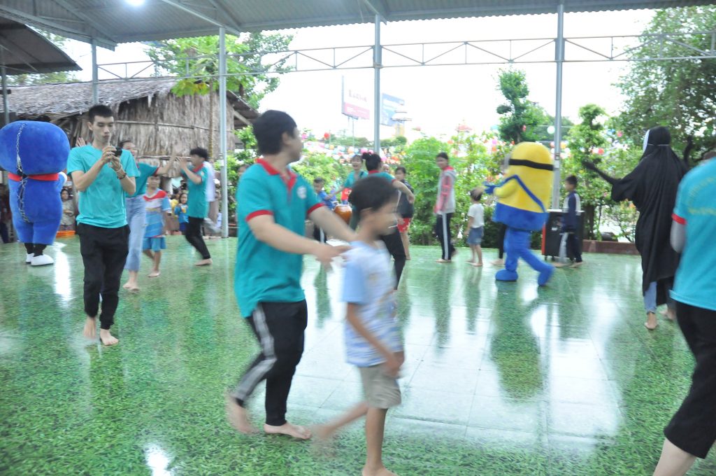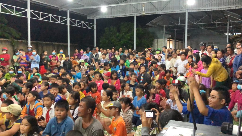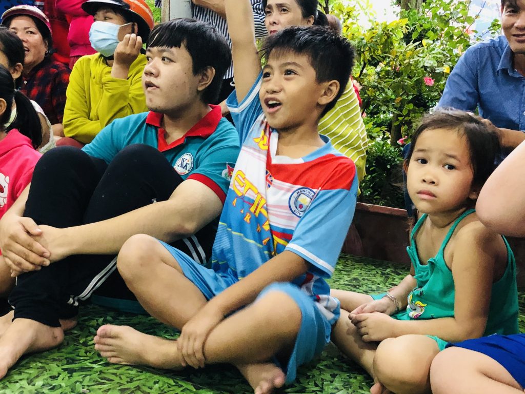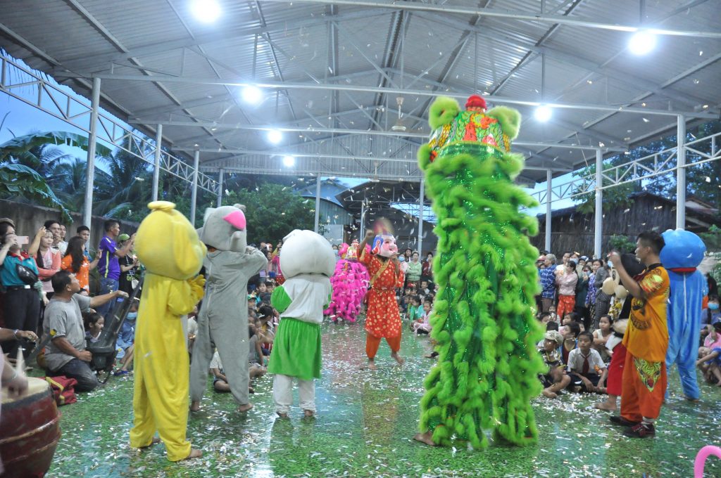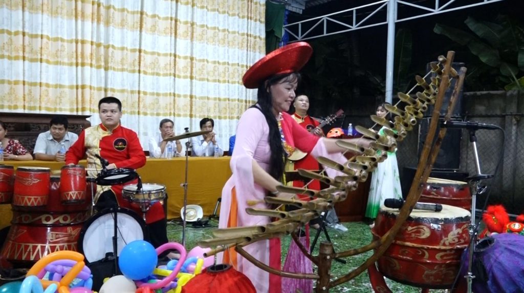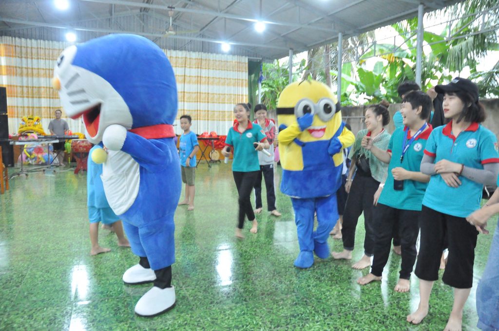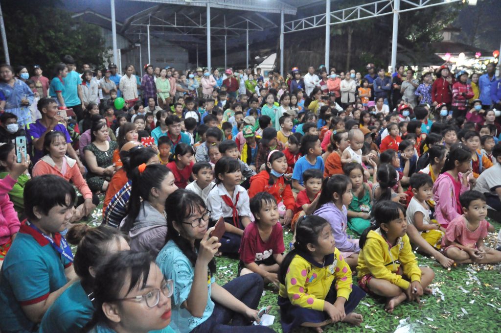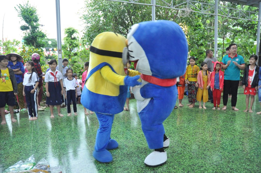 Tiếp theo, các em nhỏ được nhận quà bánh từ ban tổ chức, được vui chơi với chị Hằng và chú Cuội, đố vui nhận quà, nô đùa với các chú thú nhồi bông được các anh chị hóa trang, nghe kể các truyện cổ tích của anh chị tình nguyện viên chùa Hoằng Pháp, nghe ca hát, chọc ghẹo cùng các con Lân và Ông Địa. Đặc biệt là được các anh chị trong Cty nhạc cụ Vân Anh giới thiệu về các nhạc cụ như Đàn T’rưng, đàn Đá … đều là những nhạc cụ đặc sắc trong kho tàng nhạc khí Tây Nguyên.