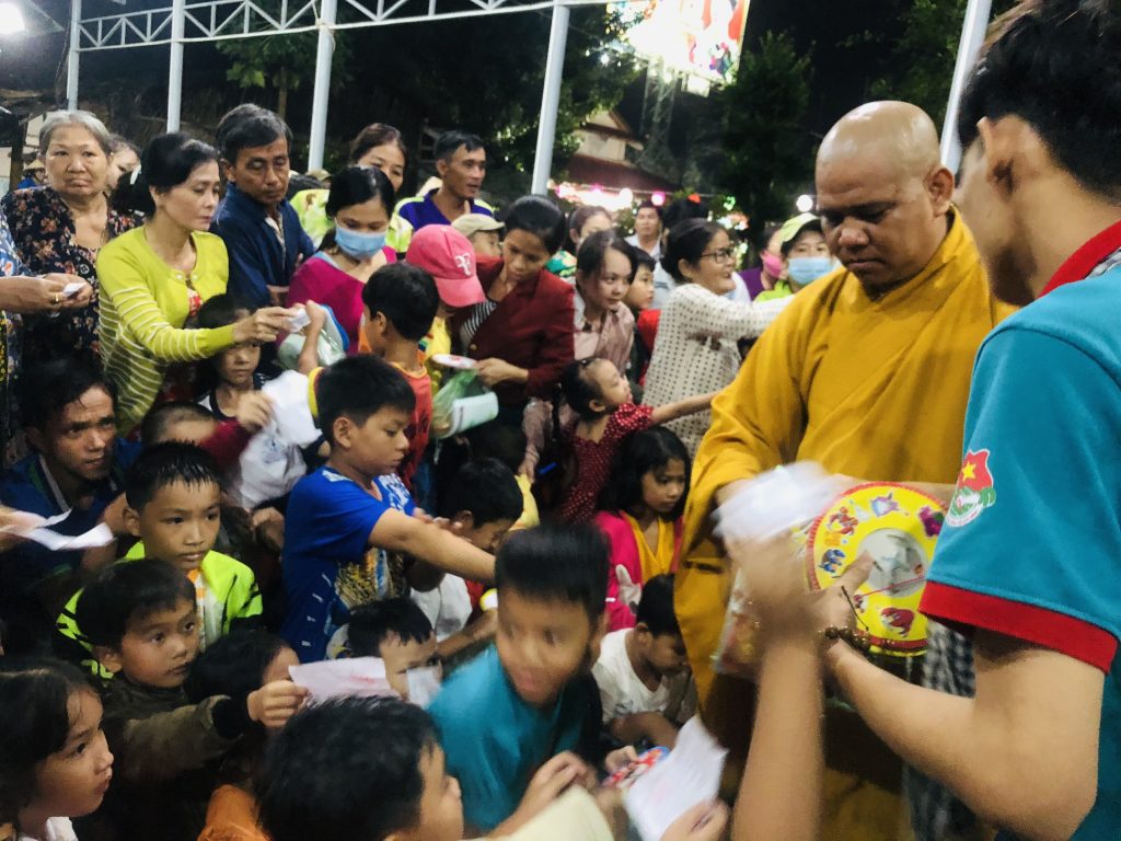 PSO - Chiều ngày 27/09/2020 (nhằm ngày 11/08 năm Canh Tý), TT.Thích Trung Chánh - Ủy viên Thường trực BTS GHPGVN tỉnh Tiền Giang, Trưởng BTS Phật giáo huyện Châu Thành, Trụ trì chùa Phước Lâm (xã Thân Cửu Nghĩa, huyện Châu Thành, tỉnh Tiền Giang) kết hợp lãnh đạo chính quyền xã Thân Cửu Nghĩa, các nhà tài trợ tổ chức vui Tết Trung thu với chủ đề ''Đêm Trăng Cổ Tích'', trao tặng 15 xuất học bổng và hơn 300 phần quà cho các em thiếu nhi tại địa phương.