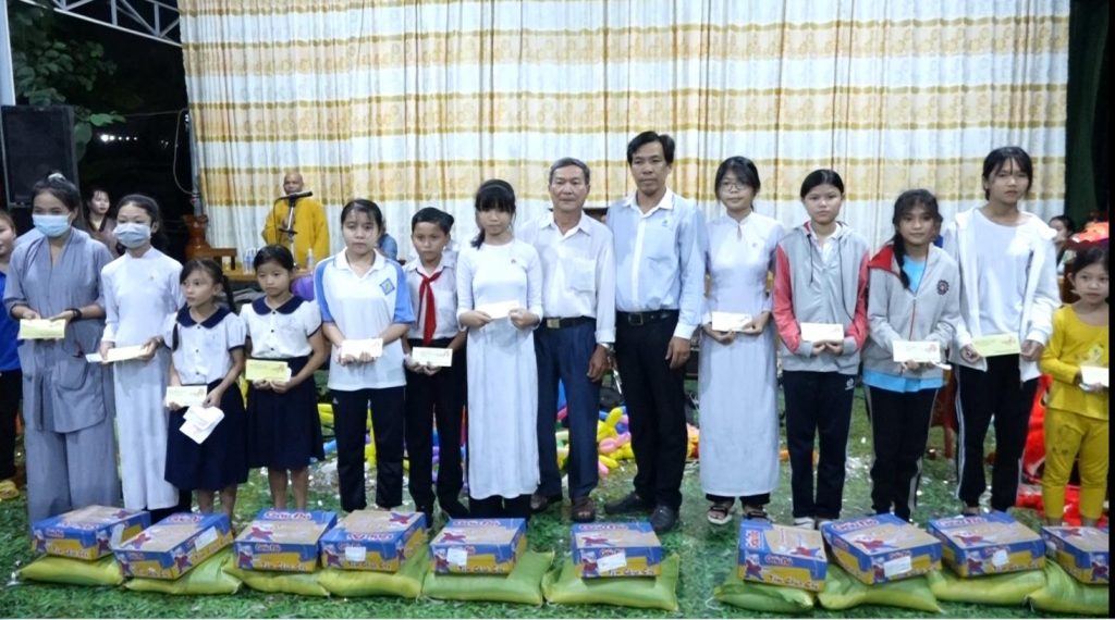 Dịp này TT.Thích Trung Chánh còn tổ chức trao 15 xuất học bổng với tổng trị giá hơn 15 triệu đồng, cho các bạn nhỏ hiếu học nhưng có gia cảnh khó khăn. Mỗi phần học bổng bao gồm: 01 triệu đồng tiền mặt, mì và gạo; góp phần thắp sáng ước mơ cho các em.