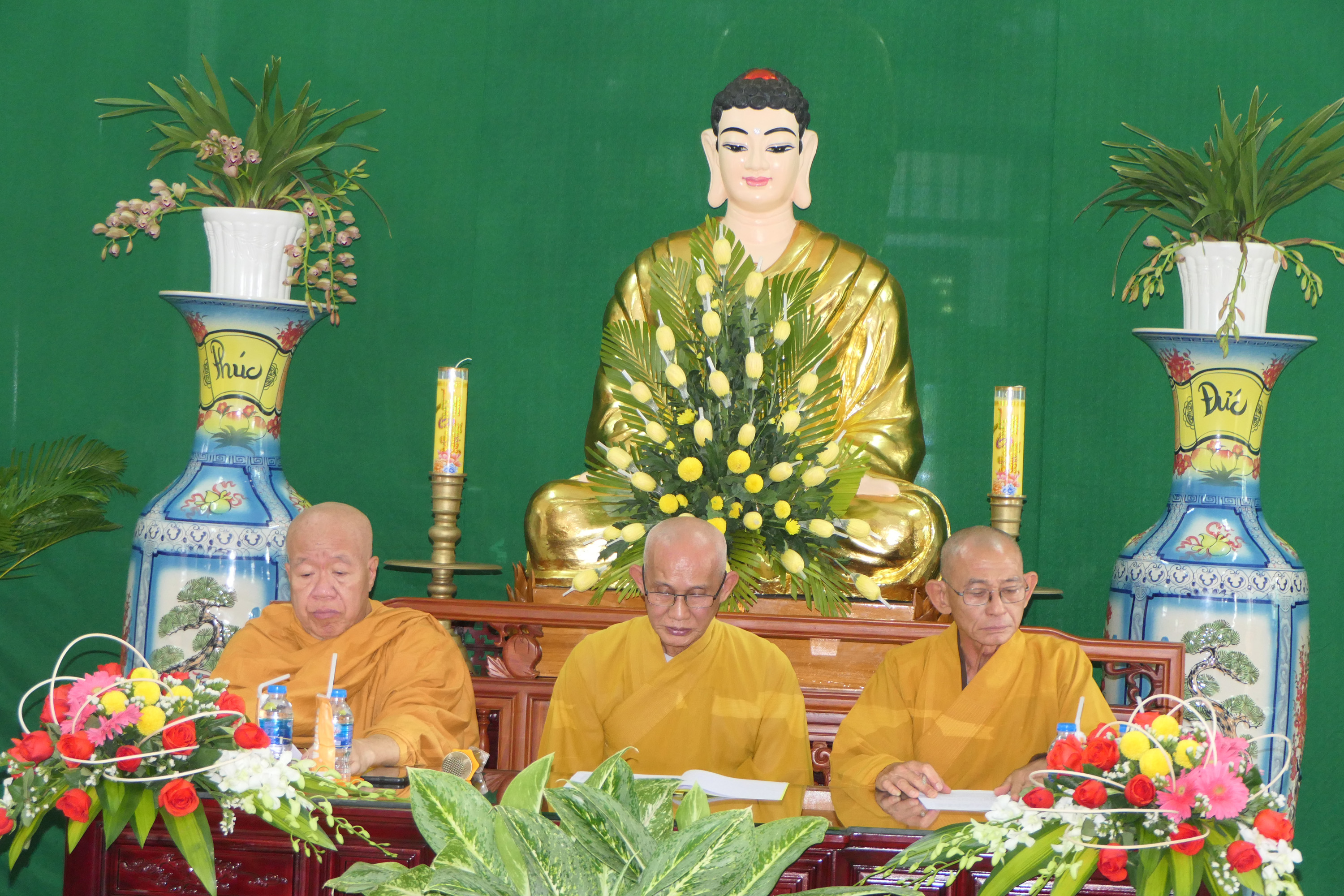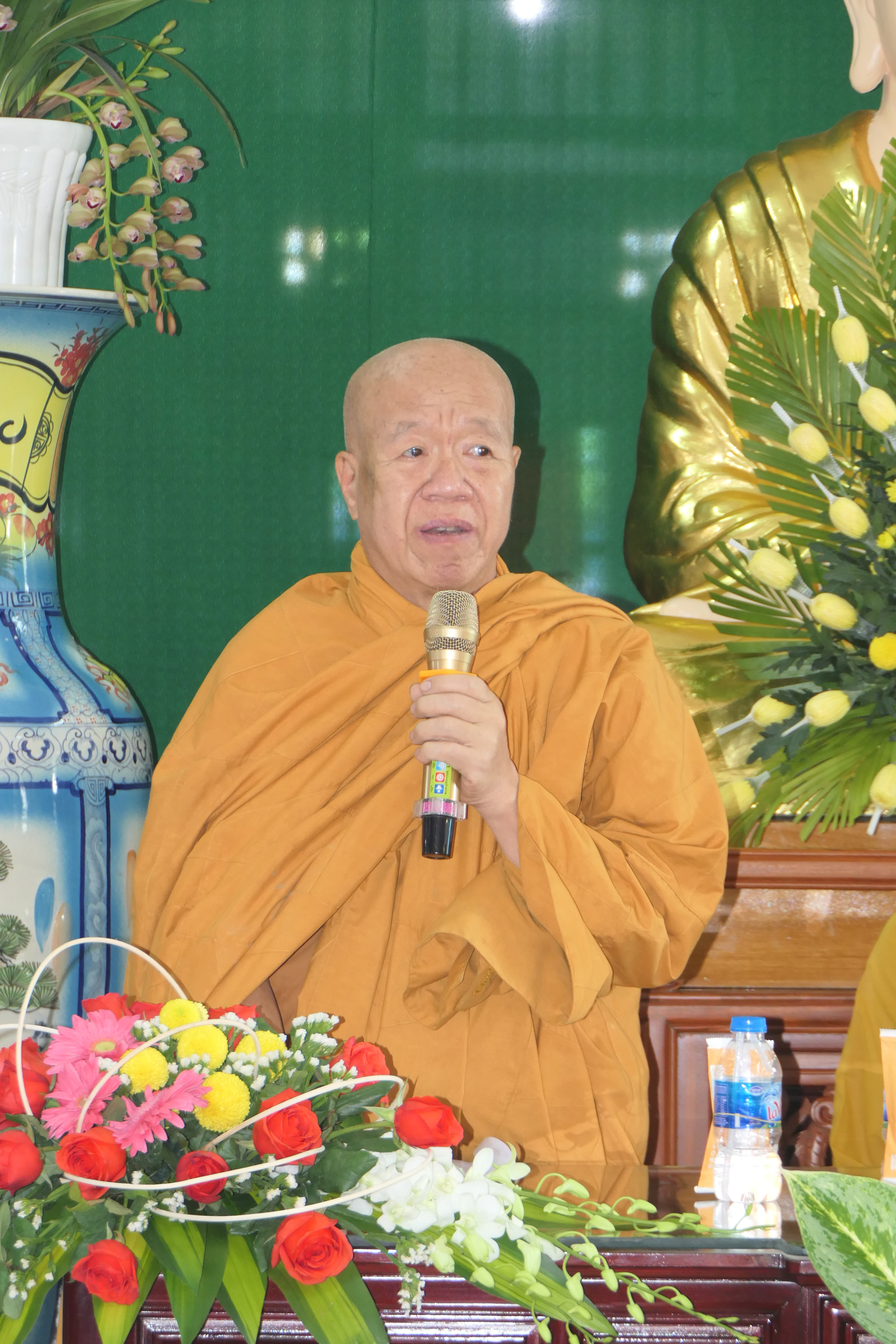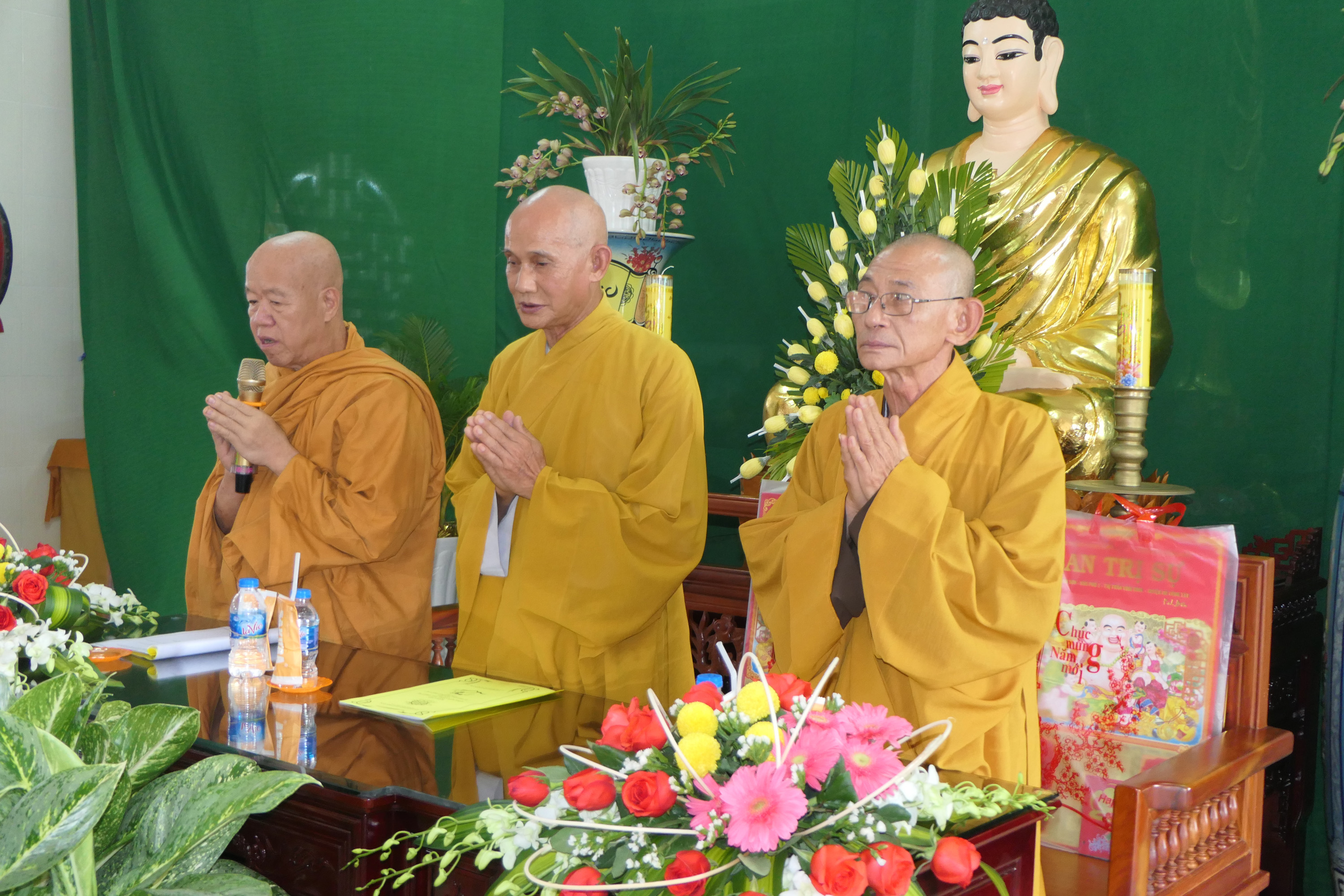 ĐĐ.Thích Trung Phước thay mặt Ban Thư ký đọc quyết định trao Bằng Tuyên dương Công đức của Thường trực BTS tỉnh Tiền Giang và cung thỉnh HT.Thích Trí Huờn trao bằng Tuyên dương đến chư Tăng Ni đạt thành tích hoạt động Phật sự tốt trong năm qua.