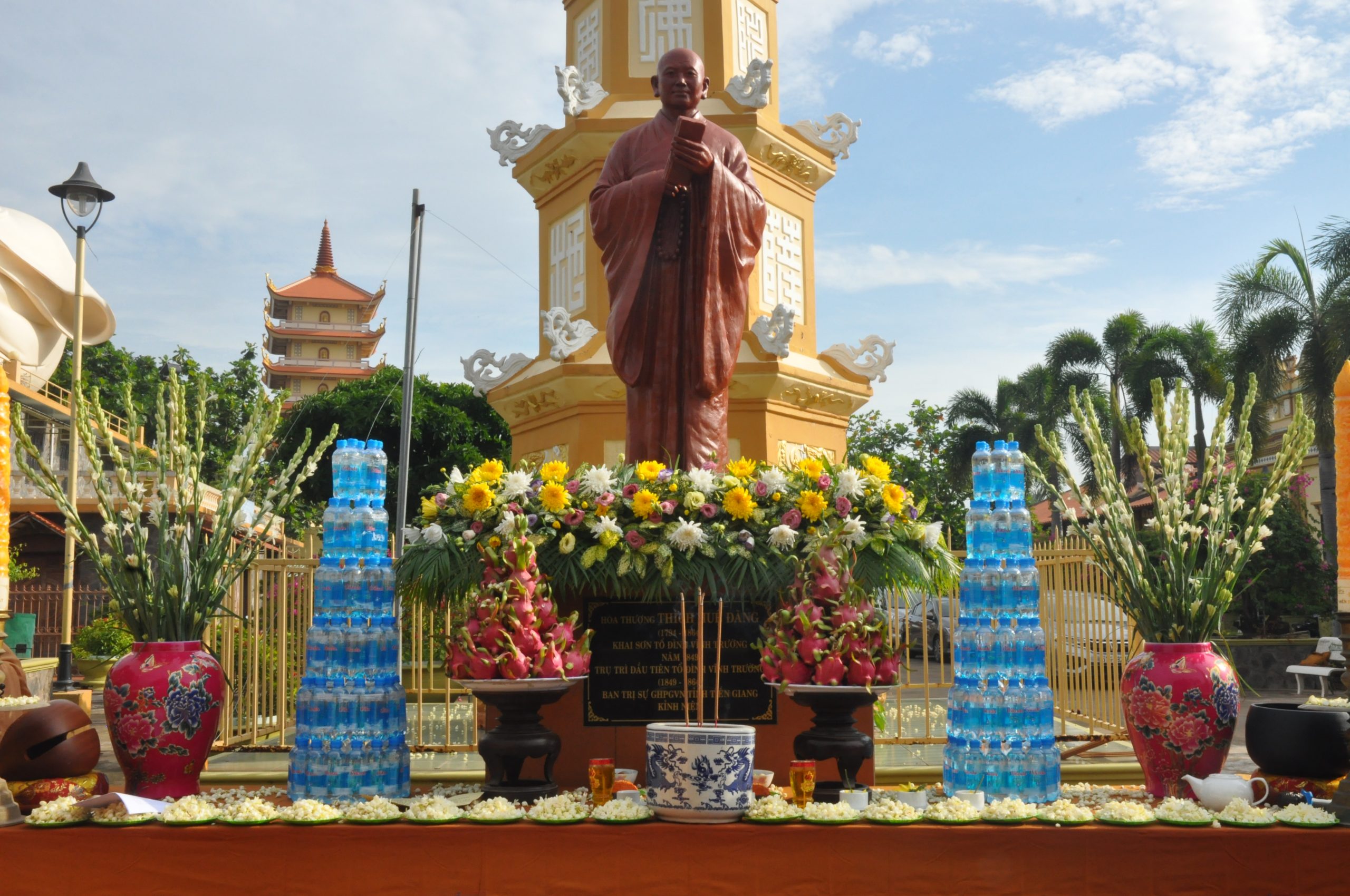Với tấm lòng tri ân đến bậc tiền bối Tổ sư Khai sơn ngôi Già lam tiêu biểu cho Phật giáo tỉnh nhà, HT.Thích Huệ Minh - Ủy viên HĐTS, Trưởng BTS GHPGVN tỉnh Tiền Giang đã phát tâm chế tác Tôn tượng Tổ sư Huệ Đăng bằng chất liệu gốm sứ đỏ Bàu Trúc (Ninh Thuận) và an trí Tôn tượng phía trước ngôi Bảo tháp Tổ sư Huệ Đăng để chư Tăng Ni, Phật tử đảnh lễ, chiêm bái mỗi khi có dịp thăm viếng và vãn cảnh Chùa.