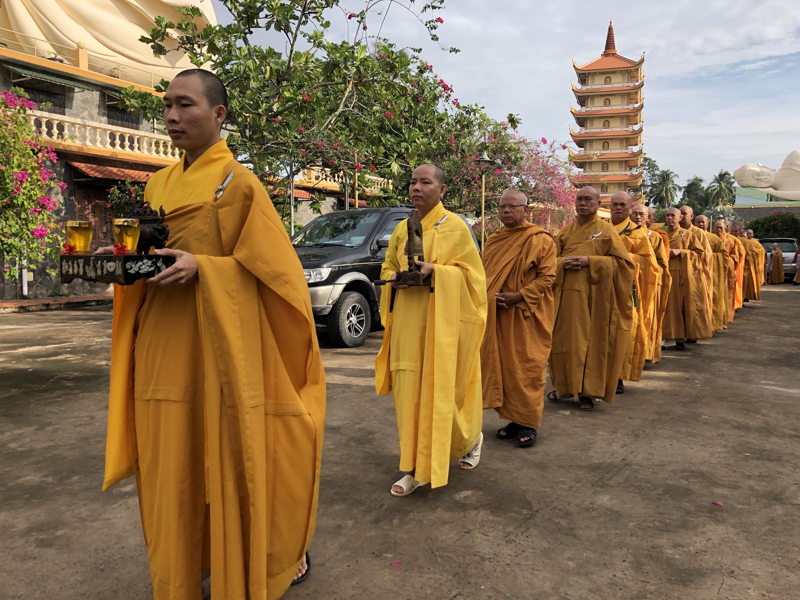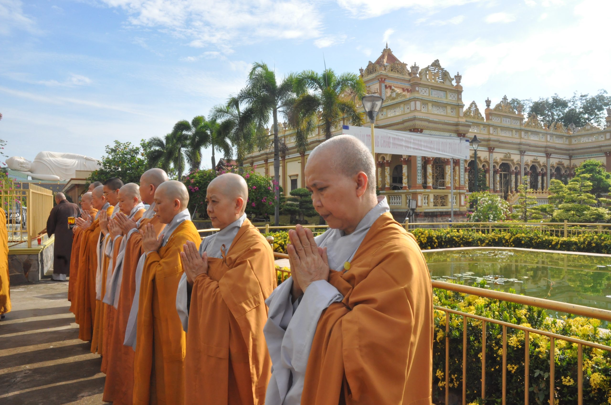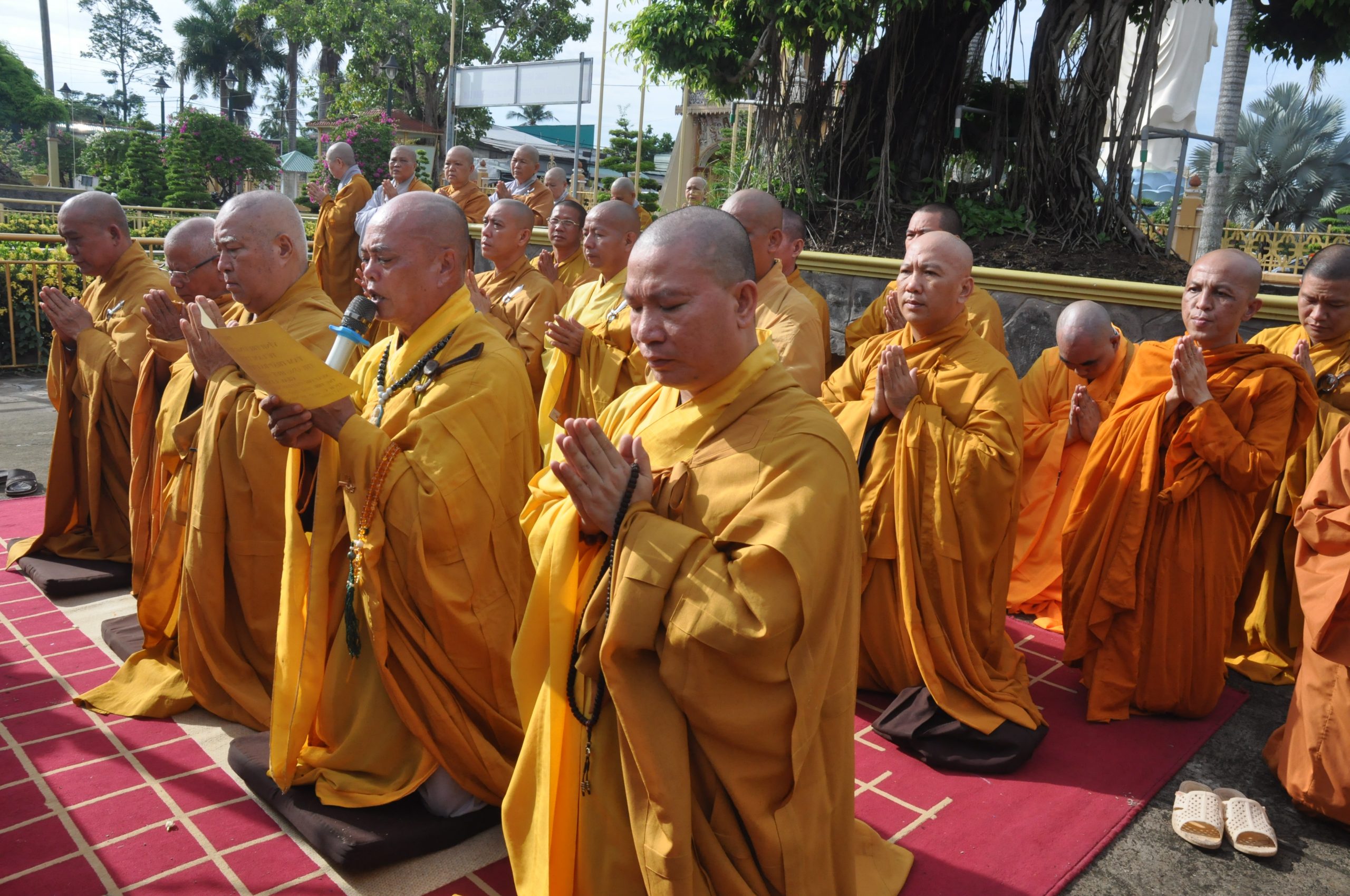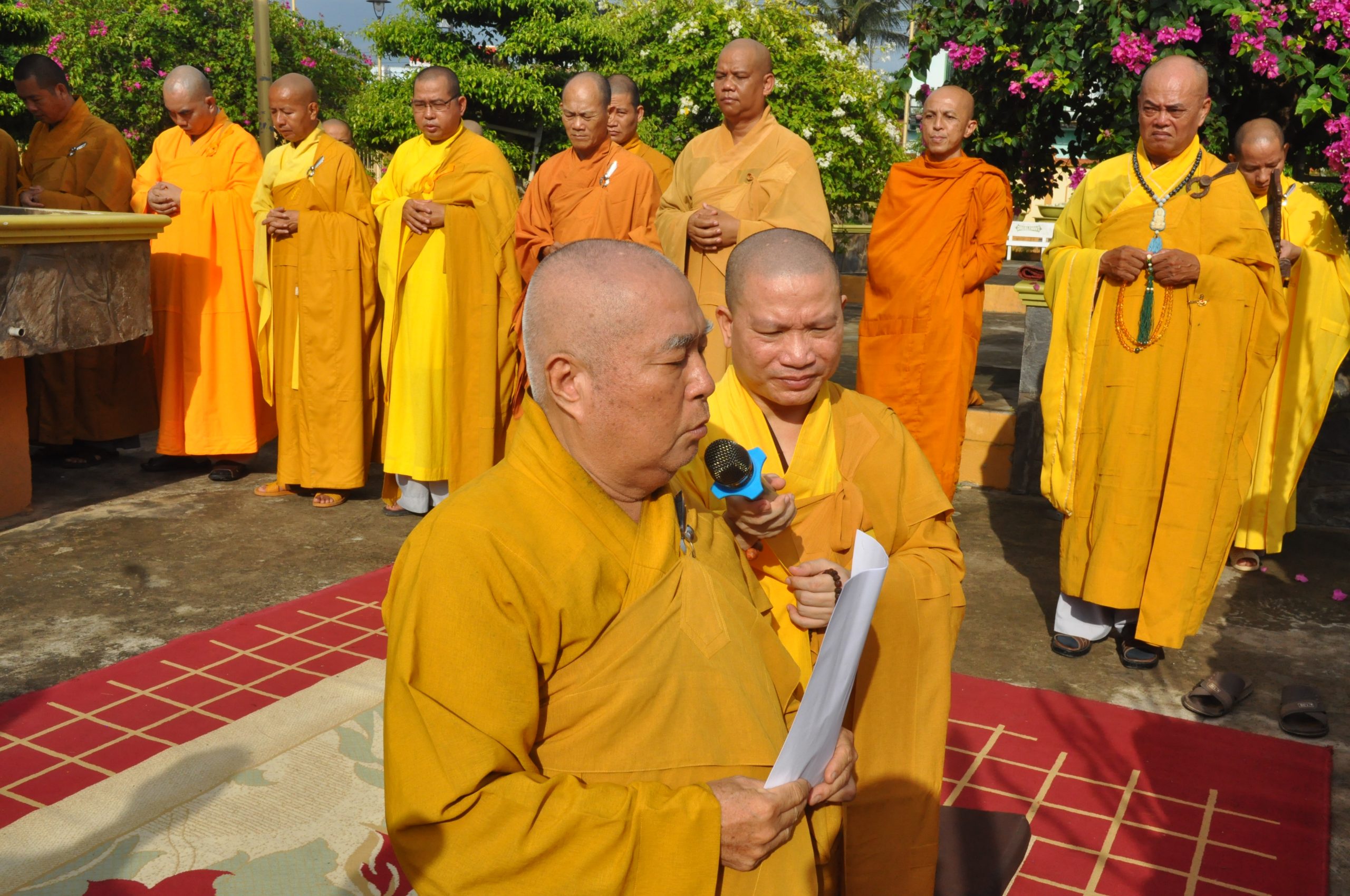 Sáng nay, trước khi bước vào phiên họp lệ, chư Tôn đức trong BTS GHPGVN tỉnh Tiền Giang trang nghiêm cử hành nghi thức An vị Tôn tượng Tổ sư. Dưới án hương trầm quyện tỏa, HT.Thích Huệ Minh đã thay mặt Ban Tổ chức cung tuyên Tiểu sử Tổ sư Huệ Đăng – vị Khai sơn chùa Vĩnh Tràng; để rồi từ đó, trải qua bao thế hệ kế thừa và không ngừng vun bồi của chư Hòa thượng tiền bối, ngôi chùa Vĩnh Tràng ngày nay mang vẽ đẹp độc đáo và trở thành trung tâm của Phật giáo tỉnh Tiền Giang, cả về tâm linh lẫn hành chánh.