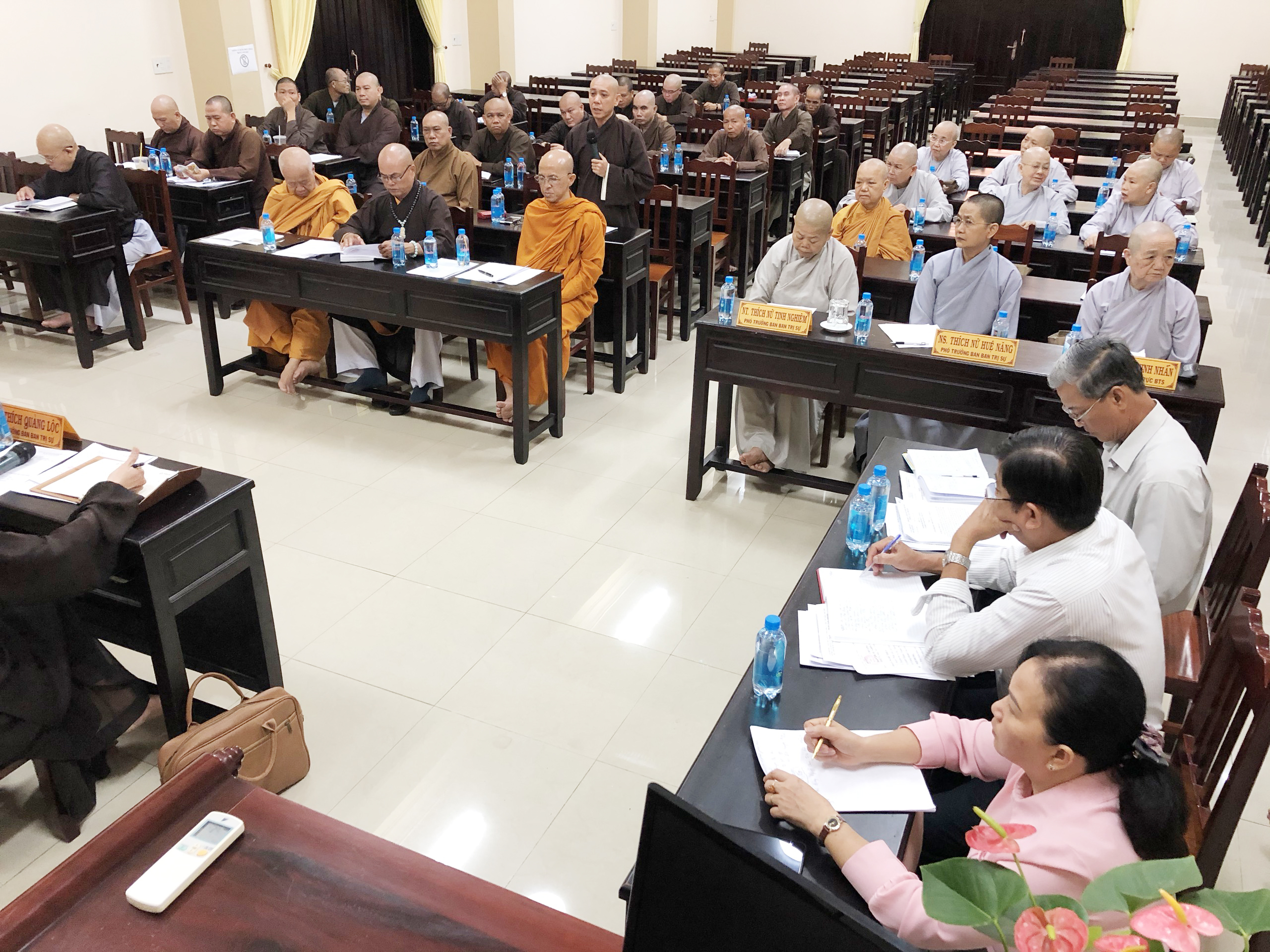 Phiên họp có sự tham dự đông đủ chư Tôn đức thành viên BTS dưới sự Chủ tọa của HT.Thích Huệ Minh - Ủy viên HĐTS, Trưởng BTS GHPGVN tỉnh Tiền Giang; HT.Thích Hoằng Đức - Ủy viên HĐTS, Phó trưởng Ban thường trực BTS GHPGVN tỉnh; HT.Thích Giác Nhân - Ủy viên HĐTS, Phó ban BTS, Trưởng ban Hoằng pháp GHPGVN tỉnh; TT.Thích Quảng Lộc – Phó BTS, Trưởng ban Từ thiện Xã hội Phật giáo tỉnh; ĐĐ.Thích Nhuận Đức - Phó BTS, Trưởng ban Hướng dẫn Phật tử tỉnh.
