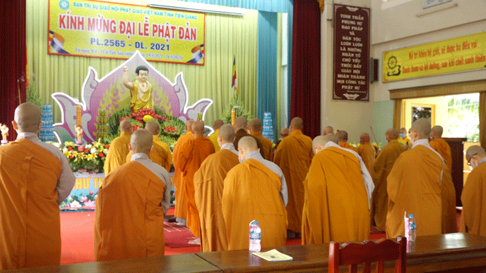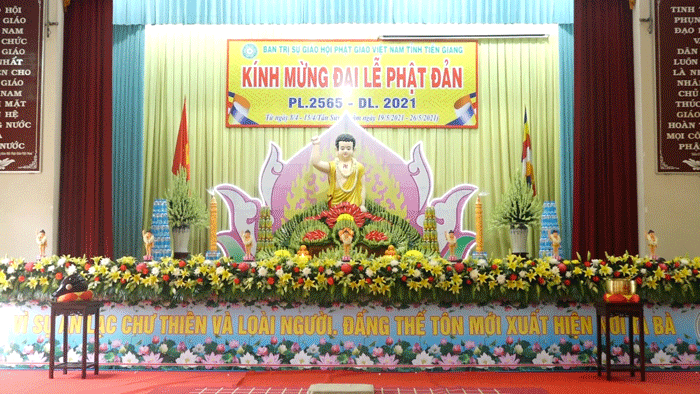 PSO - Sáng ngày 26/5/2021 (nhằm ngày 15/4 năm Tân Sửu), hòa trong không khí thiêng liêng của người con Phật đón mừng mùa Phật Đản, chư Tôn đức Ban Trị sự GHPGVN tỉnh Tiền Giang chính thức cử hành Đại lễ Phật Đản PL.2565 – DL.2021 tại Lễ đài chính - chùa Vĩnh Tràng, xã Mỹ Phong, TP.Mỹ Tho, tỉnh Tiền Giang.