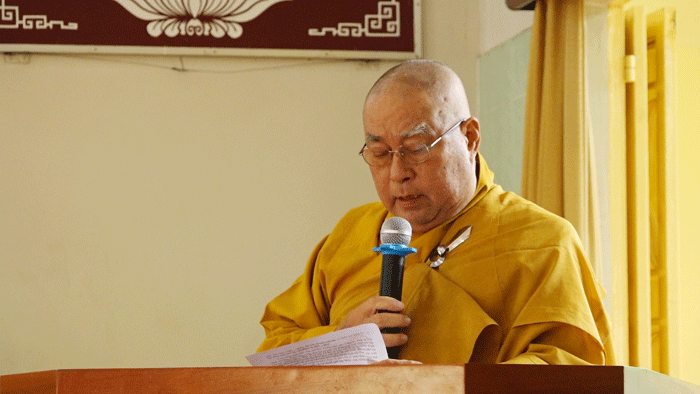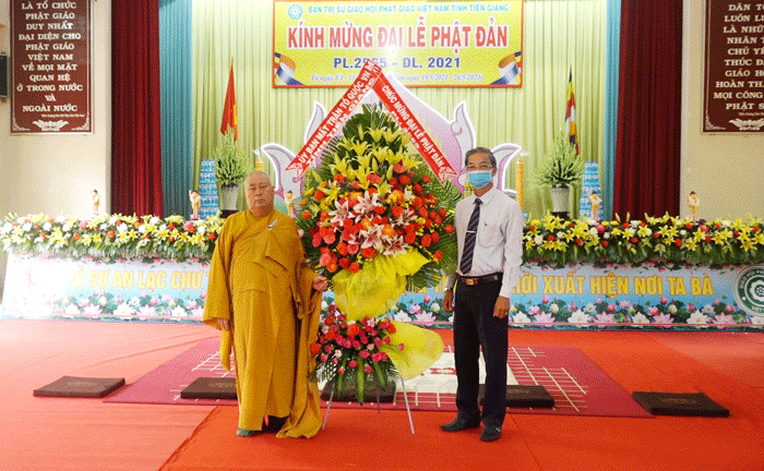 HT.Thích Huệ Minh - Ủy viên HĐTS, Trưởng BTS GHPGVN tỉnh Tiền Giang, Trưởng ban Tổ chức Đại lễ, tuyên đọc Diễn văn Đại lễ Phật ĐảnHT.Thích Huệ Minh - Ủy viên HĐTS, Trưởng BTS GHPGVN tỉnh Tiền Giang, Trưởng ban Tổ chức Đại lễ, tuyên đọc Diễn văn Đại lễ Phật Đản của Hòa thượng Chủ tịch HĐTS GHPGVN. Diễn văn có đoạn. “Đại lễ Phật đản – Vesak là lễ hội thiêng liêng của hàng triệu Tăng Ni, tín đồ Phật giáo trên thế giới. Đại lễ Phật đản – Vesak càng ý nghĩa hơn khi vào những ngày tháng 5 lịch sử này, Liên hợp quốc tổ chức Vesak nhằm phát đi thông điệp về bất bạo động và phụng sự tha nhân càng trở nên thích ứng hơn bao giờ hết khi mà nhân loại đang ở trong thời điểm gia tăng sự bất bình đẳng và thiếu độ lượng hiện nay. Ngay khi cả nhân loại đang chịu thảm họa của đại dịch Covid-19, thế giới thực hiện giãn cách xã hội, Liên hợp quốc đã tổ chức kính mừng Đại lễ Vesak bằng hình thức trực tuyến kết nối nhiều quốc gia trong tinh thần một mùa Vesak đối với tất cả chúng ta, dù là Phật tử hay không là Phật tử, cùng nhau suy ngẫm về cuộc đời Đức Phật nhằm tiếp nhận nguồn cảm hứng từ những lời dạy minh triết của Ngài để thế giới luôn luôn bình đẳng và phát triển bền vững.”