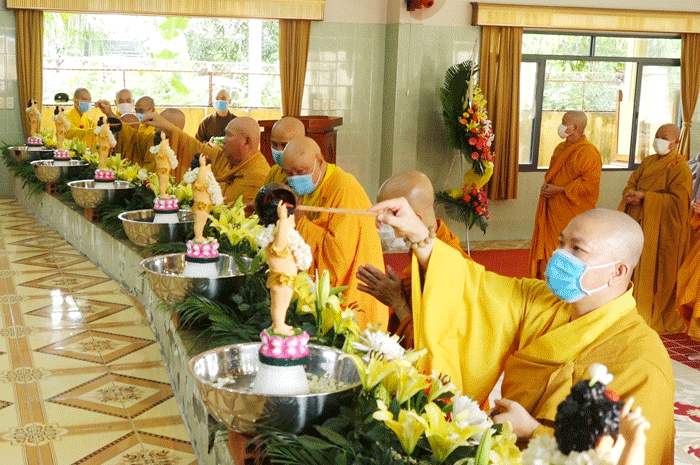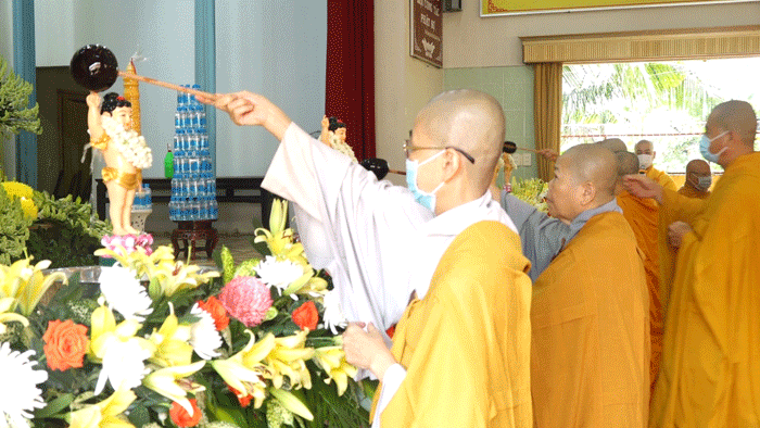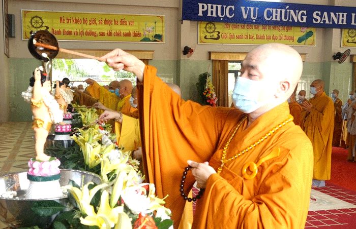 Sau lời diễn văn của Hòa thượng Trưởng BTS là nghi lễ Phật Đản theo truyền thống: Chư tôn đức Giáo phẩm niệm hương, đảnh lễ Tam Bảo, tụng kinh Khánh Đản, kinh Chuyển Pháp Luân. Với tâm thành kính, chư Tôn đức đã tung những nắm hoa thơm lên Kim thân Tôn tượng Đức Phật Đản sinh, thực hiện nghi thức Tắm Phật.