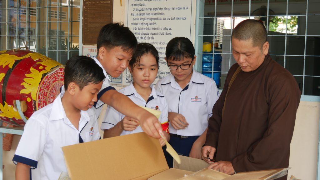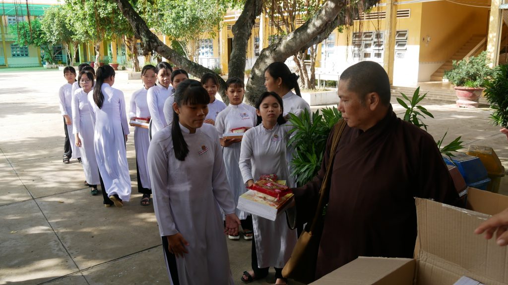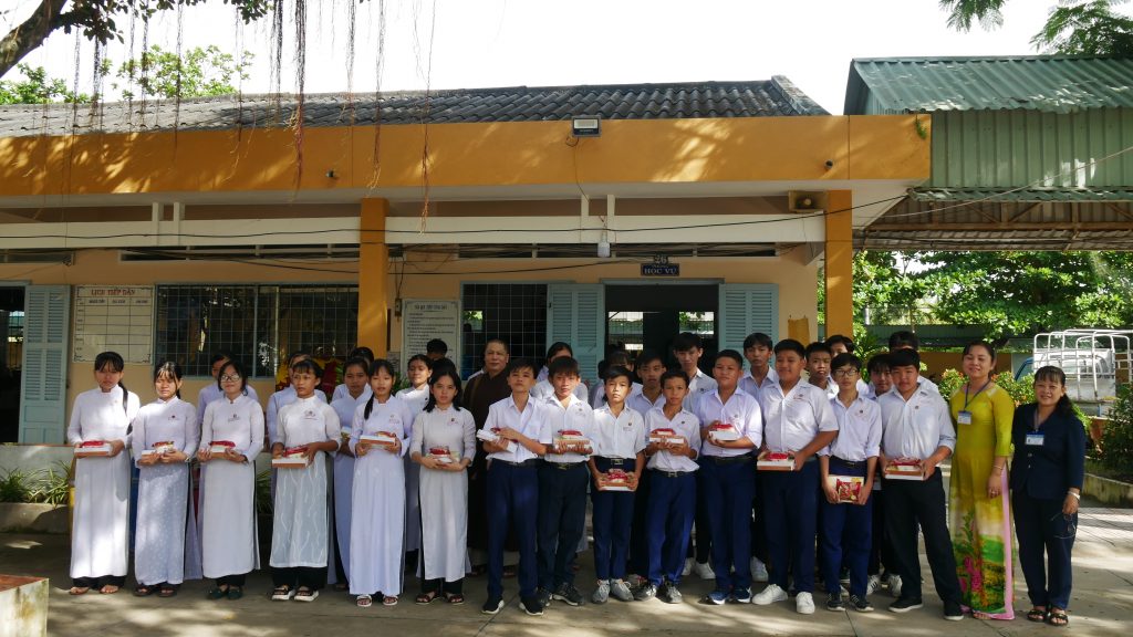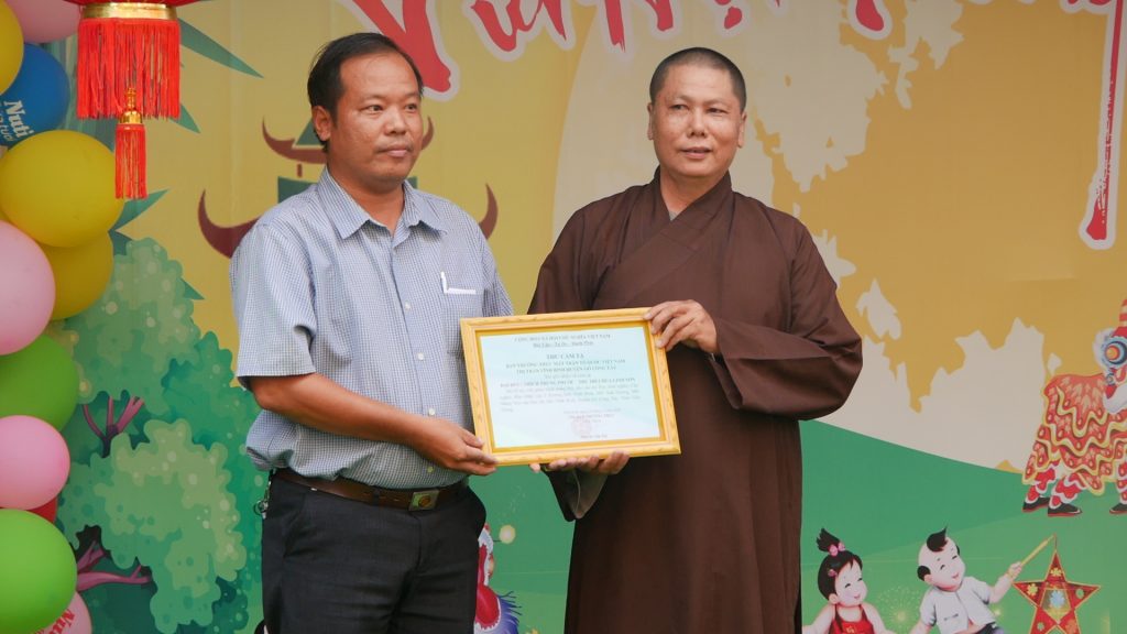 Ngày 29/09/2020 (nhằm ngày 13/8 năm Canh Tý) Đại đức Thích Trung Phước – Chánh Thư ký BTS GHPGVN huyện Gò Công Tây cùng đạo tràng chùa Linh Sơn (khu phố 1, TT.Vĩnh Bình, huyện Gò Công Tây, tỉnh Tiền Giang) đã đến các Trường Tiểu học, Trung học Cơ sở trong TT.Vĩnh Bình và Trường Mầm non xã Thạnh Nhựt để trao tặng 540 phần quà trung thu cho các em học sinh gặp hoàn cảnh khó khăn cùng được vui Tết đoàn viên với chúng bạn. Quà gồm có tập, viết, bánh trung thu và sữa.