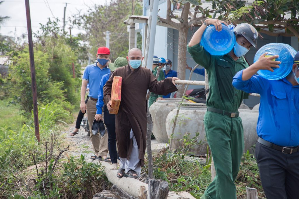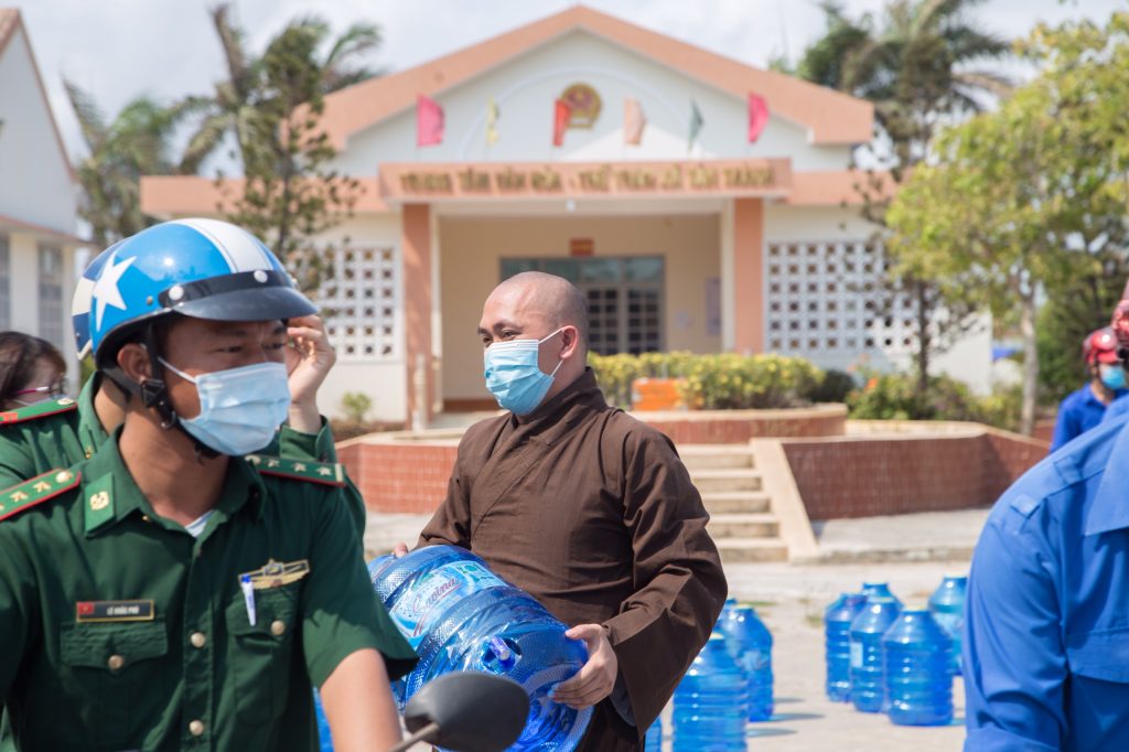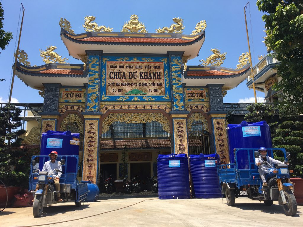 Được sự chỉ đạo của TT.Thích Như Trang nên ĐĐ.Thích Chiếu Pháp – Tăng chúng chùa Dư Khánh đã kêu gọi các nhà tài trợ xe bồn chứa nước sinh hoạt, ủng hộ nước lọc tinh khiết và lên kế hoạch phân phối đến người dân với Thông điệp “Hãy gửi yêu thương đến Gò Công”.