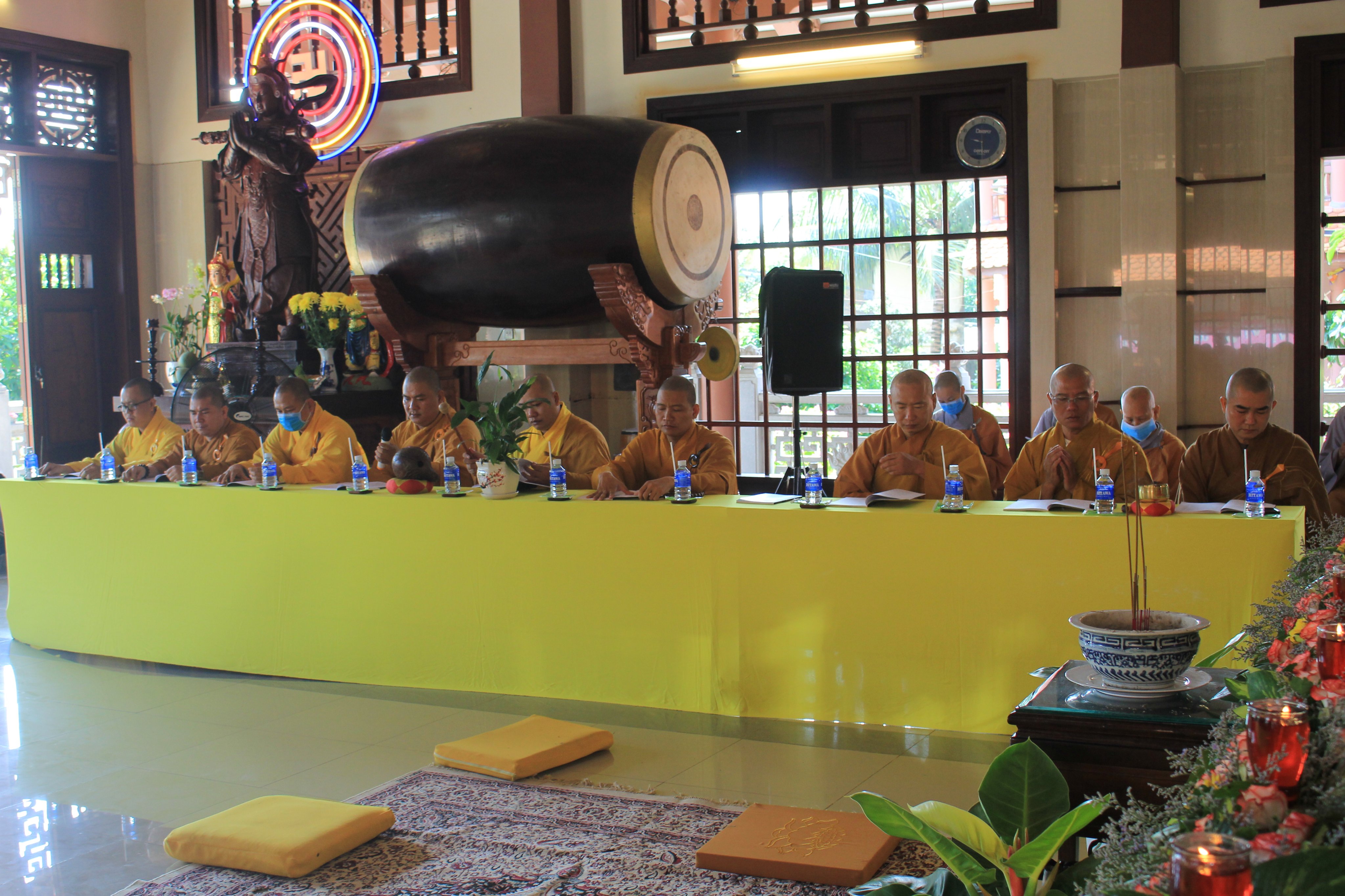 Đãi lao chư tôn Hòa thượng chứng minh, HT.Thích Trí Thông ban đạo từ, tán thán tâm niệm chí thành của Ni sư Trụ trì củng như toàn thể nam nữ Phật tử đã tùy hỷ công đức cùng với Ni sư tổ chức Đàn tràng Dược Sư Thất Châu thật trang nghiêm để cầu cho Đại dịch Covid sớm tiêu trừ, cho thế giới trở lại bình yên, công việc thuận lợi, gia quyến đều được bình an hạnh phúc.