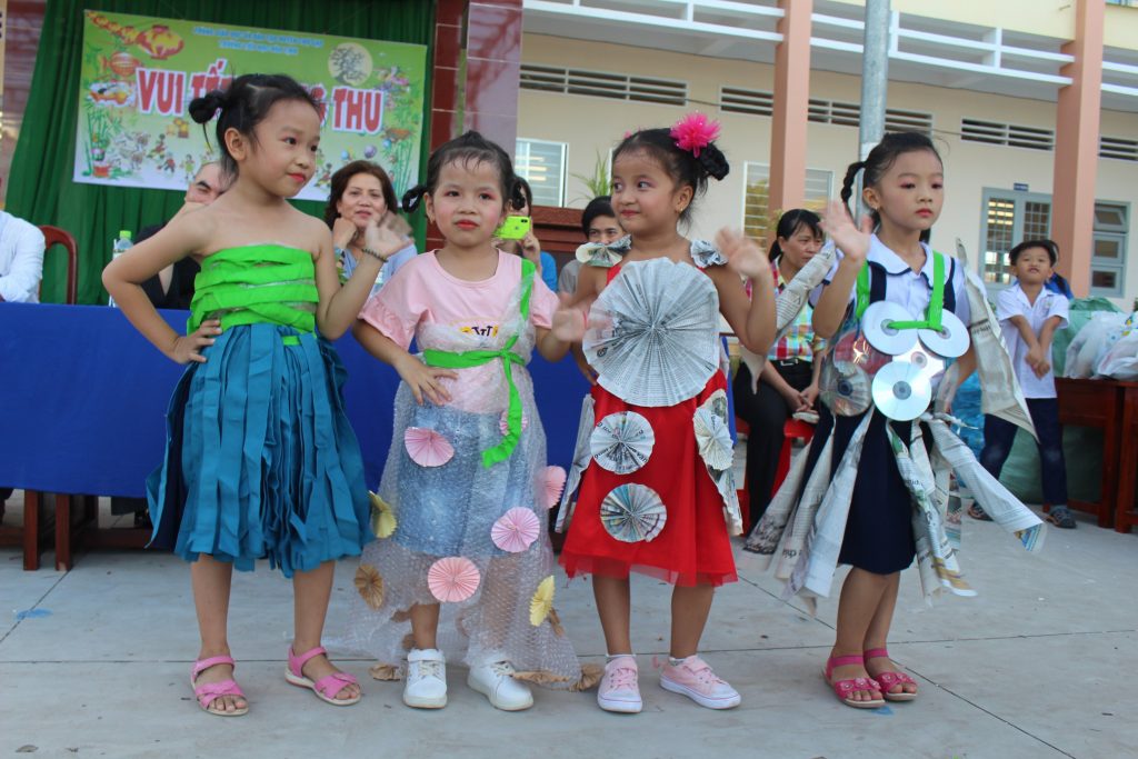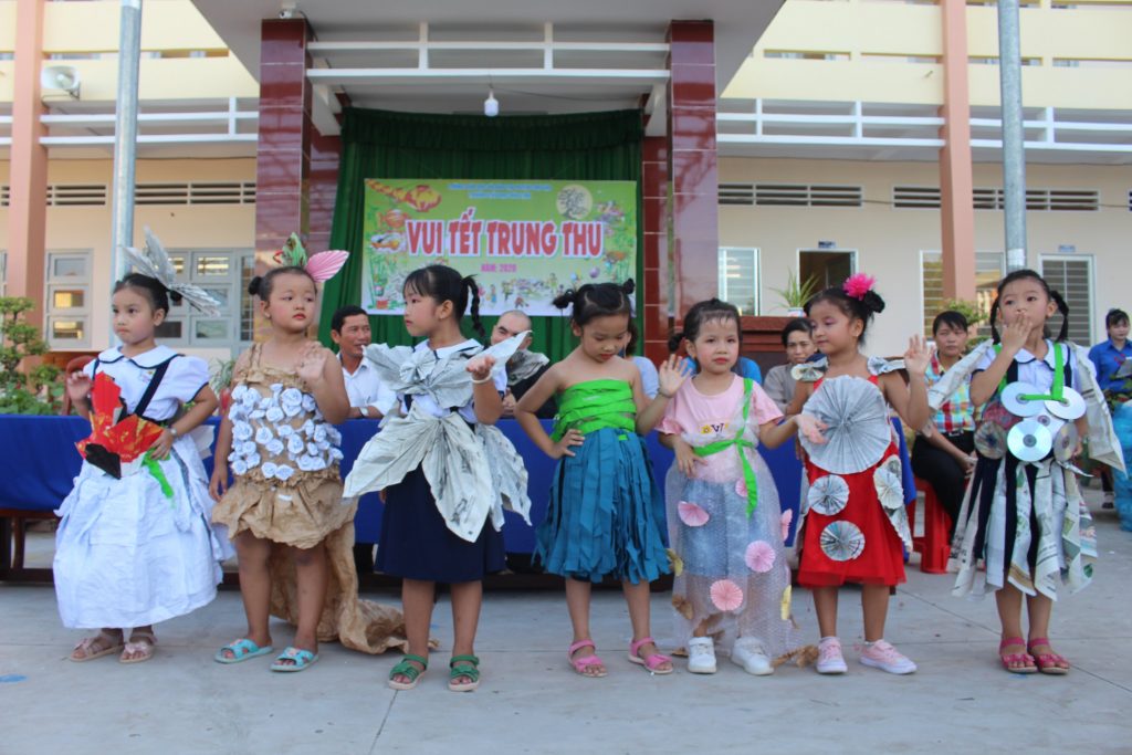 Bắt đầu khai “Đêm hội Trăng rằm” là các tiết mục văn nghệ của các em học sinh Trường Tiểu học Hòa Tịnh.