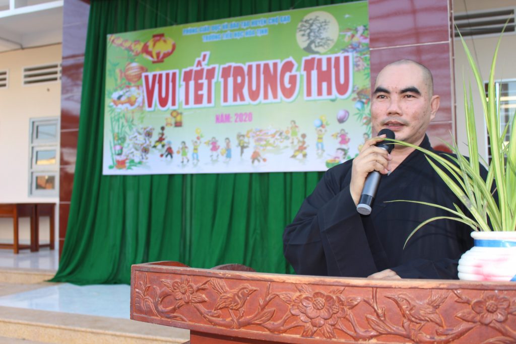 Đại đức Thích Thiện Ngộ - Ủy viên BTS GHPGVN tỉnh Tiền Giang, Phó ban Thường trực BTS Phật giáo huyện Chợ Gạo, Trụ trì chùa Huệ Quang phát biểuĐể tổ chức được một đêm trung thu thật vui và ý nghĩa là nhờ sự quan tâm ủng hộ và chỉ đạo của các cấp, các ban ngành đoàn thể xã Hòa Tịnh, cùng Ban Giám hiệu nhà trường. Đặc biệt có sự giúp đỡ và tài trợ từ ĐĐ.Thích Thiện Ngộ trụ trì chùa Huệ Quang cùng gia đình Phật tử Ngọc Phương ở thành phố Hồ Chí Minh. Thay mặt cho nhà tài trợ, ĐĐ.Thích Thiện Ngộ đã có đôi lời phát biểu chào mừng và có lời chúc tốt lành đến các thầy cô giáo trong Hội đồng Sư phạm nhà trường cùng các bậc phụ huynh và các em học sinh hưởng trọn một đêm Trung thu tràn đầy ý nghĩa và thật nhiều niềm vui bên người thân.