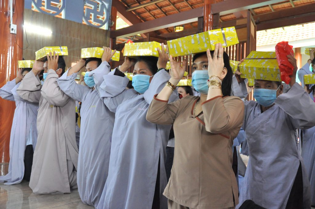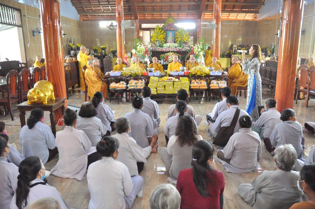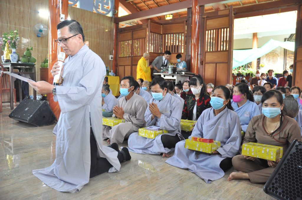 Tiếp nối chương trình là lời Hoài niệm Vu lan của hàng Phật tử. Đại diện đạo tràng nêu lên công lao dưỡng dục của Cha và Mẹ. Quý Phật tử tham dự một lần nữa càng hiểu sâu hơn ân nghĩa sanh thành thiêng liêng và cao vời của mẹ cha. Nhân mùa Vu lan, để bày tỏ lòng tôn quý đối với hàng Tăng bảo, quý Phật tử đã cài những đóa hoa vàng thể hiện sự thanh cao lên chư Tôn đức và cùng cài cho nhau những cánh hoa hồng đượm đầy hương hiếu hạnh. Sau đó nhiễu y và dâng tác bạch cúng dường lên chư Tôn đức tham dự.