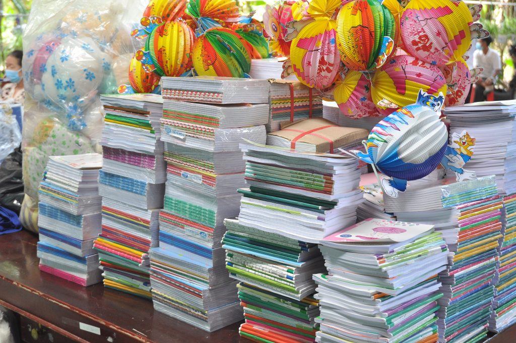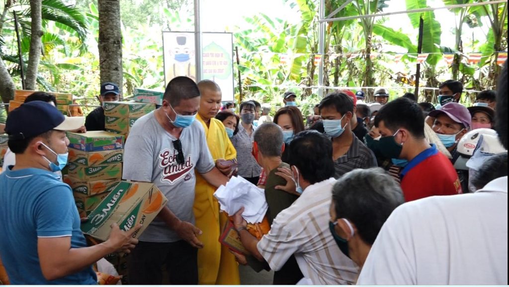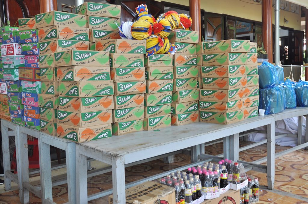 Dịp này được sự phát tâm tài trợ của quý Phật tử, các nhà hảo tâm tại TP.HCM nên Đại đức Thích Huệ Phương còn tổ chức trao tặng 200 phần quà gồm mì, gạo, nước tương đến bà con nghèo ở địa phương và 200 phần bánh trung thu lồng đèn, tập vở cho các em học sinh hiếu học. Tổng trị giá các phần quà hơn 60 triệu đồng.