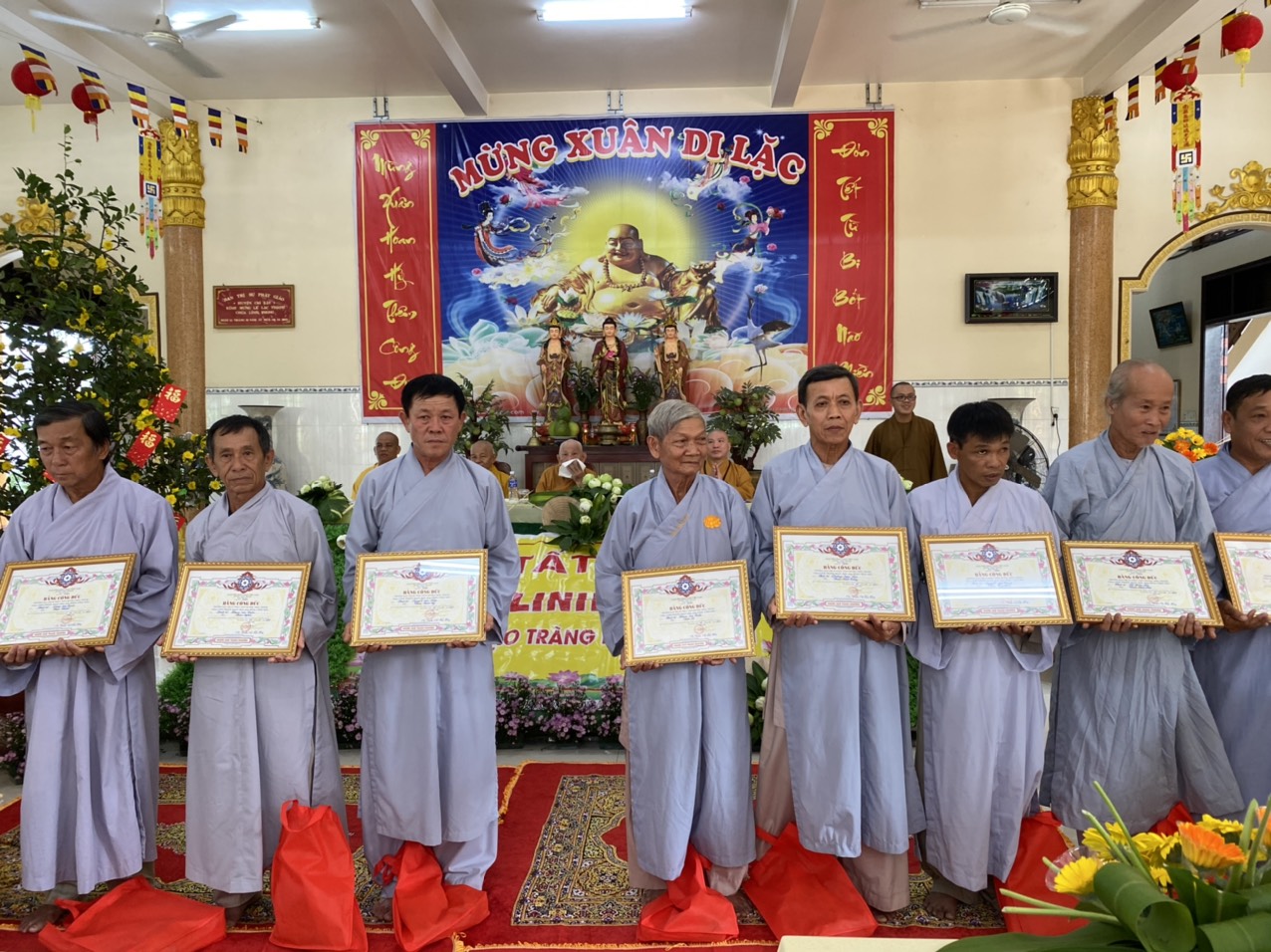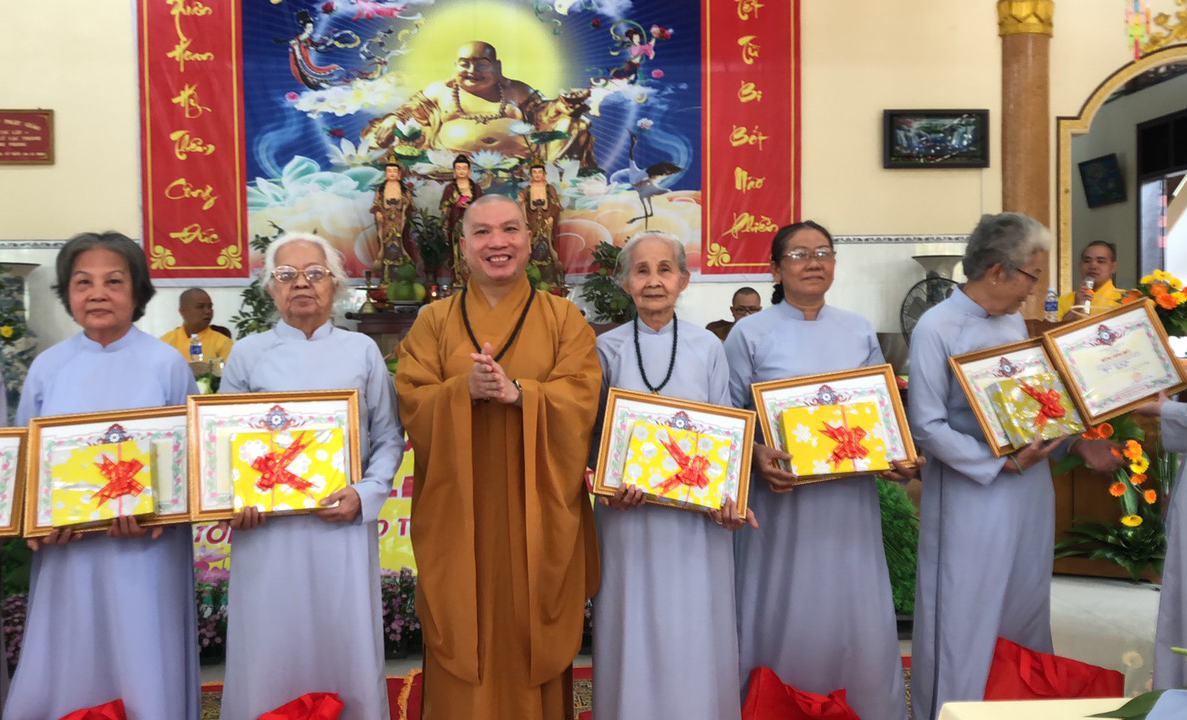 Để khích lệ tinh thần tu học của Phật tử, BTS GHPGVN huyện Châu Thành có Bằng Tuyên dương Công đức, Ni sư Trụ trì cũng có những phần quà gửi tặng đến quý Phật tử có nhiều tinh tấn trong khóa tu và tích cực đóng góp cho công tác từ thiện xã hội.