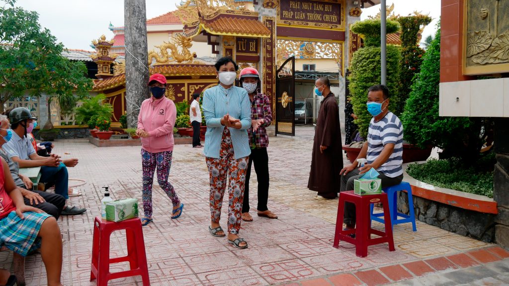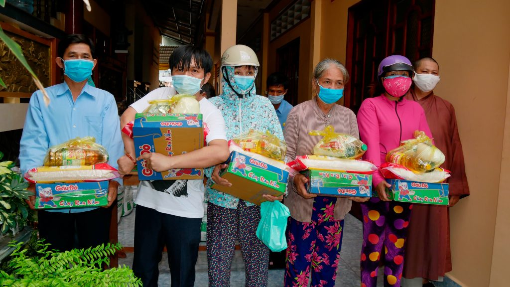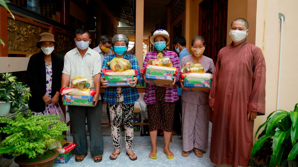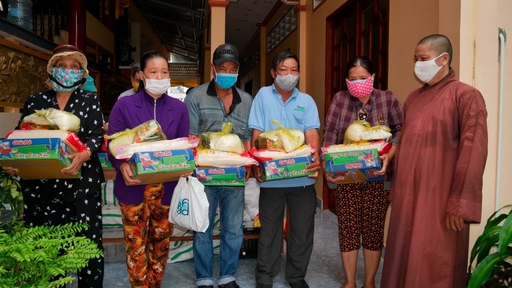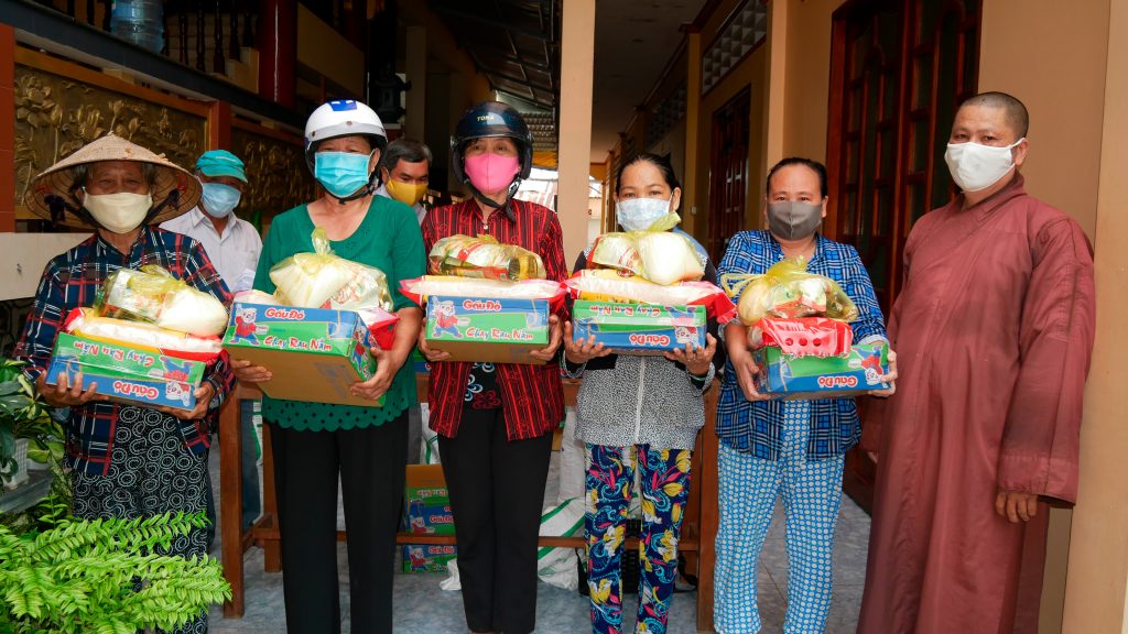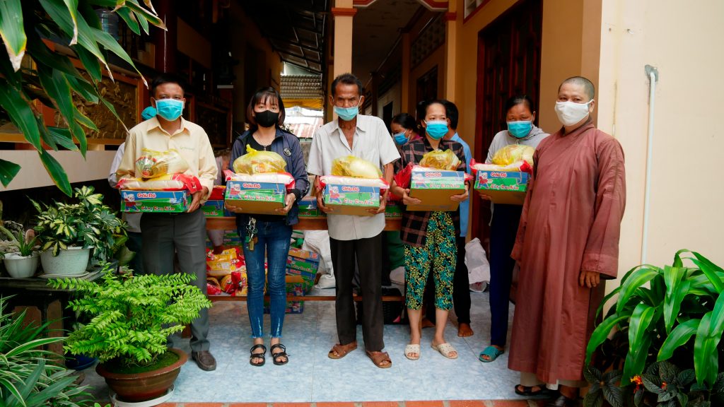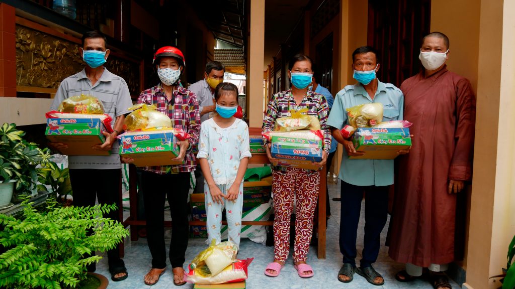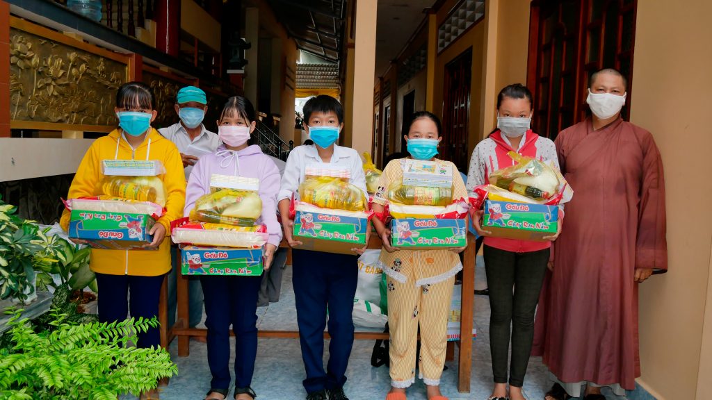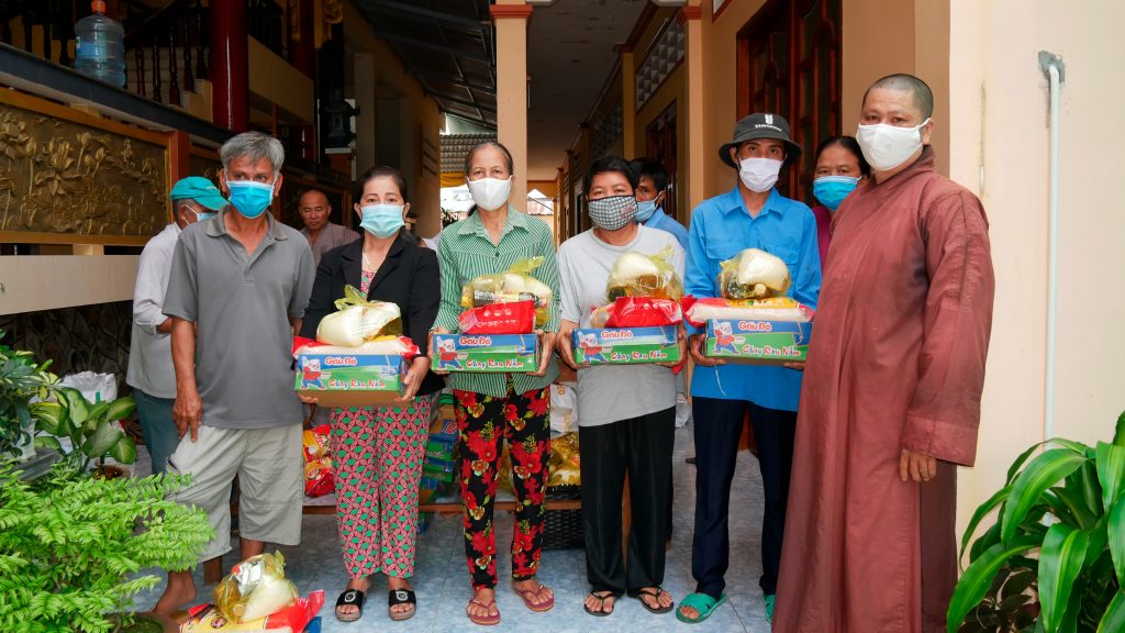 Trước khi tặng quà, Đại đức Thích Trung Phước đã phát khẩu trang và nước rửa tay cho bà con, nhắc nhở mọi người ngồi giãn cách. Đại đức cũng căn dặn mọi người hạn chế ra đường, không đến nơi đông người đề phòng lây nhiễm bệnh, tự bảo vệ mình tránh lây lan trong cộng đồng. Chúc cho các em học sinh và bà con sớm vượt qua khó khăn hiện tại, có nhiều sức khỏe và cố gắng vươn lên trong cuộc sống, vững tin để thực hiện phòng chống dịch bệnh Covid-19 một cách hiệu quả. Phần quà tuy nhỏ nhưng đã gửi gấm bao niềm tin và tấm lòng của người học Phật đến với những mãnh đời bất hạnh.