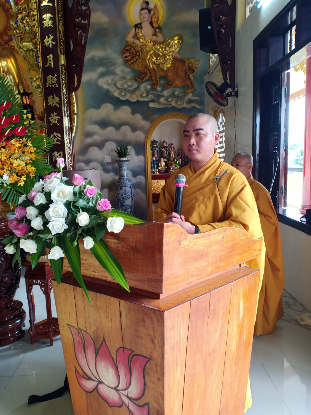Tại buổi lễ, ĐĐ.Thích Thiên Bình điều phối chương trình đã khơi gợi lên trong tâm mỗi người con Phật ý niệm về ngày lễ Vu lan Báo hiếu. Đó là dịp để mỗi người con Phật một lòng nhớ tưởng đến công ơn sanh thành dưỡng dục của mẹ và cha. Xuất phát từ niềm hiếu đạo thiêng liêng, nền đạo đức phương Đông, tinh thần hiếu thảo trong mùa Vu lan đã trở thành hoa đạo lý để những người con sống hoàn thiện đạo đức hơn nữa. Vu lan báo hiếu như nhắc nhở chúng ta, phải luôn nhớ về nguồn cội, nơi đó có ơn cha nghĩa mẹ, công thầy thật cao vời, bởi người con hiếu hạnh nào mà không khỏi bùi ngùi xúc động, khi nhớ về hai đấng sanh thành, người đã sẵn sàng san sẻ, sớt chia một phần máu thịt của mình, để tạo nên hình hài vóc dáng cho ta, suốt một cuộc đời lặng thầm chịu nhiều gian khổ, gồng công đôi lưng để cho ta đứng thẳng với người. Mùa Vu lan là dịp để mọi người chúng ta đền đáp công đức sinh thành dưỡng dục của người con đối với cha mẹ hiện tiền và cha mẹ nhiều đời nhiều kiếp.
