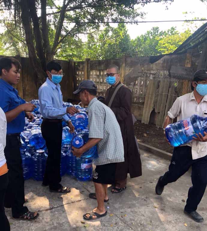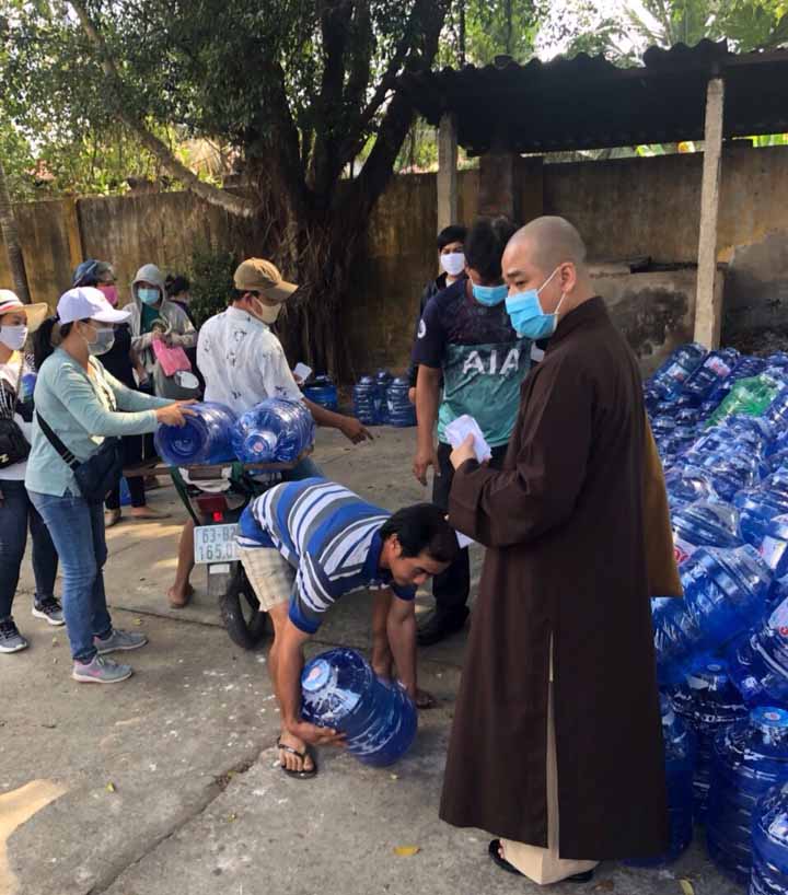 Nhằm chia sẻ phần nào những khó khăn với bà con xã cù lao Tân Phong, huyện Cai Lậy, tỉnh Tiền Giang đang gồng mình chống chọi với hạn mặn, nên chư Tăng chùa Phật Ân đã vận động Tu viện Linh Thứu hỗ trợ 450 bình nước lọc và quý Phật tử cùng các nhà hảo tâm tại TP.HCM phát tâm 810 bình nước để trao tặng cho 630 hộ dân (mỗi hộ được 02 bình) ở xã cù lao Tân Phong, huyện Cai Lậy, tỉnh Tiền Giang. Tổng kinh phí cho công tác này là 50 triệu đồng.