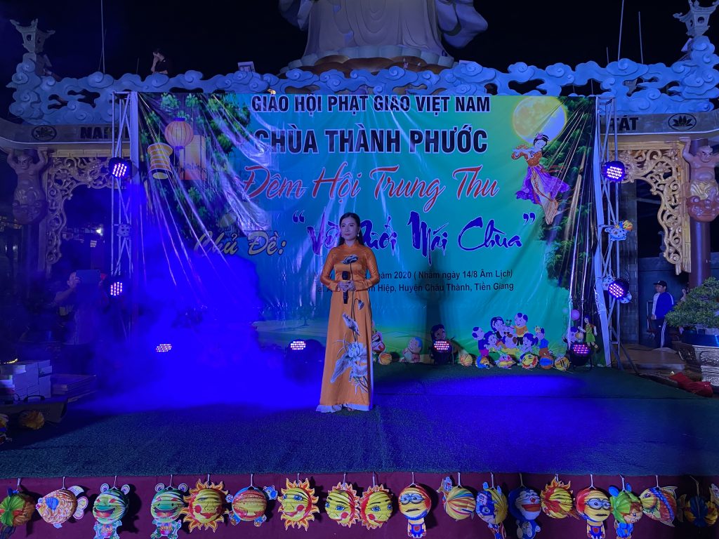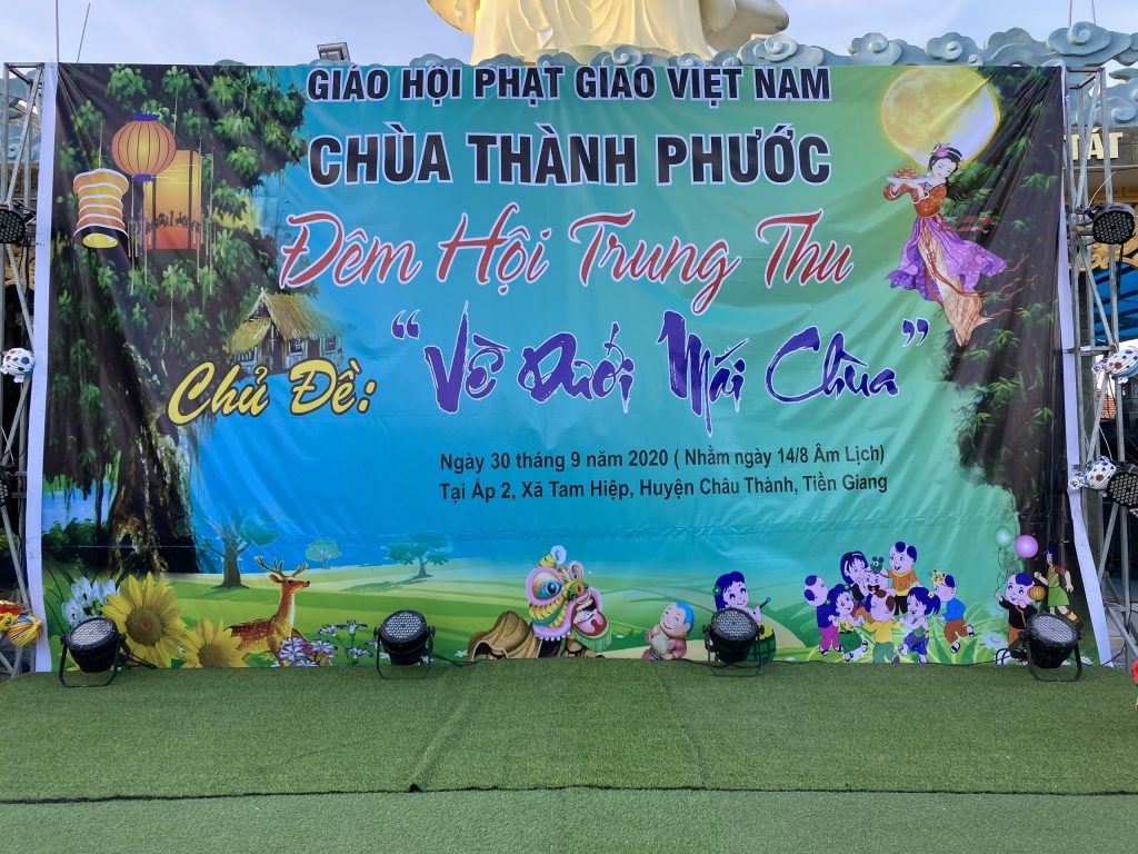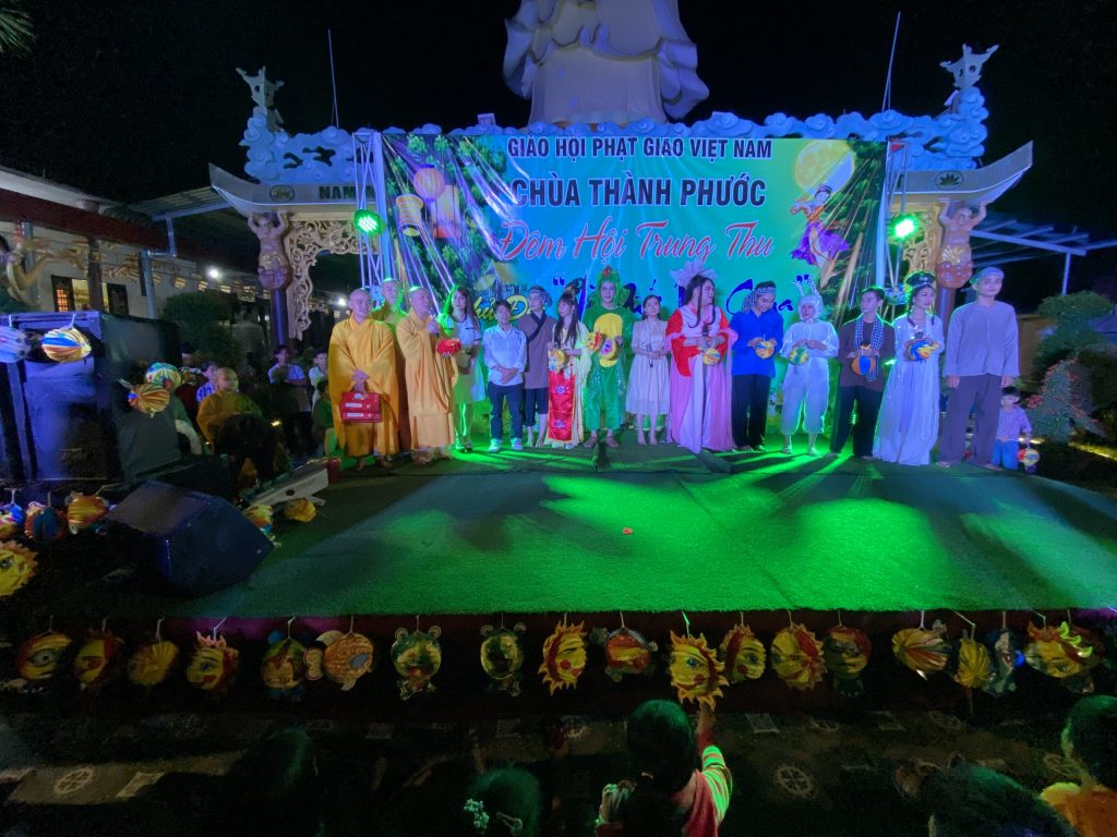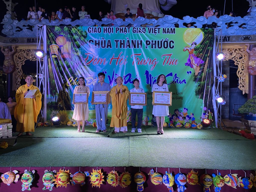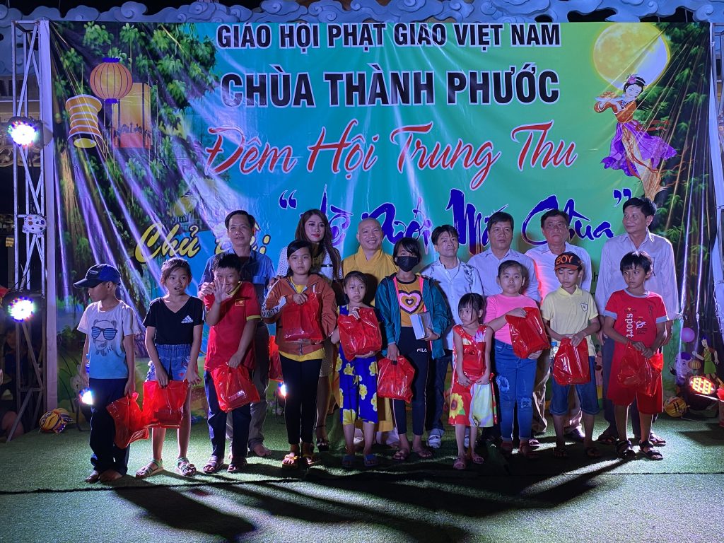 PSO - Với mong muốn tạo sân chơi lành mạnh cho các em thiếu nhi nhân tiết Trung thu; Chiều tối ngày 30/9/2020 tại chùa Thành Phước, xã Tam Hiệp, huyện Châu Thành, tỉnh Tiền Giang; Đại đức Trụ trì Thích Nhuận Đức – Phó trưởng BTS, Trưởng ban Hướng dẫn Phật tử GHPGVN tỉnh Tiền Giang kết hợp chính quyền địa phương, tổ chức Đêm hội Trăng rằm với chủ đề “Về Dưới Mái Chùa” - trao 20 phần học bổng và quà Trung thu cho hơn 500 em thiếu nhi tham gia vui chơi.