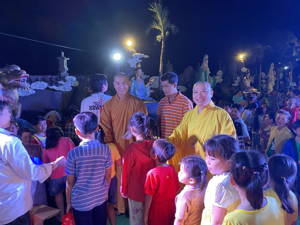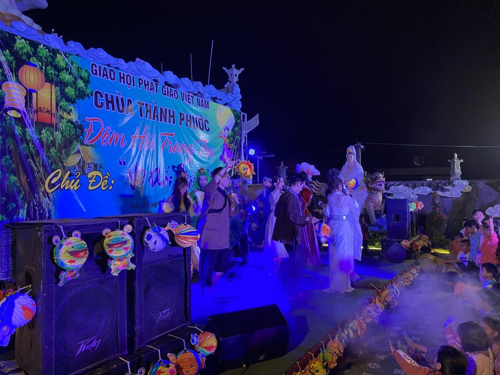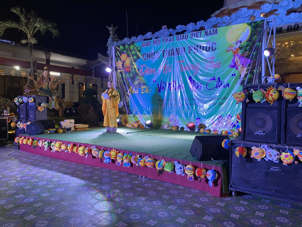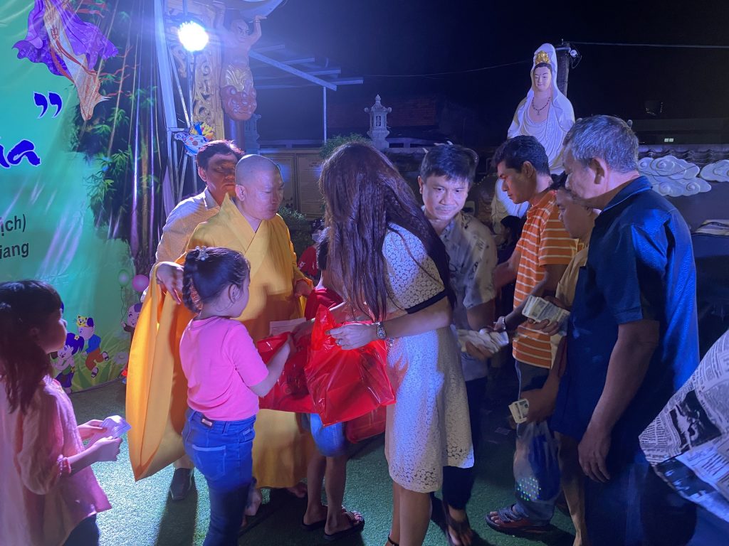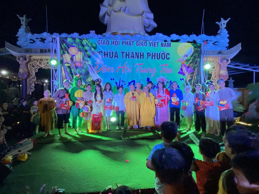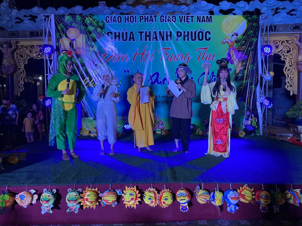 PSO - Với mong muốn tạo sân chơi lành mạnh cho các em thiếu nhi nhân tiết Trung thu; Chiều tối ngày 30/9/2020 tại chùa Thành Phước, xã Tam Hiệp, huyện Châu Thành, tỉnh Tiền Giang; Đại đức Trụ trì Thích Nhuận Đức – Phó trưởng BTS, Trưởng ban Hướng dẫn Phật tử GHPGVN tỉnh Tiền Giang kết hợp chính quyền địa phương, tổ chức Đêm hội Trăng rằm với chủ đề “Về Dưới Mái Chùa” - trao 20 phần học bổng và quà Trung thu cho hơn 500 em thiếu nhi tham gia vui chơi.