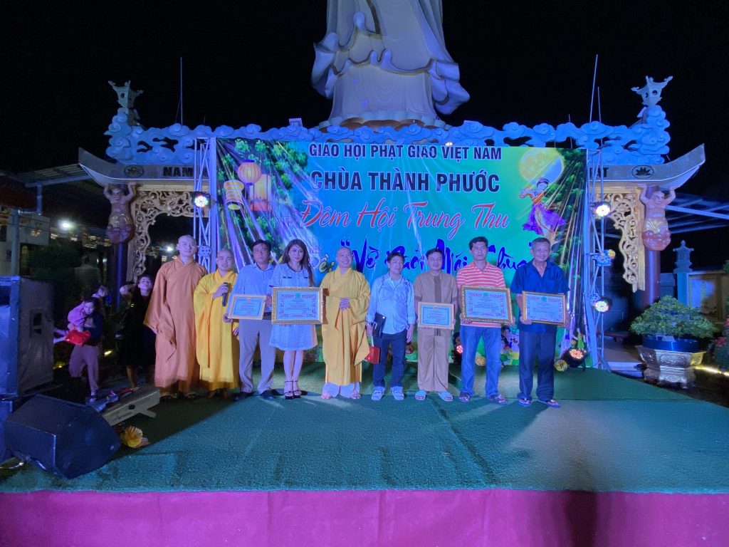 Đại đức Trụ trì chùa Thành Phước cũng có Bằng Tuyên dương Công đức gửi tặng đến các nhà tài trợ đã đồng hành với chùa Thành Phước để làm cho đêm hội hôm nay thành công viên mãn. Được biết tổng kinh phí các phần học bổng và quà gần 100 triệu đồng.