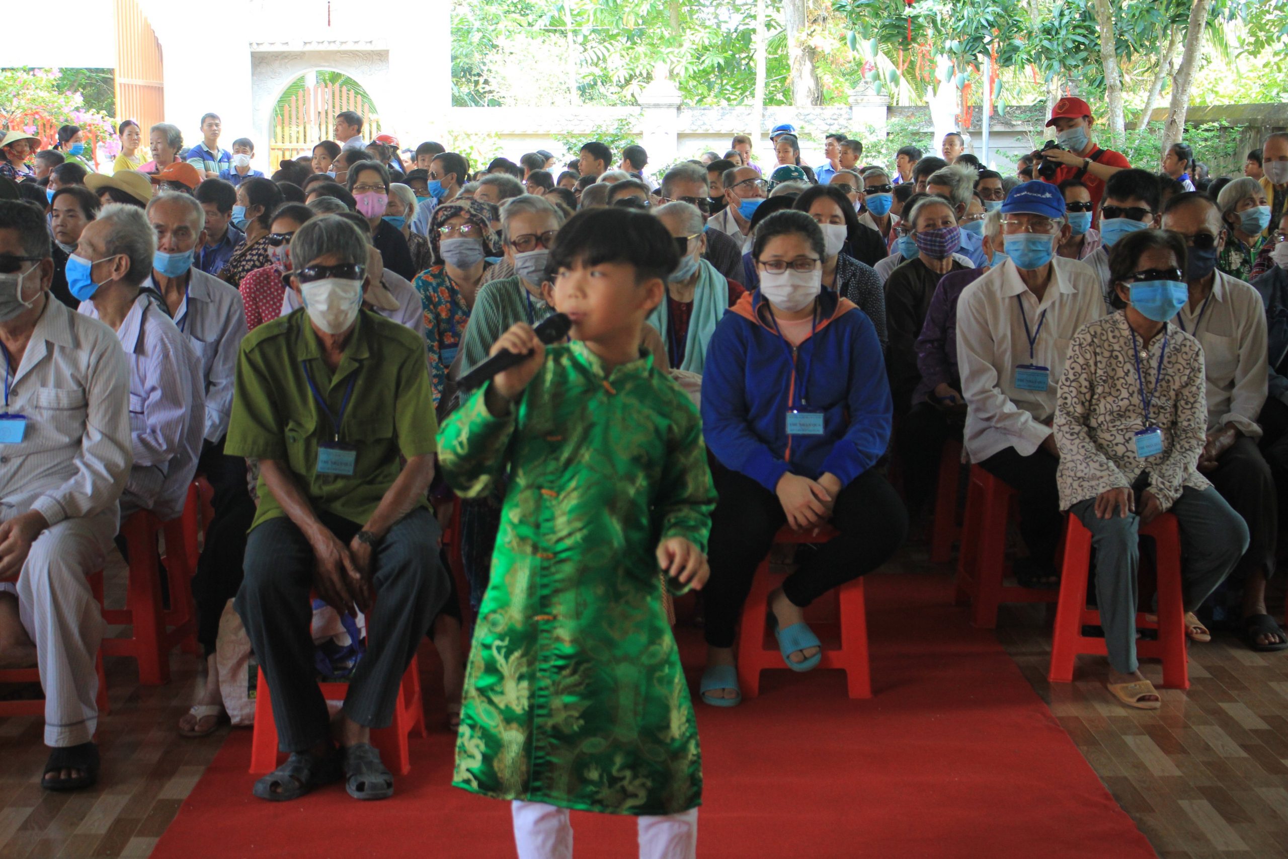 Đẻ tỏ lòng tri ân Thầy trụ trì và các nhà tài trợ, bé Tấn Tài đã đại diện cho các em thiếu nhi hát tặng BTC bài hát “Miền Tây Quê Tôi”, và hứa sẽ học thật giỏi để không phụ lòng các vị đã hỗ trợ cho các em từng cây bút, quyển tập để đến trường tiếp tục việc học. Đại diện đoàn thiện nguyện, các tình nguyện viên cũng đã góp vui chương trình qua những lời ca tiếng hát dành tặng cho bà con nơi đây.