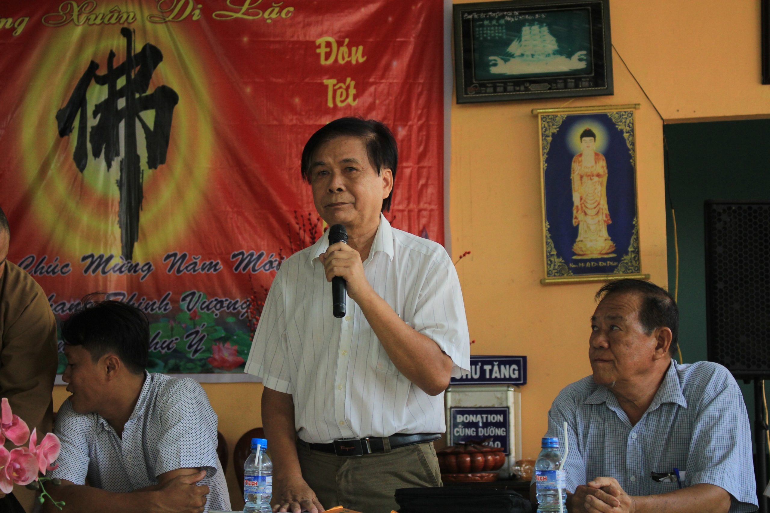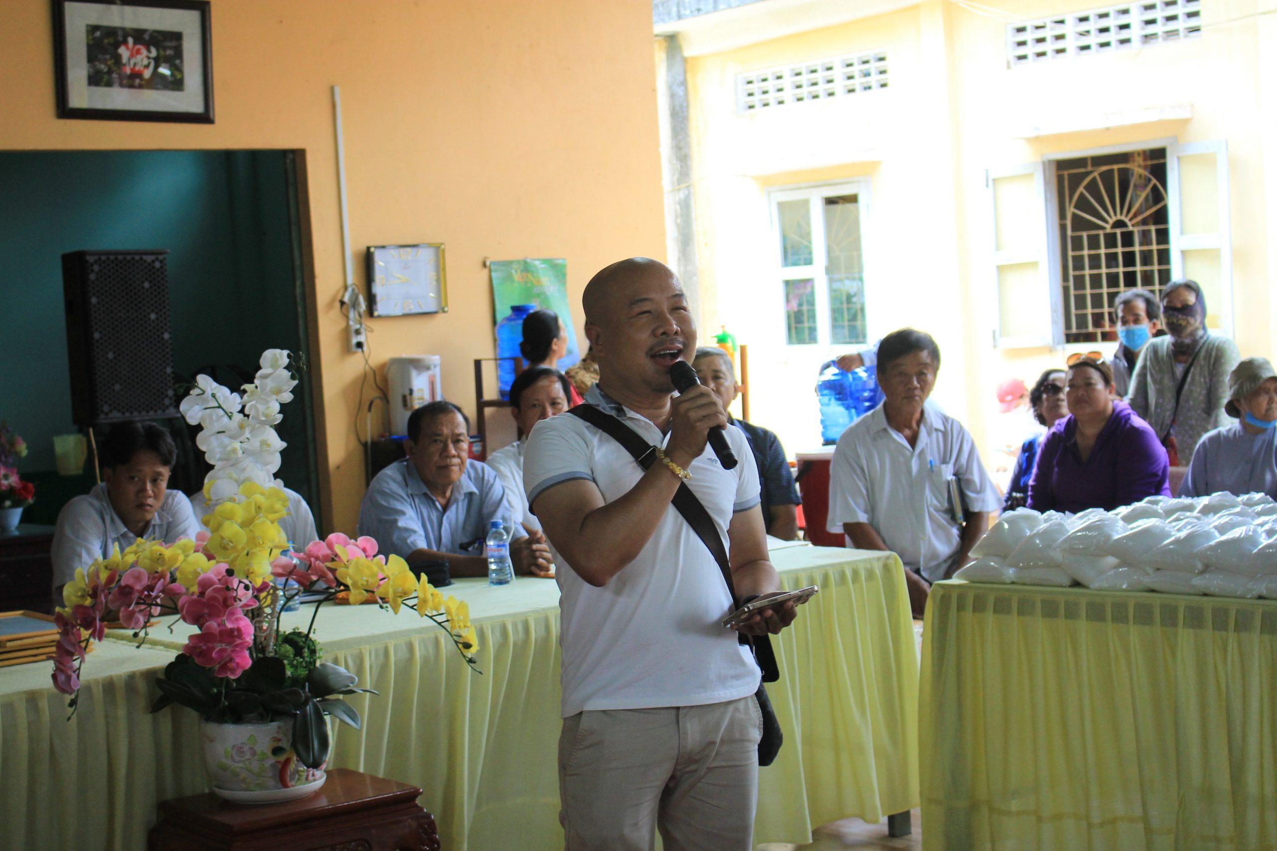 Thay mặt cho chính quyền sở tại, ông Đinh Văn Nhớ phát biểu: Ông chia sẻ, hiện tại nơi đây chỉ là một số gia đình bị khiếm thị, cũng như bị ảnh hưởng chất độc màu da cam không quá nặng nên có thể đến nhận quà được, còn rất nhiều gia đình bị nặng hơn nên không thể đến tận chùa để nhận quà. Ông thay mặt Hội Chất độc Da cam huyện Cái Bè cảm ơn sâu sắc đến cô Diệu Minh cùng đoàn từ thiện đã về xã Đông Hòa Hiệp để trợ duyên các nhu yếu phẩm với bà con khó khăn nơi đây. Ông gửi lời chúc sức khỏe đến chư Tôn đức Tăng cùng các thành viên trong đoàn.