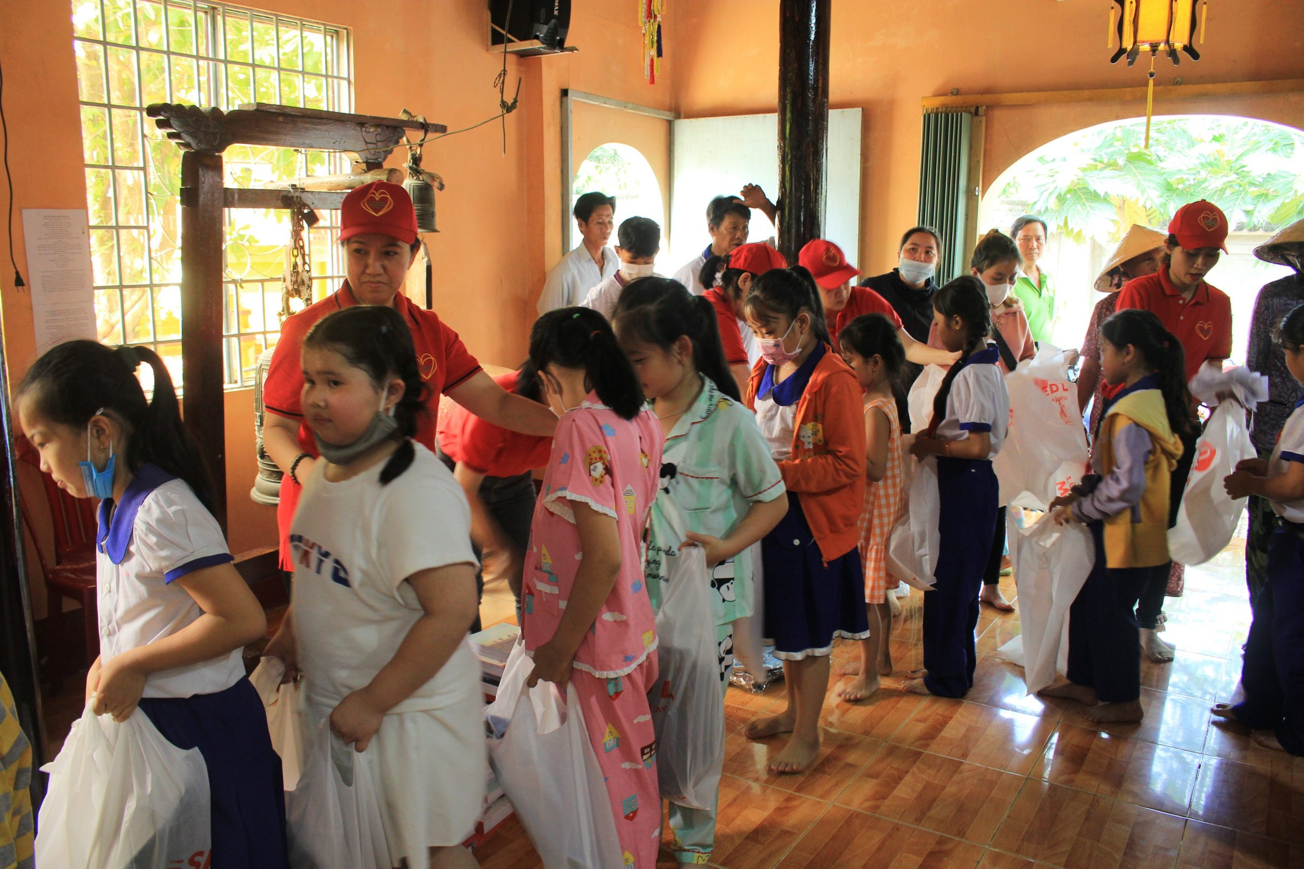 250 phần quà được phân bổ cho: 100 người khiếm thị, 50 người khuyết tật, (mỗi phần trị giá 600 ngàn đồng, gồm có: áo mưa, mì, gạo, dầu ăn, nước tương, đường và tiền mặt); 100 phần quà cho các em học sinh nghèo hiếu học (mỗi phần gồm có sữa, balo, tập, bánh, … trị giá 200 ngàn đông). Tổng giá trị chung là 110 triệu đồng.
