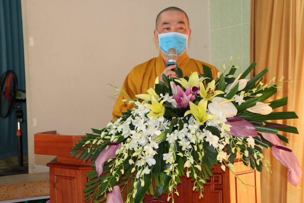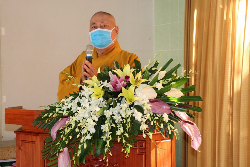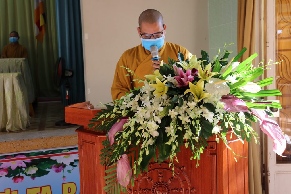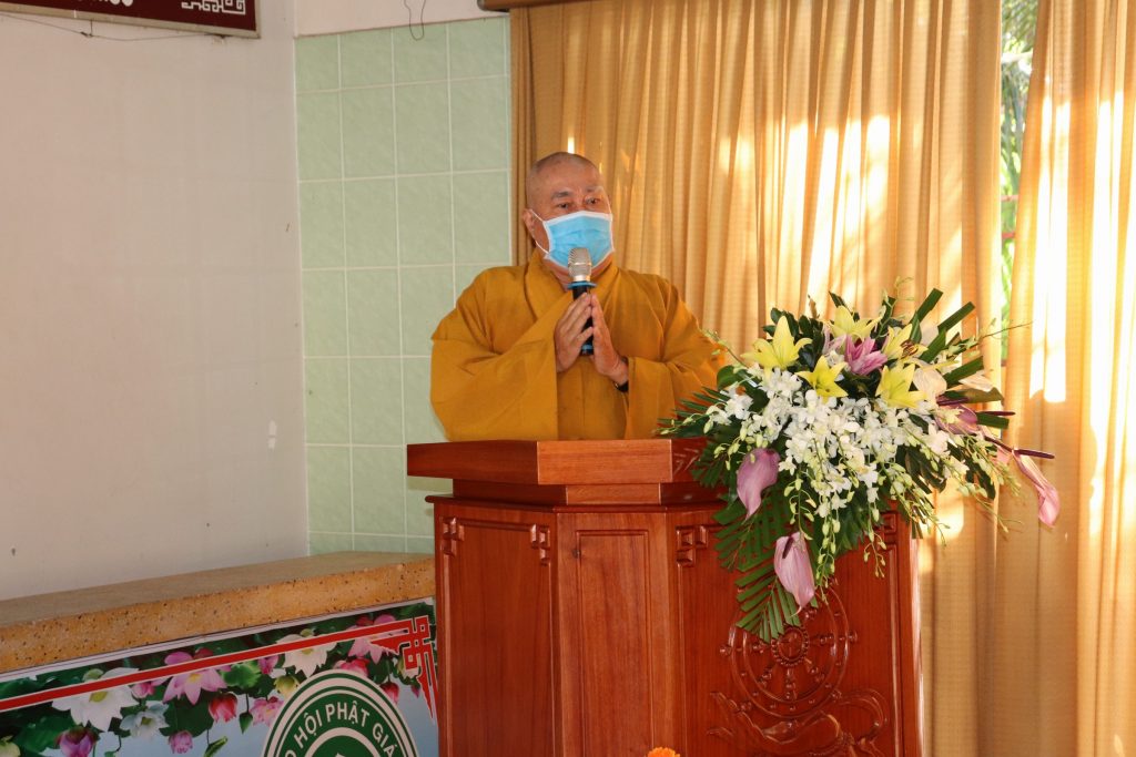 ĐĐ.Thích Huệ Phát - Chánh Thư ký BTS GHPGVN tỉnh Tiền Giang giới thiệu chương trình làm việc của buổi thăm viếng