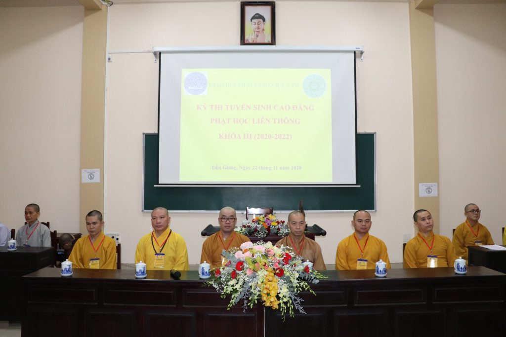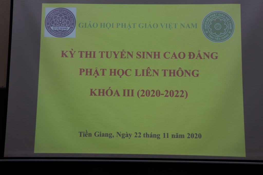 PSO – Sáng ngày 22/11/2020 (nhằm ngày 8/10 năm Canh Tý) Hội đồng Điều hành Học viện PGVN tại TP.HCM và Ban Giám hiệu Trường Trung cấp Phật học (TCPH) tỉnh Tiền Giang trọng thể tổ chức Khai mạc kỳ thi Tuyển sinh hệ Cao đẳng Phật học liên thông Khóa III (2020 – 2022) tại giảng đường Huệ Đăng - tổ đình Vĩnh Tràng, ấp Mỹ An, xã Mỹ Phong, TP.Mỹ Tho, tỉnh Tiền Giang.
