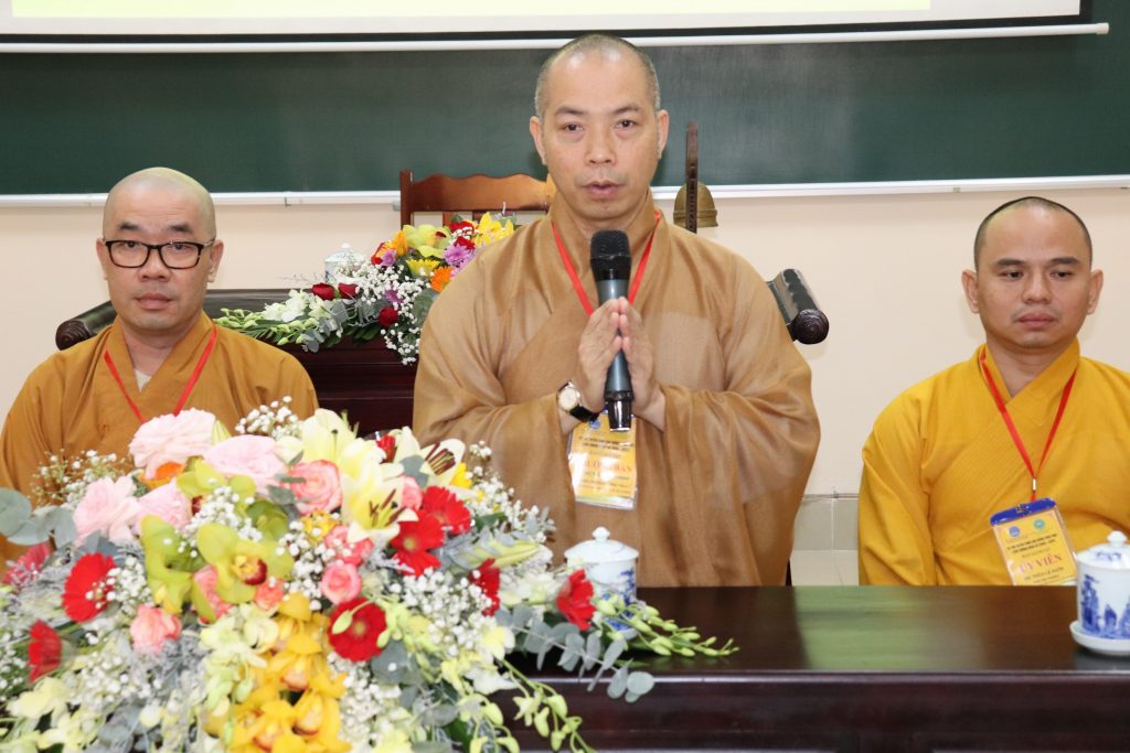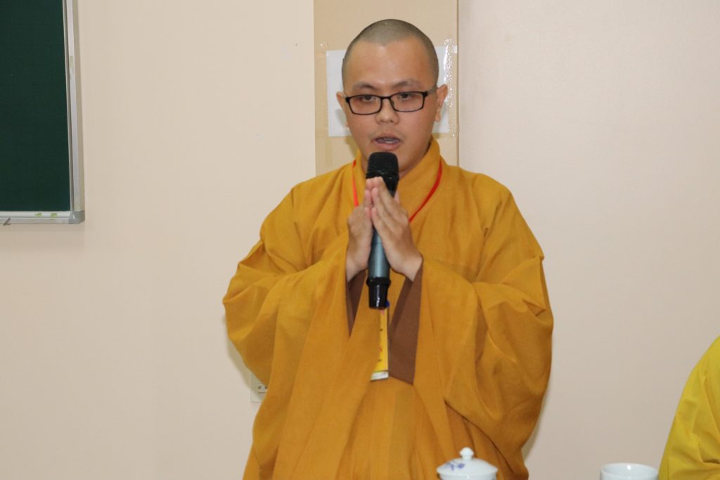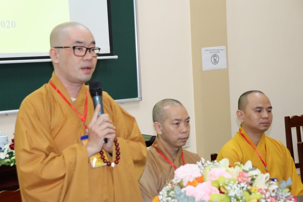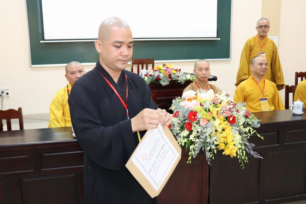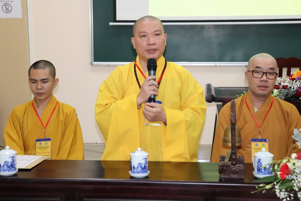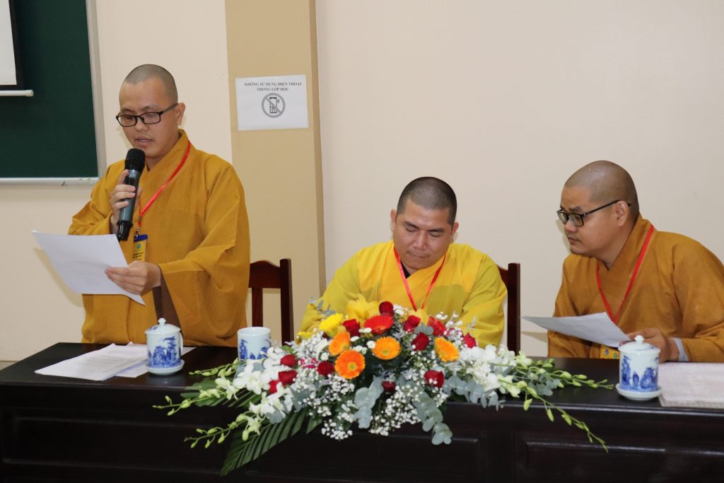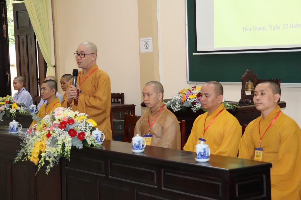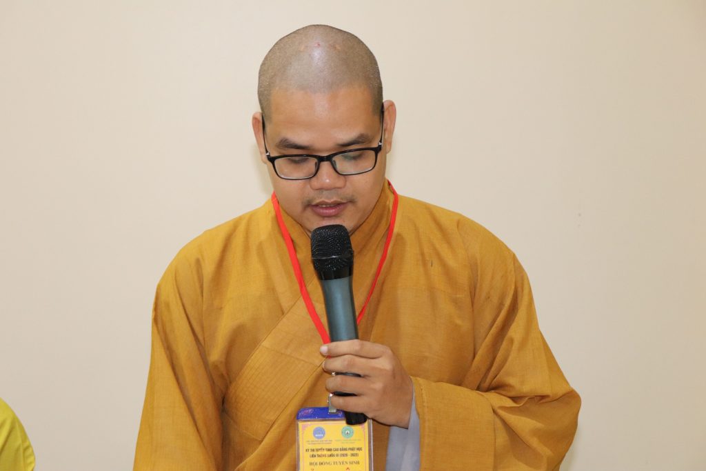 ĐĐ.Thích Ngọc Minh – Phó Văn phòng Trường TCPH tỉnh Tiền Giang cũng thay mặt Ban Thư ký Hội đồng Tuyển sinh thông qua cơ cấu tổ chức Hội đồng Tuyển sinh đến với Tăng Ni sinh.