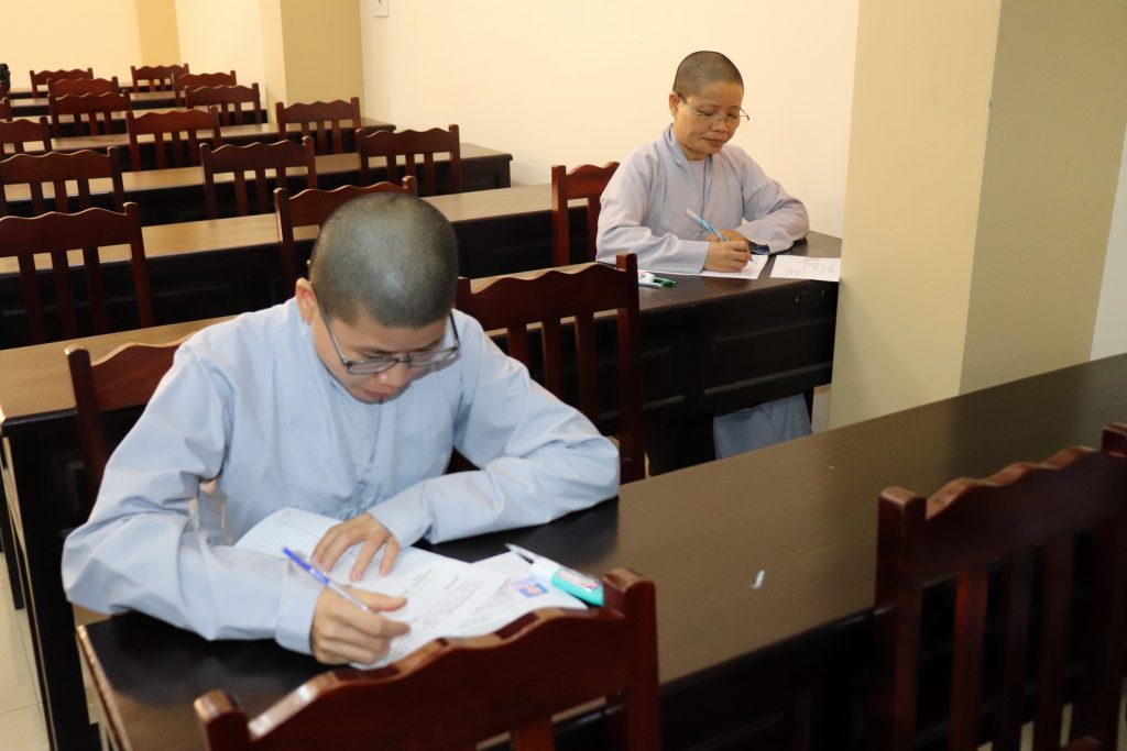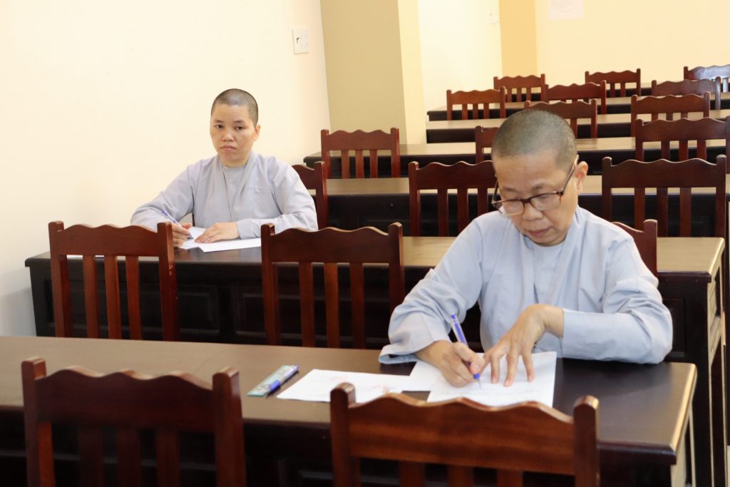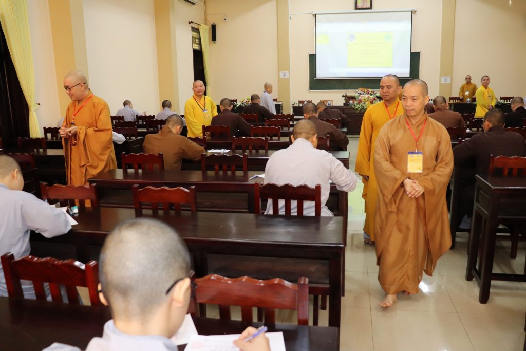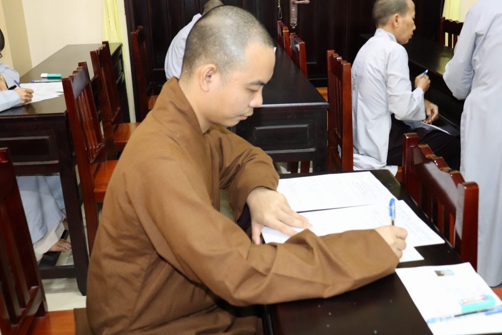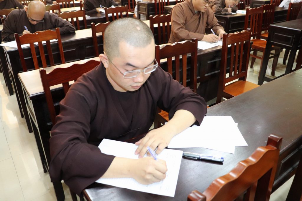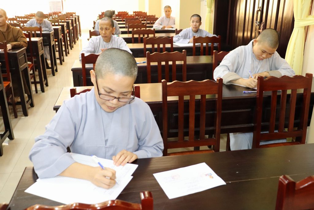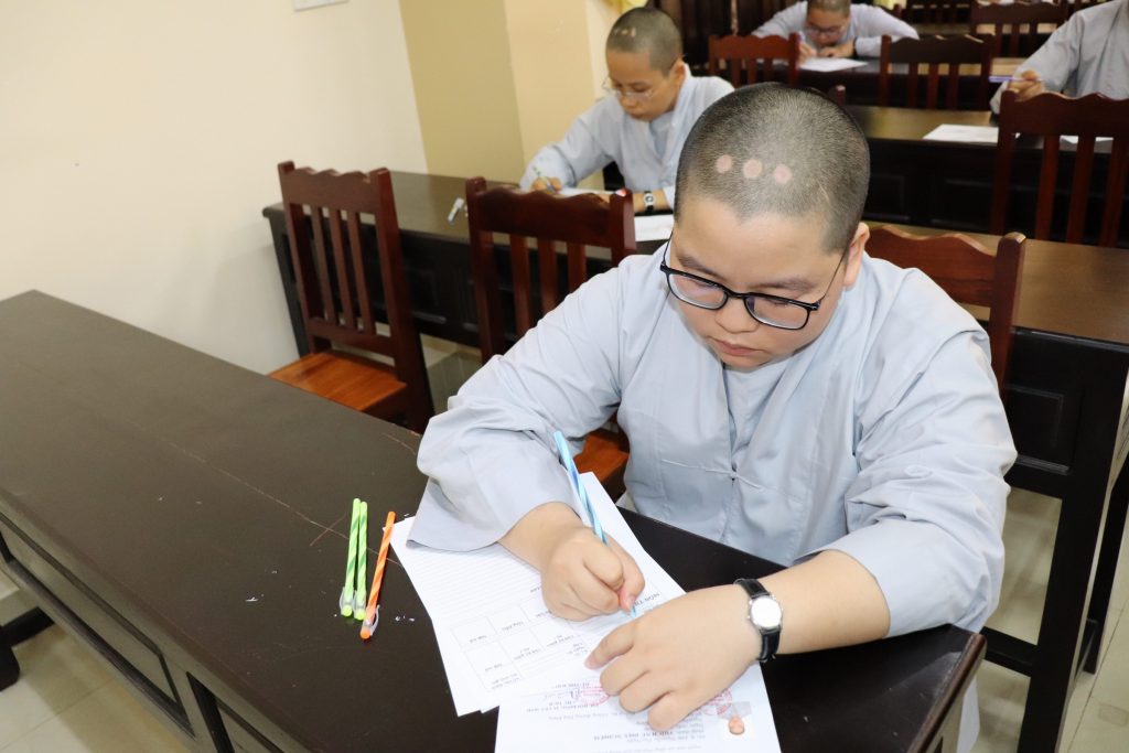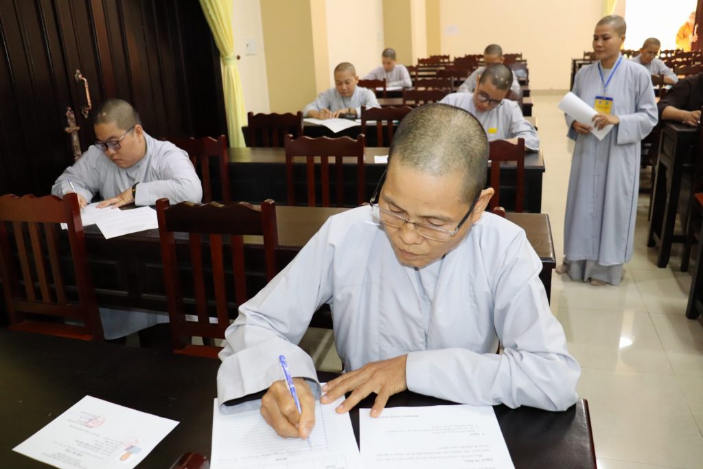 Sau buổi lễ Khai mạc là bắt đầu kỳ thi Tuyển sinh, các Tăng Ni sinh đã rất nghiêm túc làm bài thi. Tại kỳ thi lần này, các Thí sinh phải hoàn tất 3 môn: Phật học Căn bản, Văn học Phật giáo và Ngoại ngữ (Anh văn hoặc Hán văn). Buổi sáng thi Phật học 120 phút; buổi chiều thi Văn học Việt Nam và Hán văn mỗi môn 90 phút.