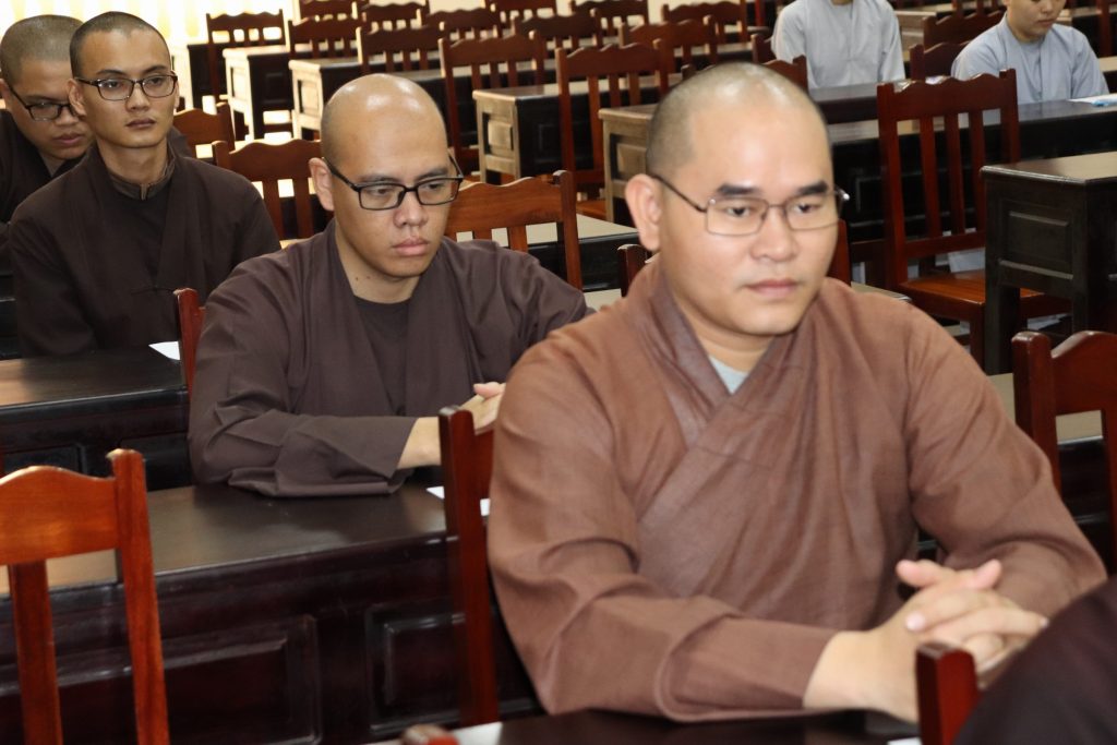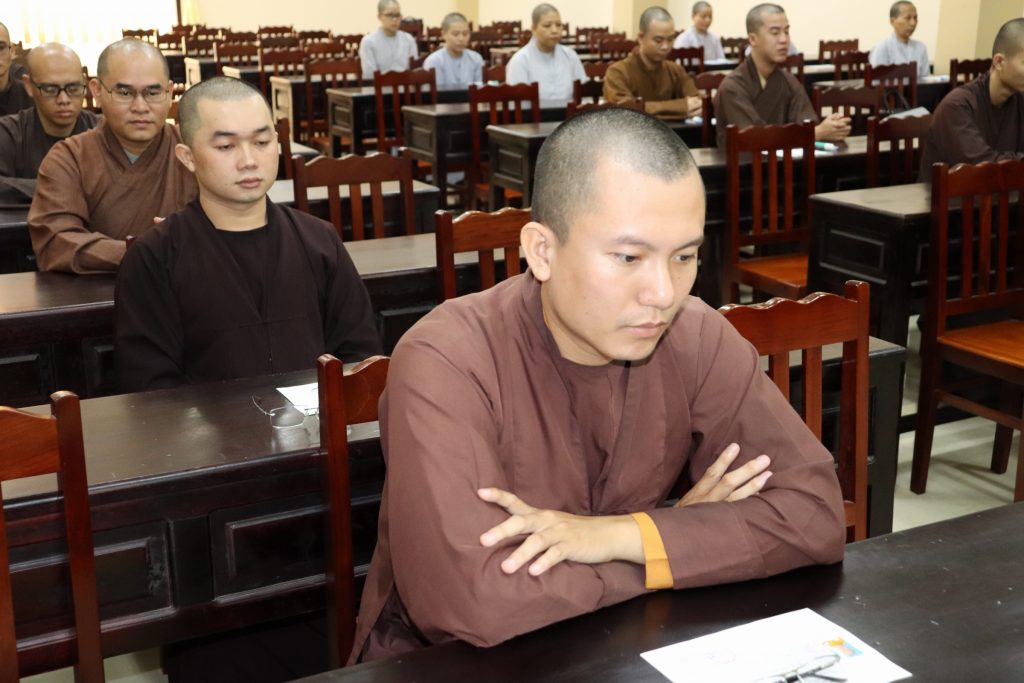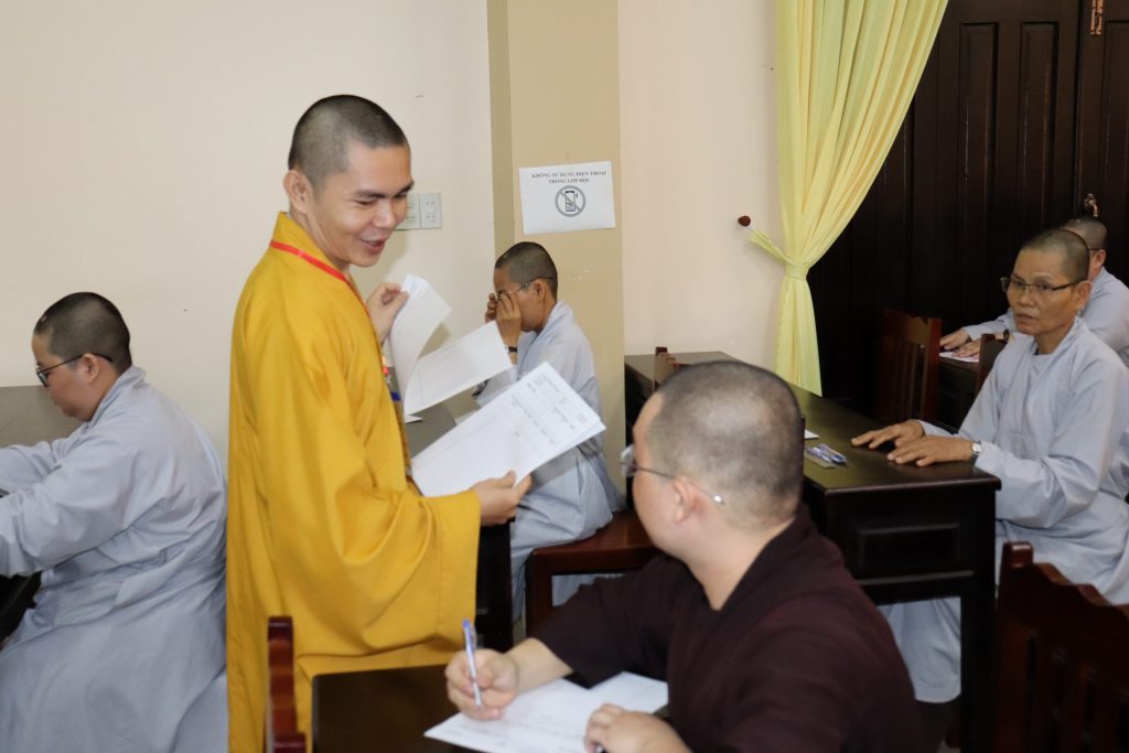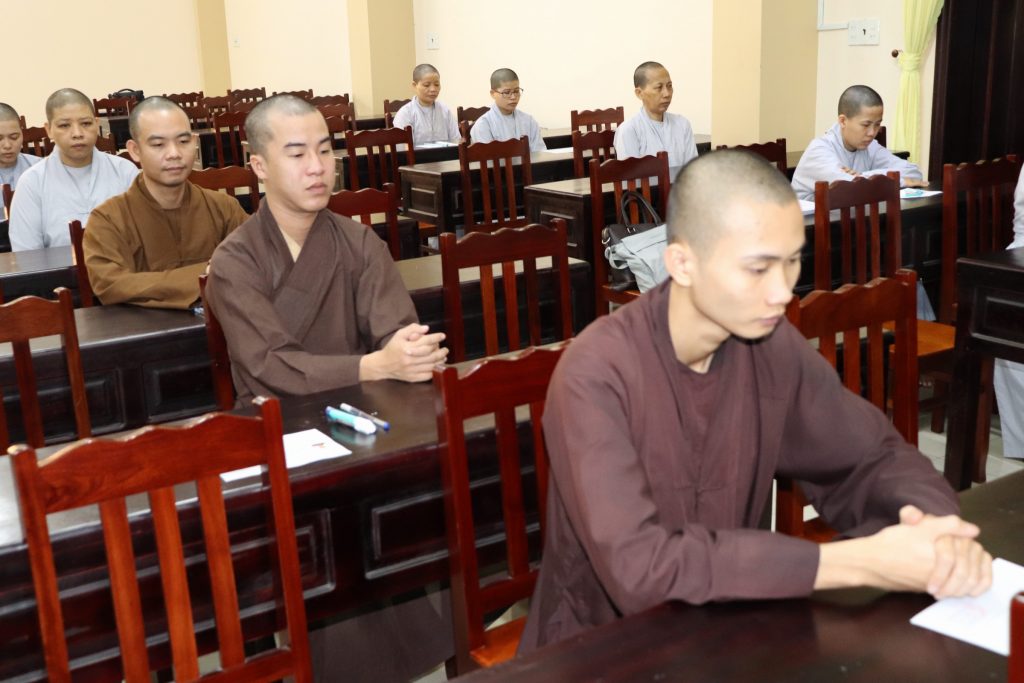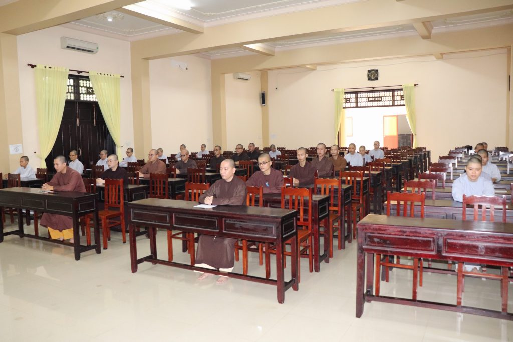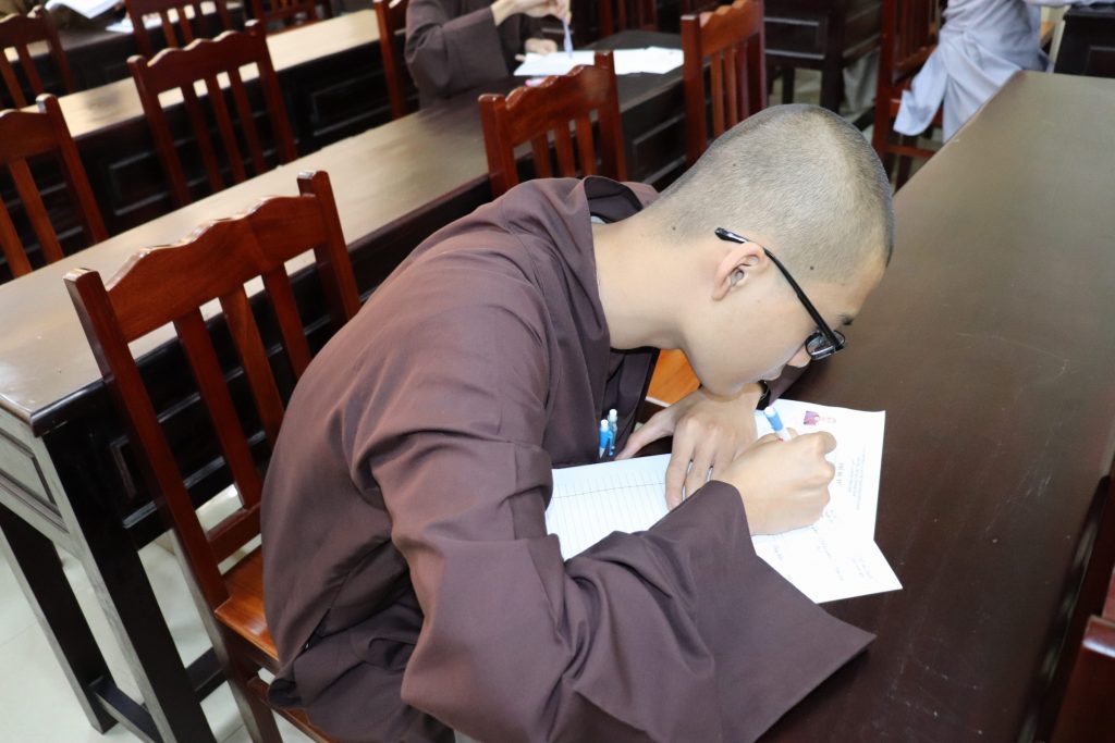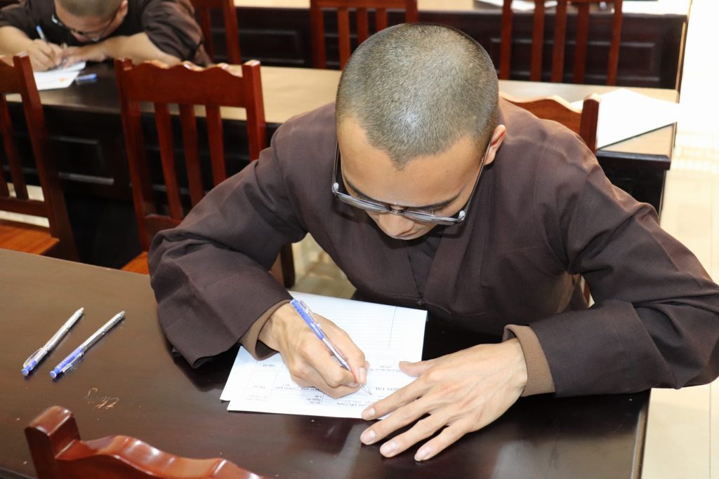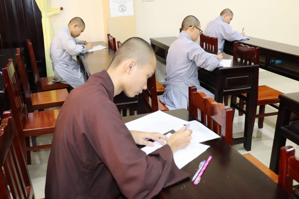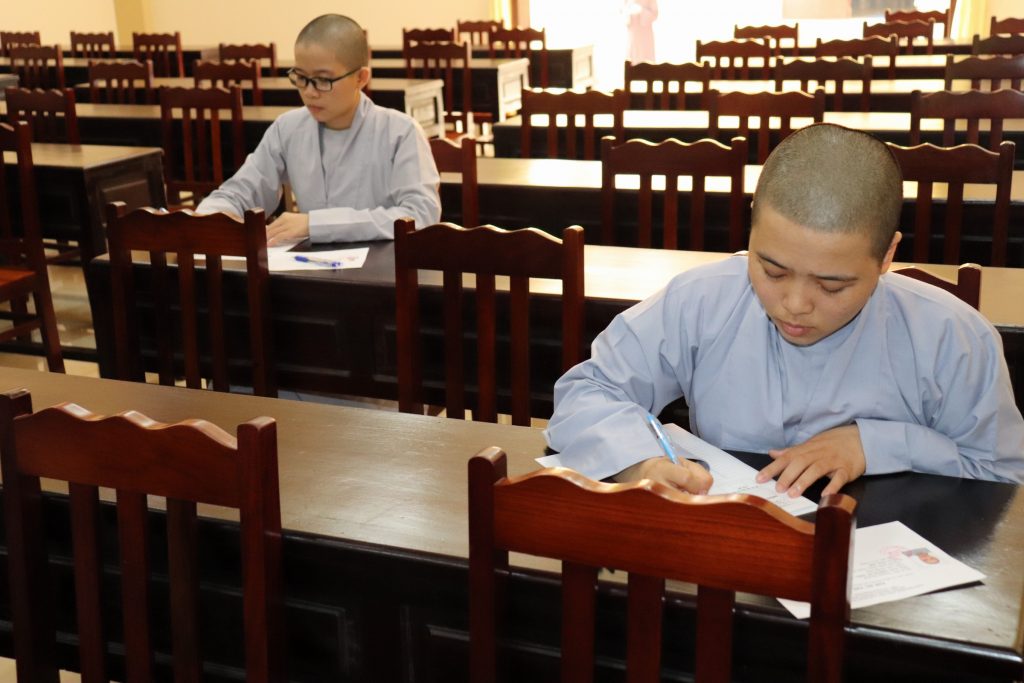 Sau buổi lễ Khai mạc là bắt đầu kỳ thi Tuyển sinh, các Tăng Ni sinh đã rất nghiêm túc làm bài thi. Tại kỳ thi lần này, các Thí sinh phải hoàn tất 3 môn: Phật học Căn bản, Văn học Phật giáo và Ngoại ngữ (Anh văn hoặc Hán văn). Buổi sáng thi Phật học 120 phút; buổi chiều thi Văn học Việt Nam và Hán văn mỗi môn 90 phút.