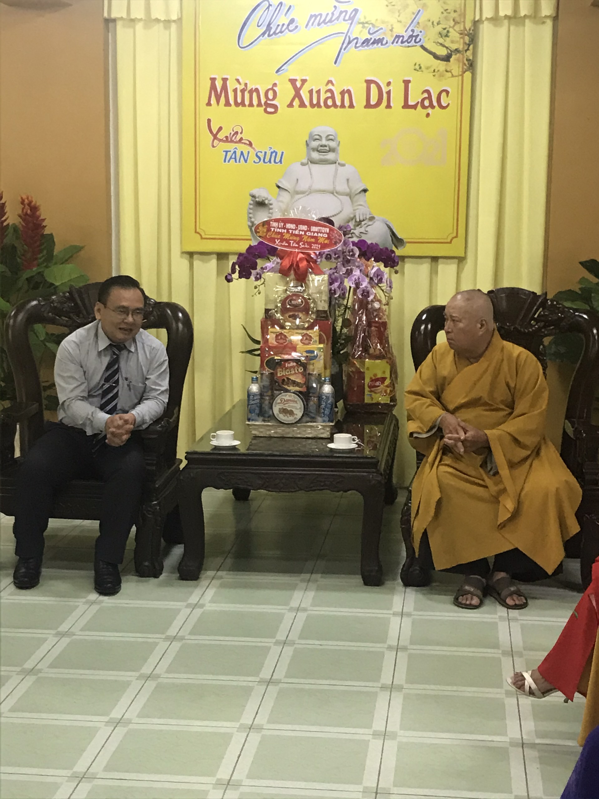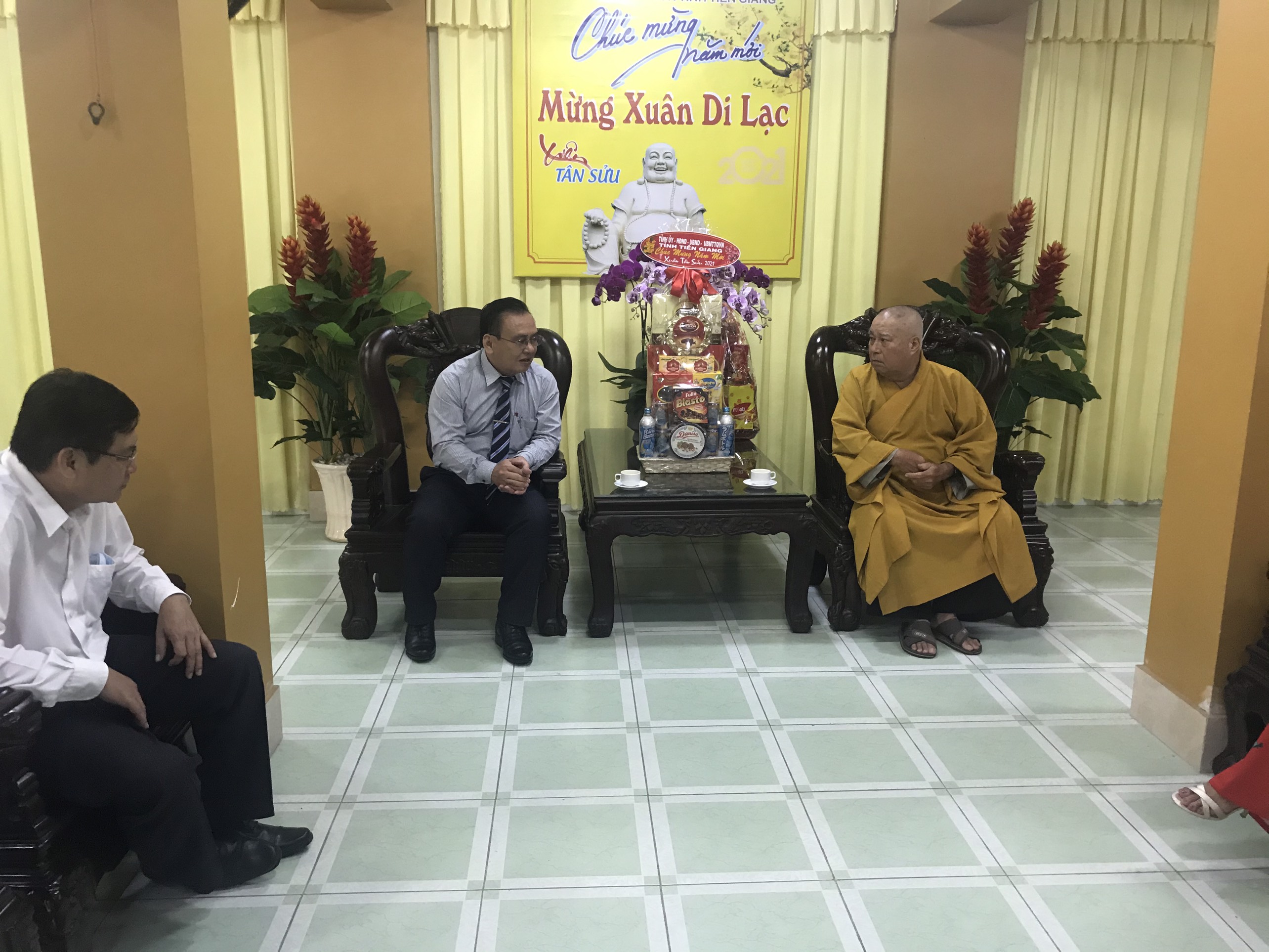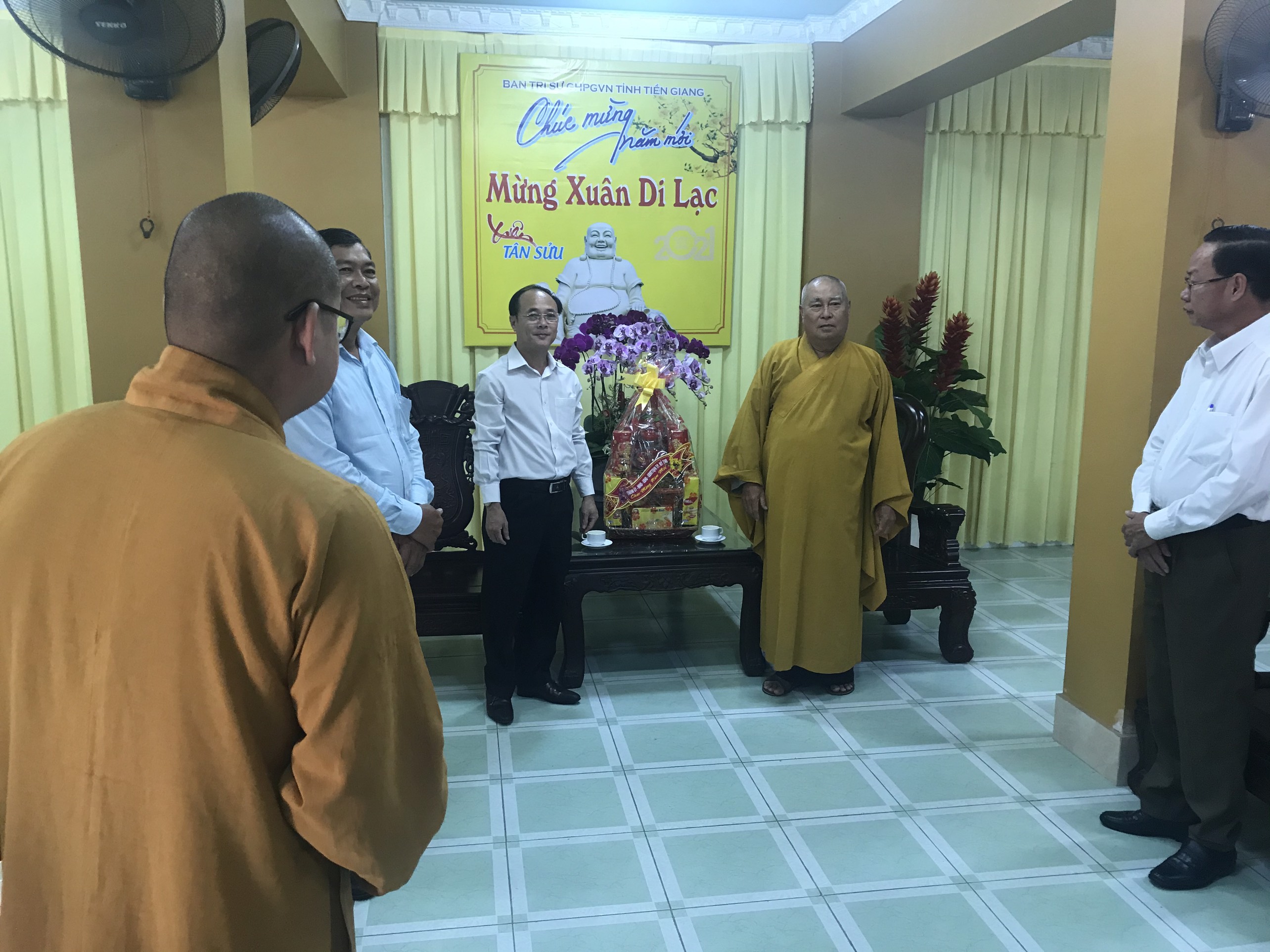 PSO - Trước thềm Xuân mới – Tân Sửu 2021; Sáng ngày 08/02/2021 (27 tháng Chạp năm Canh Tý), phái đoàn Tỉnh ủy, HĐND, UBND, UB MTTQVN tỉnh Tiền Giang do ông Võ Văn Bình – Phó Bí thư Thường trực Tỉnh ủy làm trưởng đoàn, đã đến thăm và chúc Tết chư Tôn đức lãnh đạo Ban Trị sự GHPGVN tỉnh Tiền Giang, tại Văn phòng Ban Trị sự - chùa Vĩnh Tràng, ấp Mỹ An, xã Mỹ Phong, TP.Mỹ Tho, tỉnh Tiền Giang.