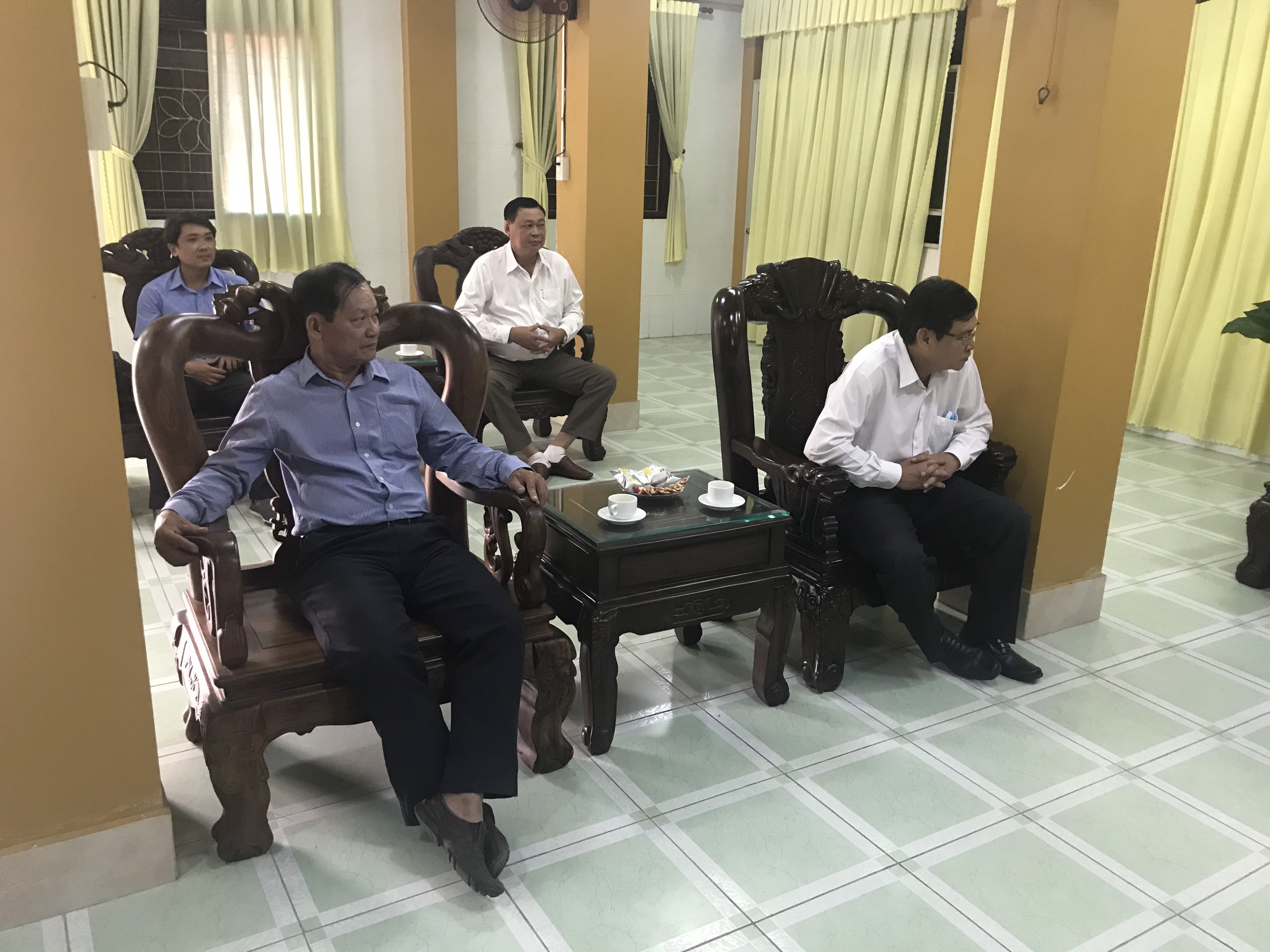 Đón tiếp phái đoàn có Hòa thượng Thích Huệ Minh - Ủy viên HĐTS, Trưởng Ban Trị sự GHPGVN tỉnh Tiền Giang cùng chư Tôn đức trong Văn phòng BTS Phật giáo tỉnh.