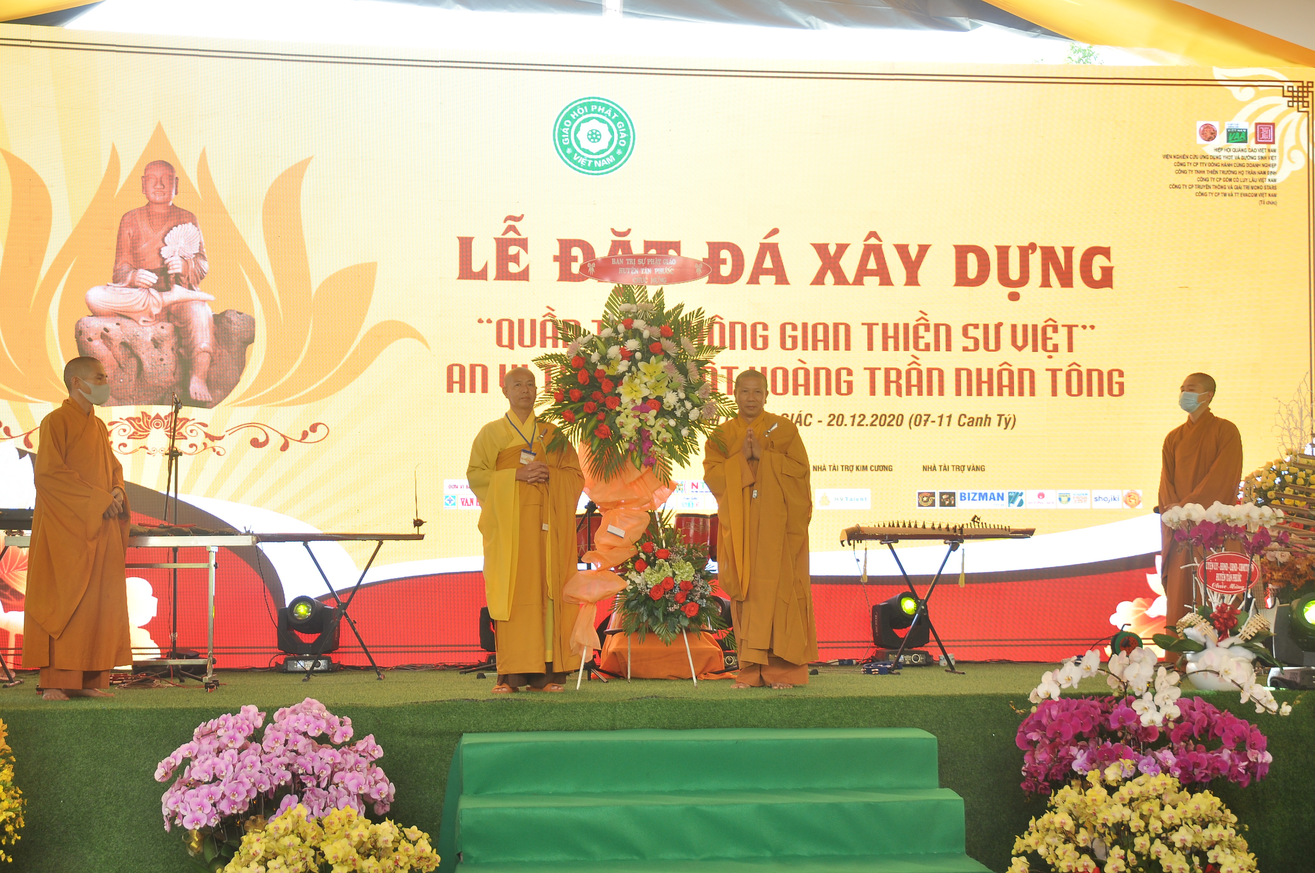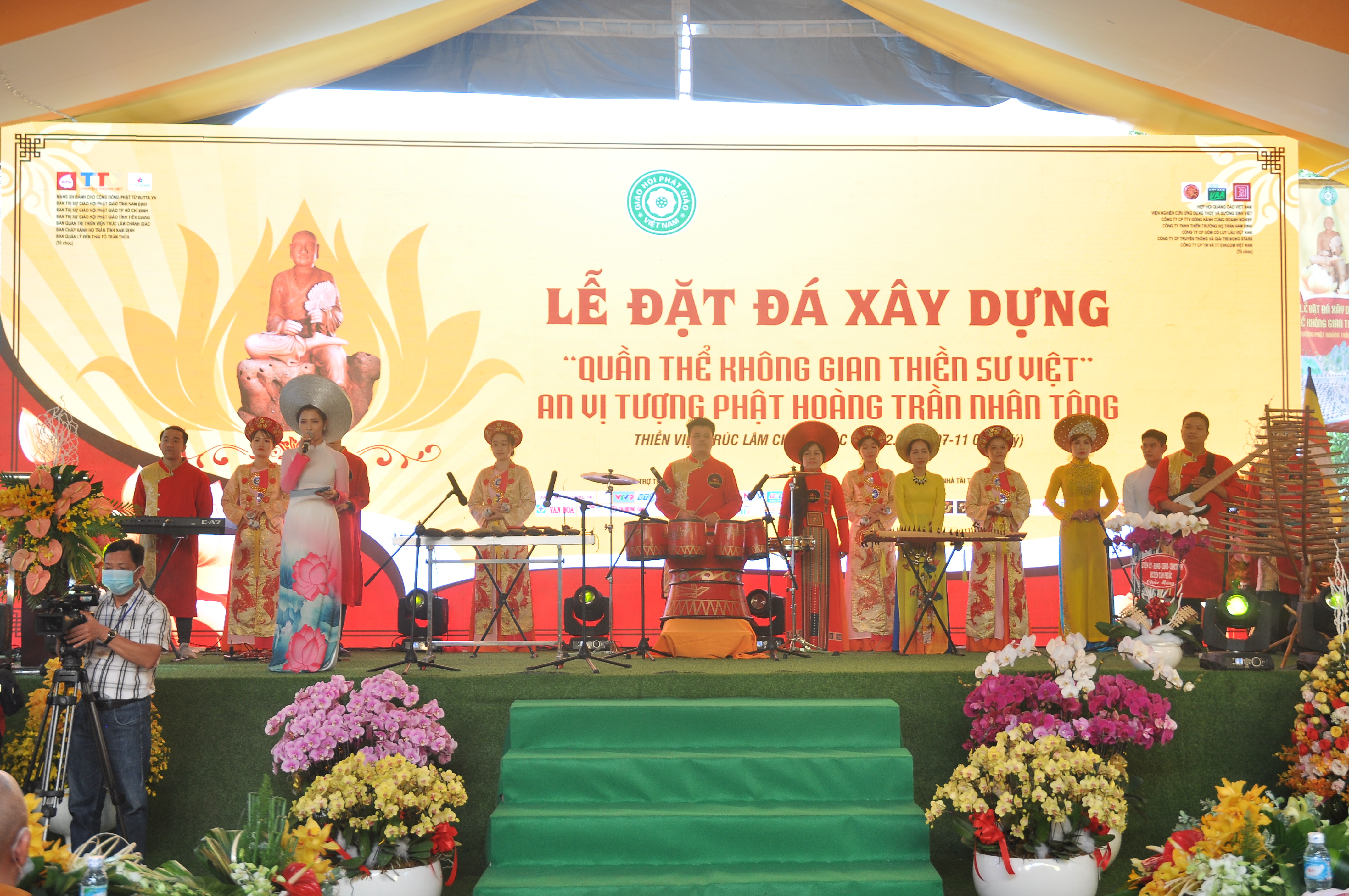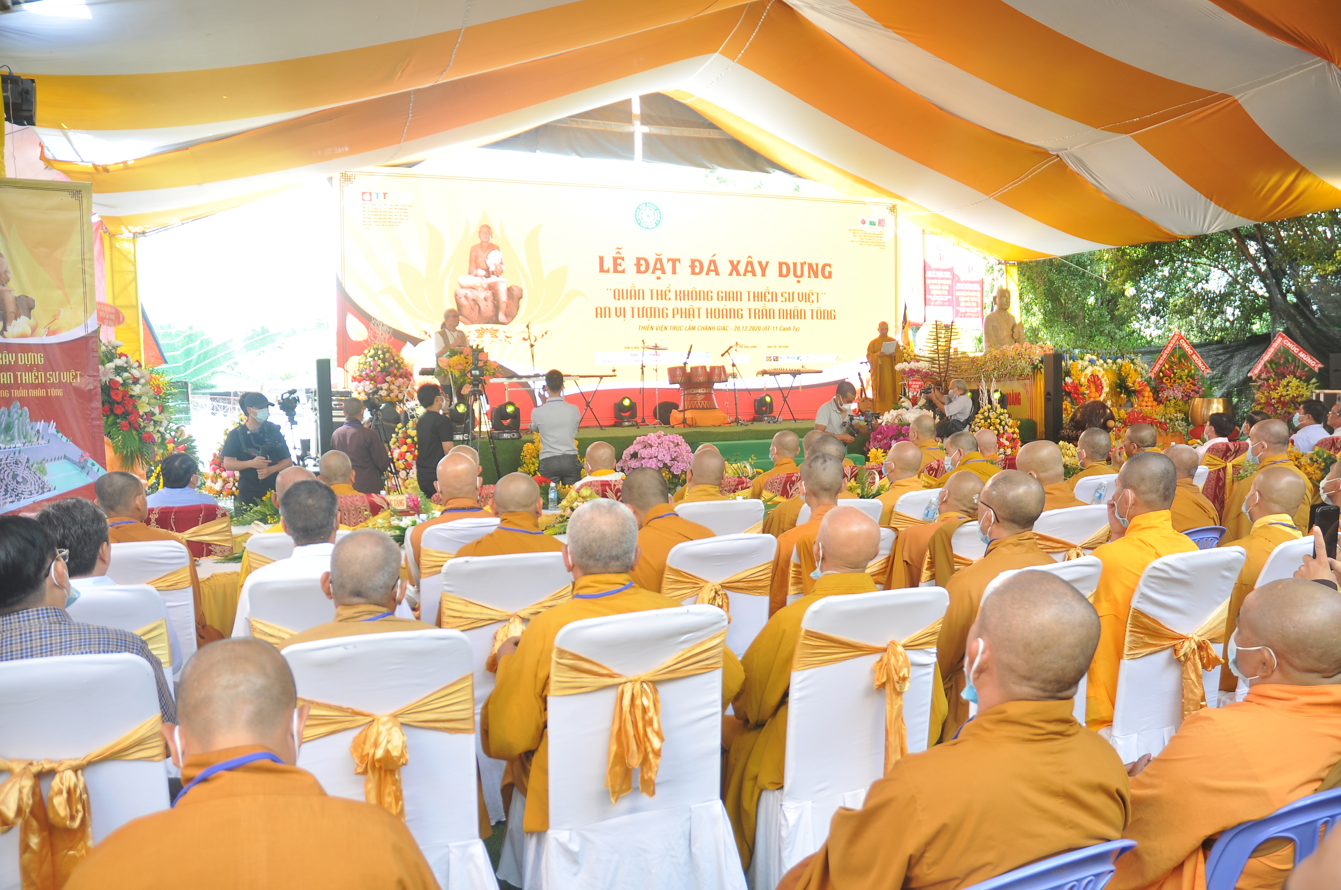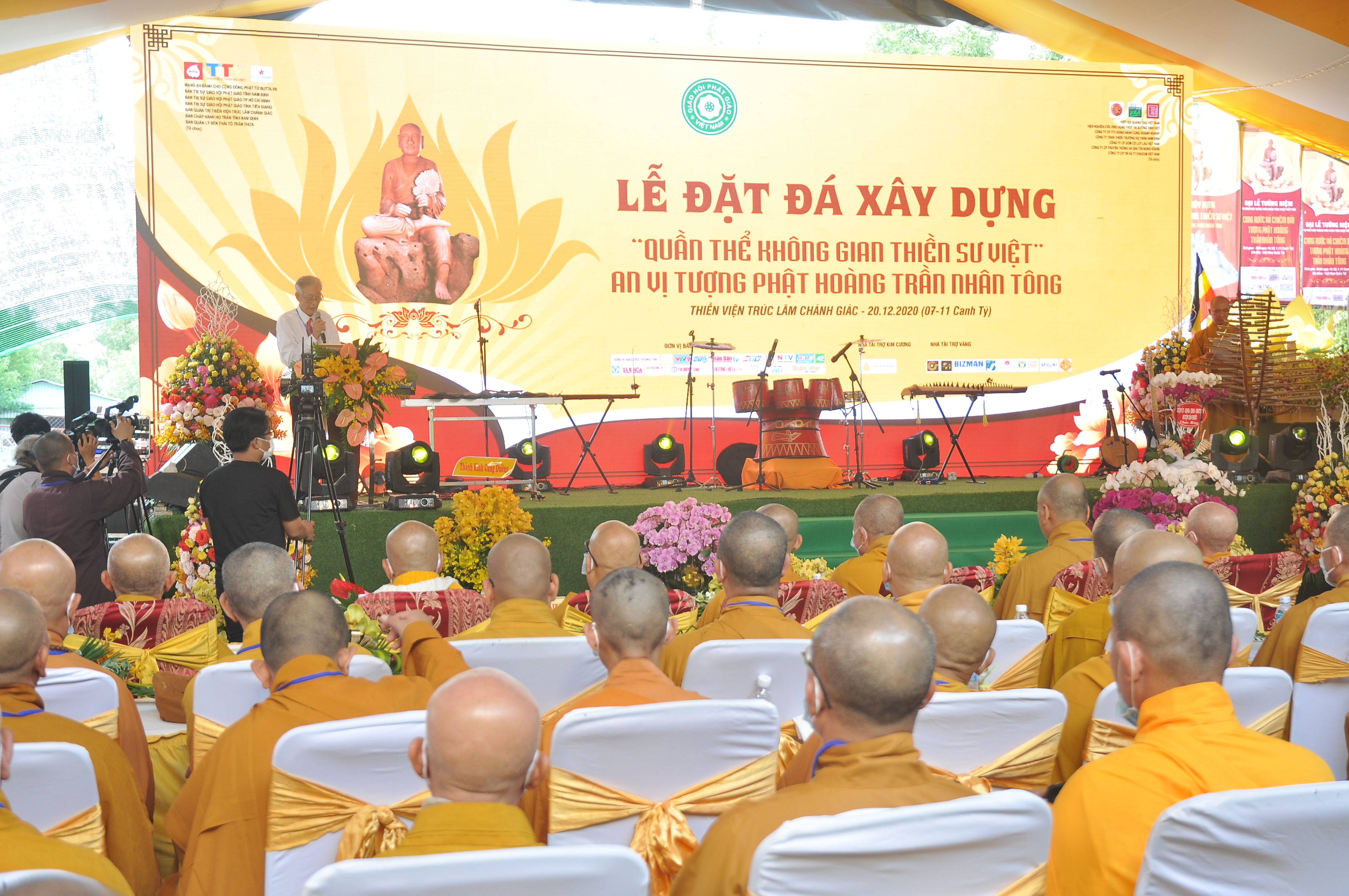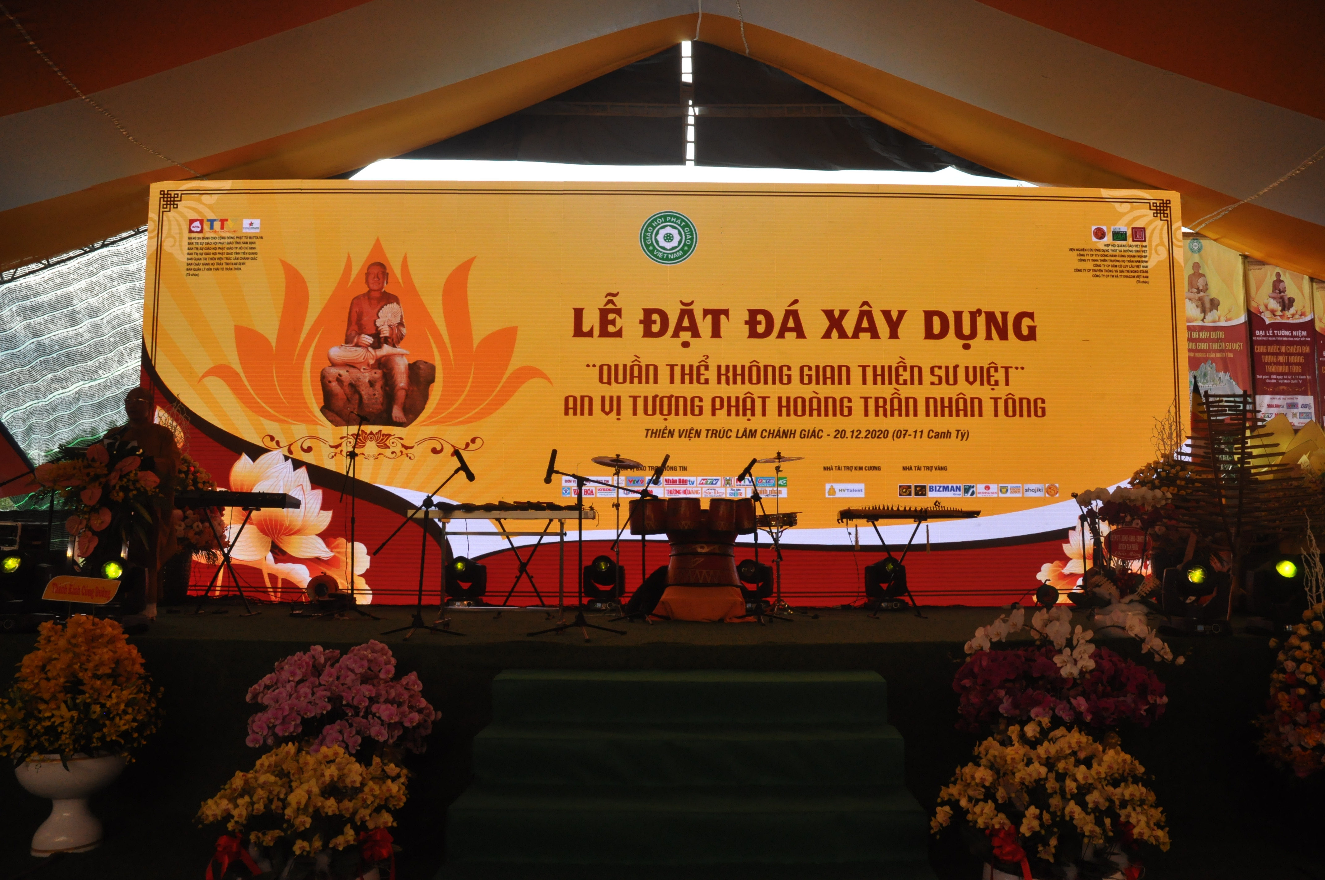 Phần cuối chương trình, chư Tôn đức, quý quan khách Niêm hương tại lễ đài an trí tôn tượng Phật Hoàng Trần Nhân Tông bằng gốm đỏ Luy Lâu cao 2,2m do Viện Nghiên cứu Ứng dụng Y học dân tộc và Dưỡng sinh Việt tiến cúng. Sau đó cử hành nghi thức động thổ đặt đá xây dựng khu “Quần thể không gian Thiền sư Việt” theo nghi thức truyền thống của Phật giáo.