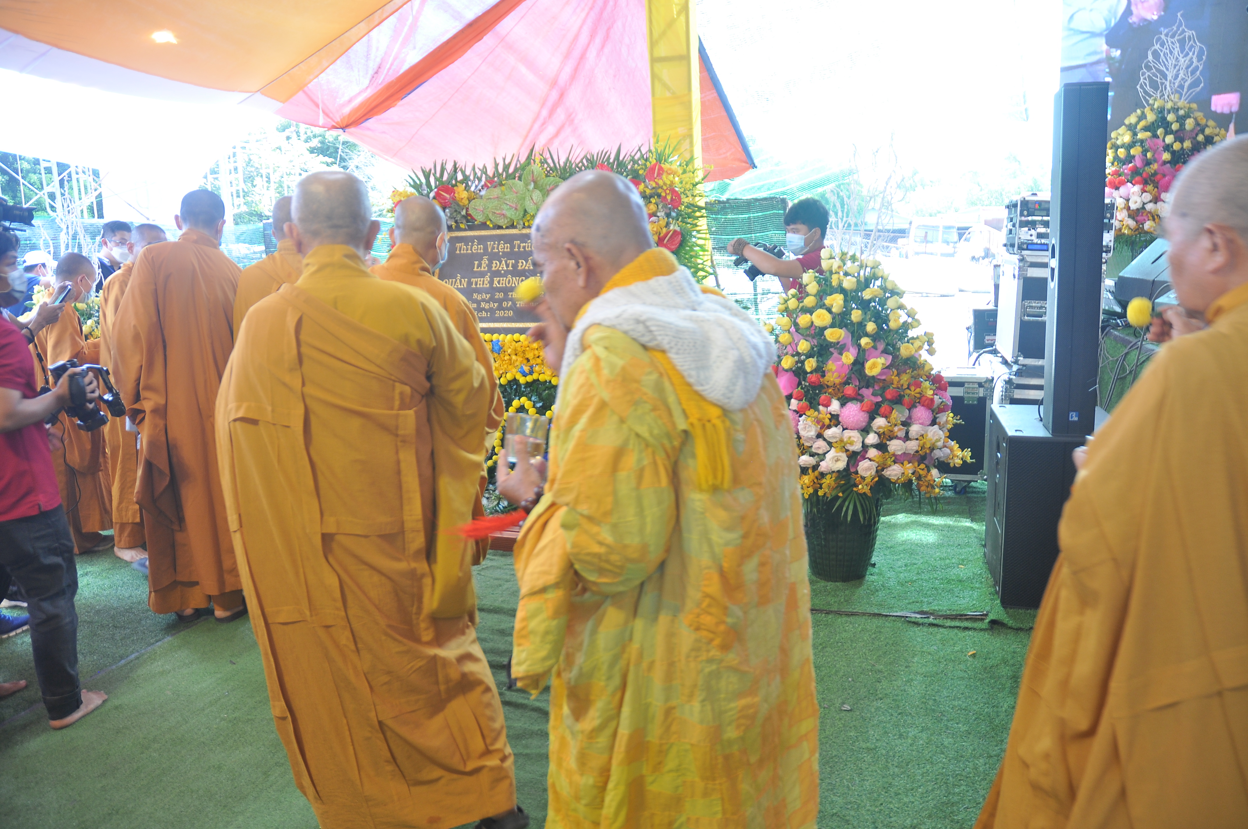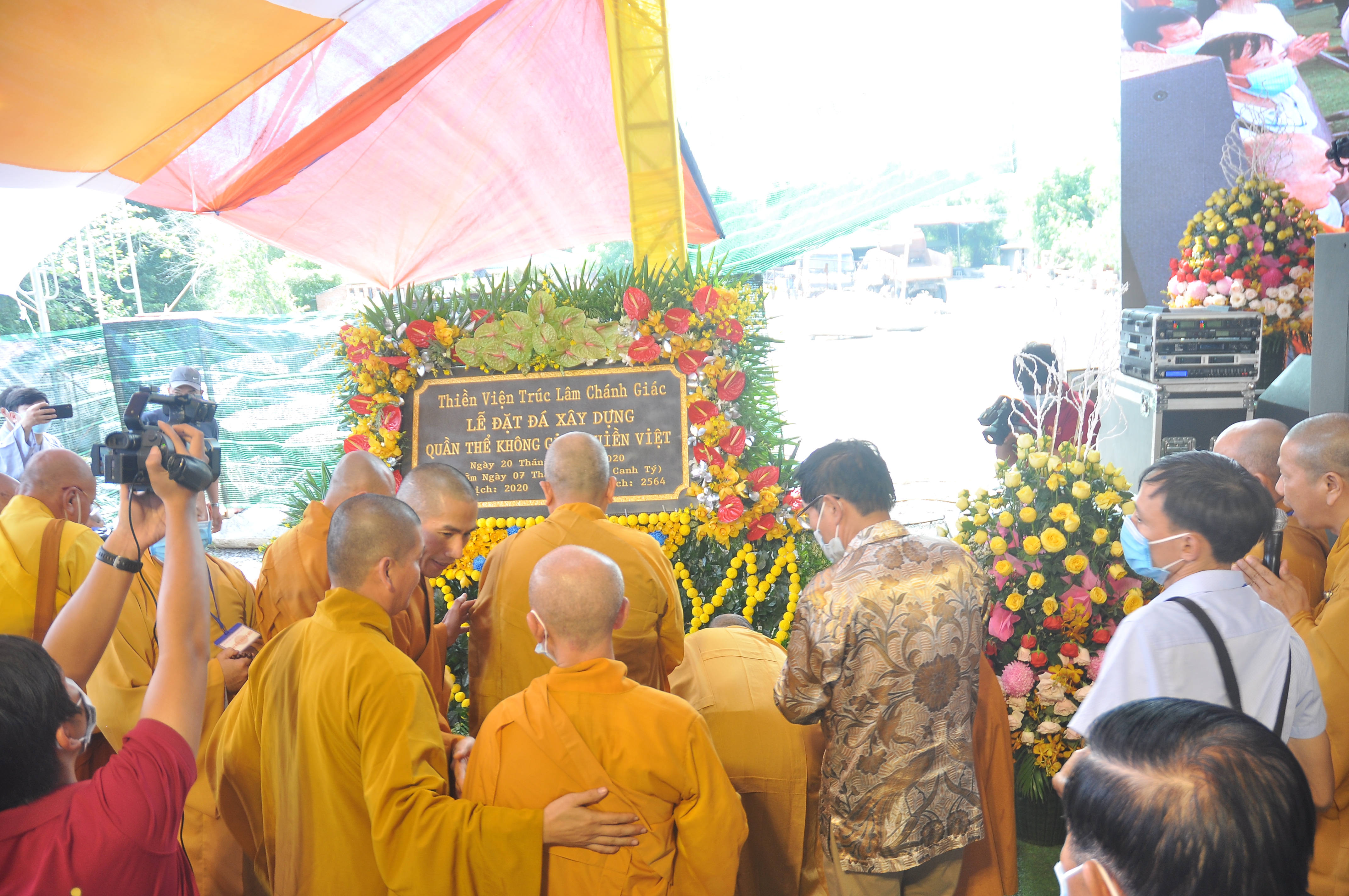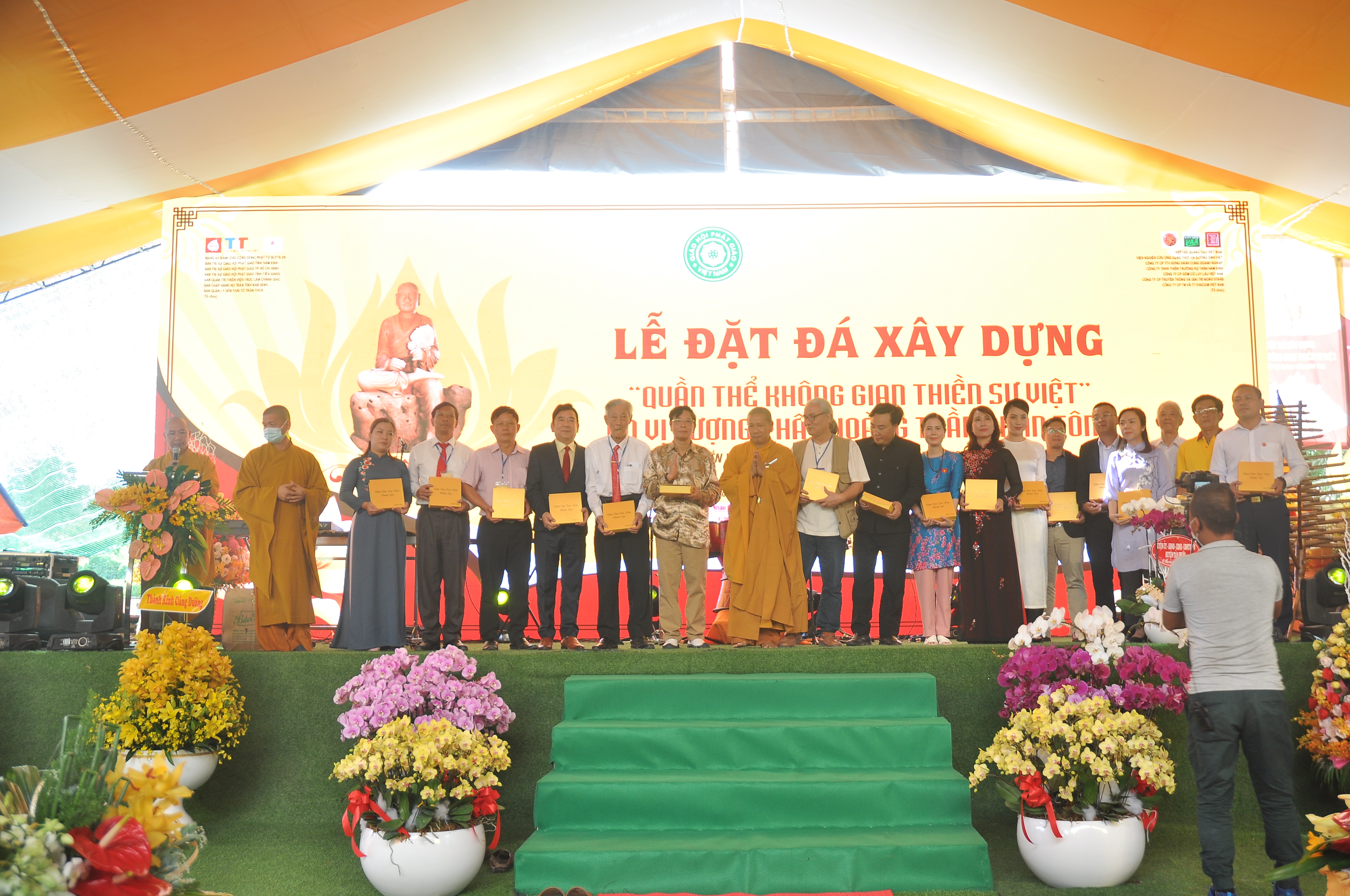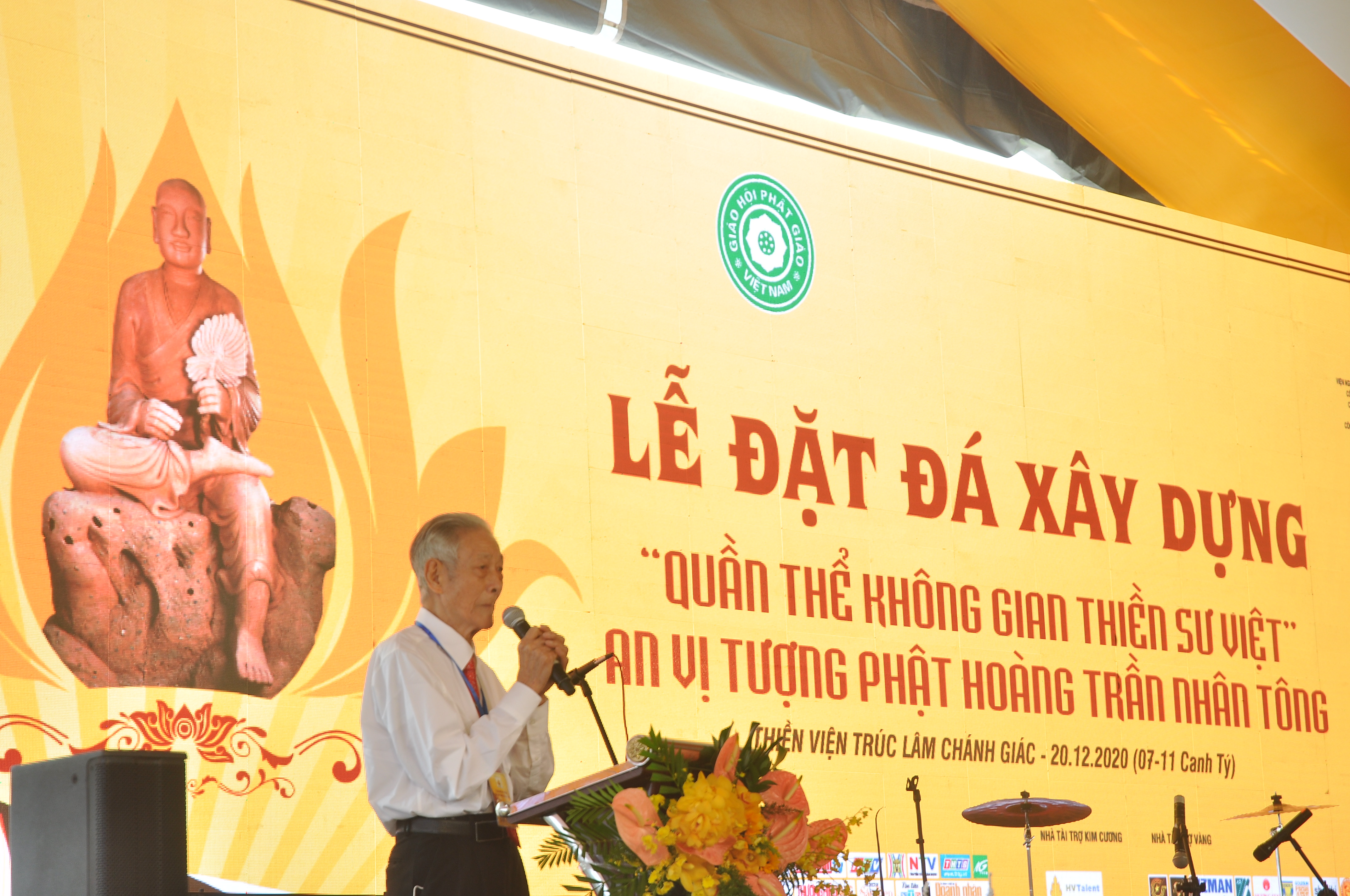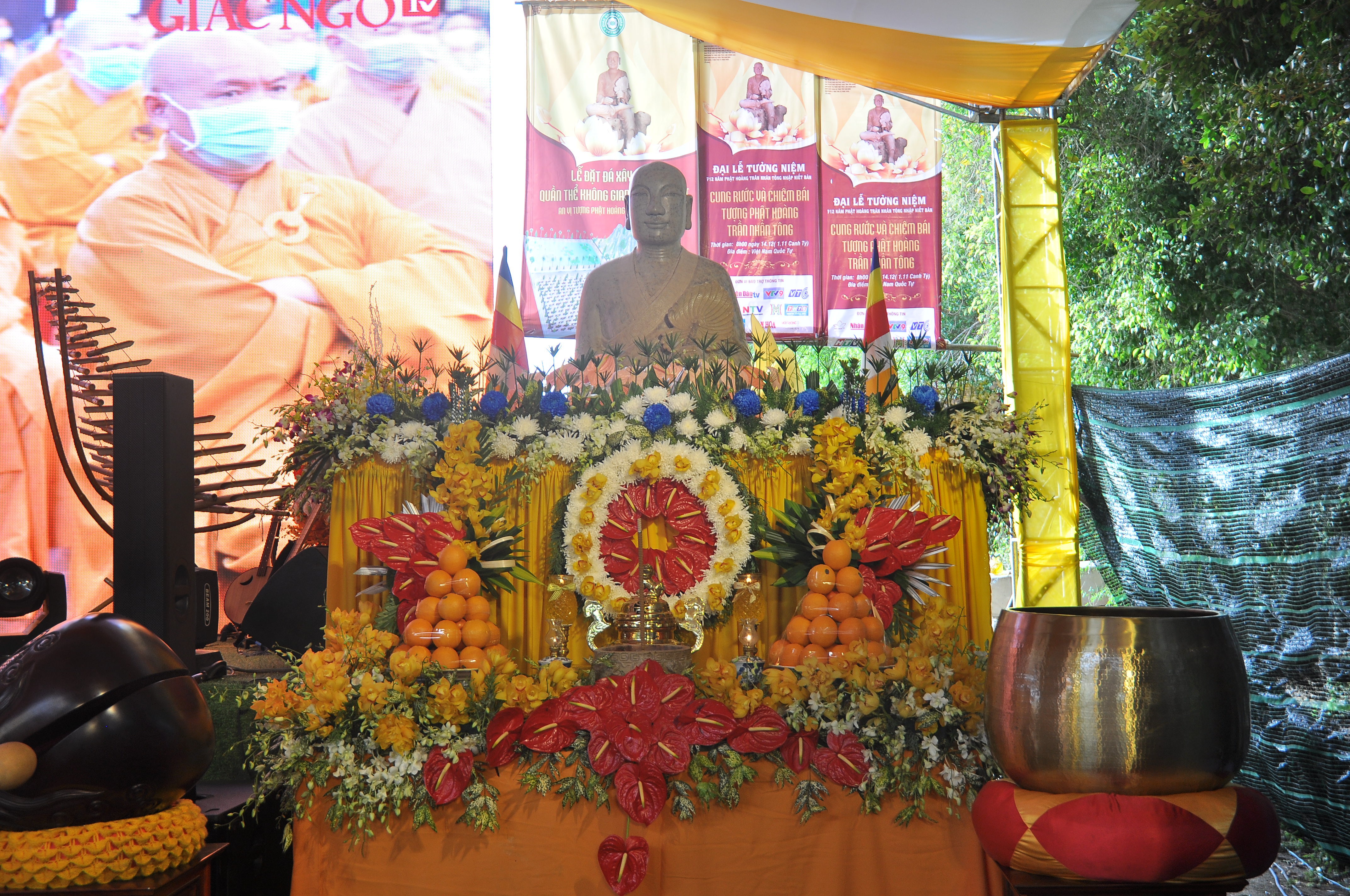 Phần cuối chương trình, chư Tôn đức, quý quan khách Niêm hương tại lễ đài an trí tôn tượng Phật Hoàng Trần Nhân Tông bằng gốm đỏ Luy Lâu cao 2,2m do Viện Nghiên cứu Ứng dụng Y học dân tộc và Dưỡng sinh Việt tiến cúng. Sau đó cử hành nghi thức động thổ đặt đá xây dựng khu “Quần thể không gian Thiền sư Việt” theo nghi thức truyền thống của Phật giáo.