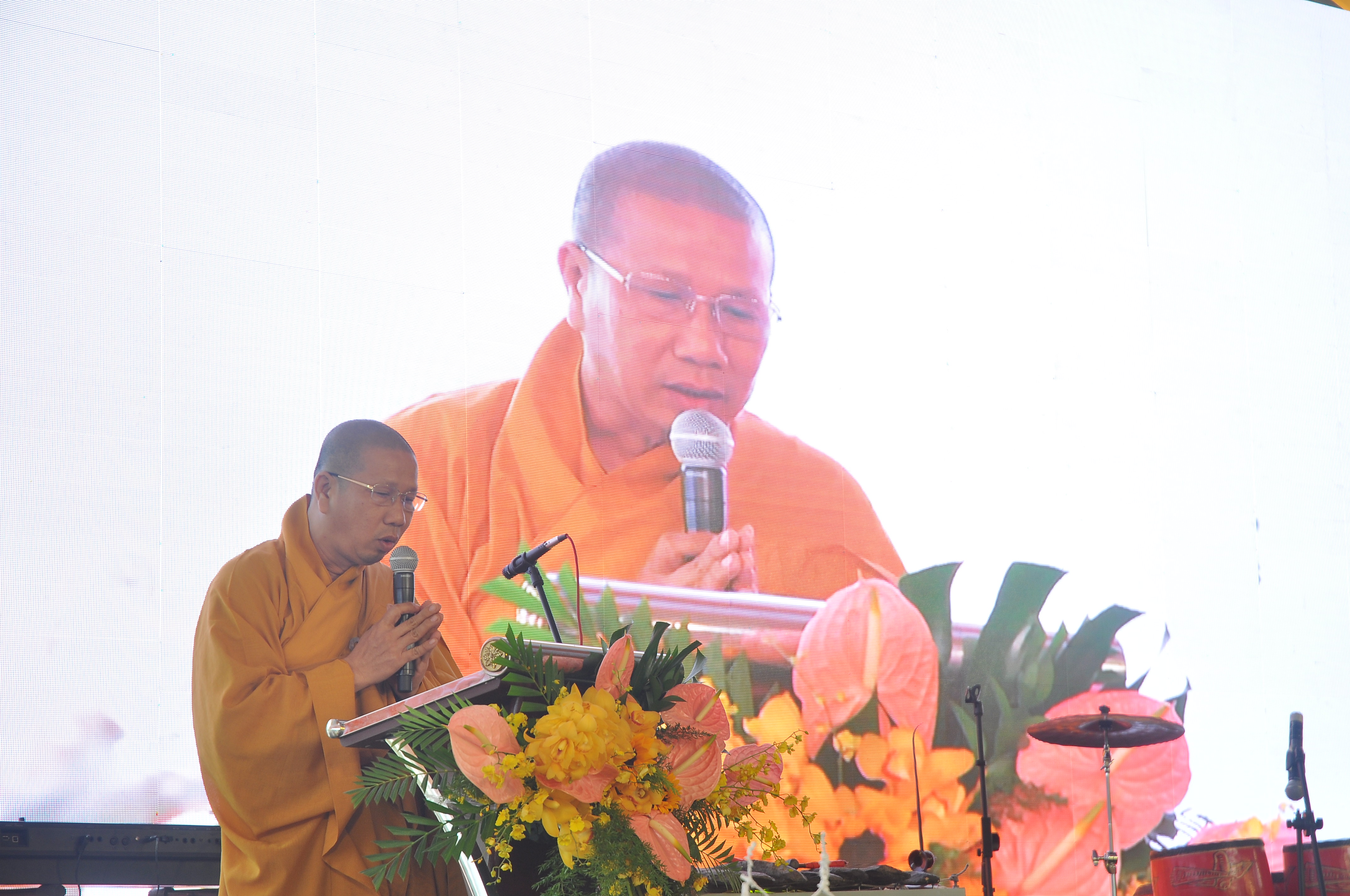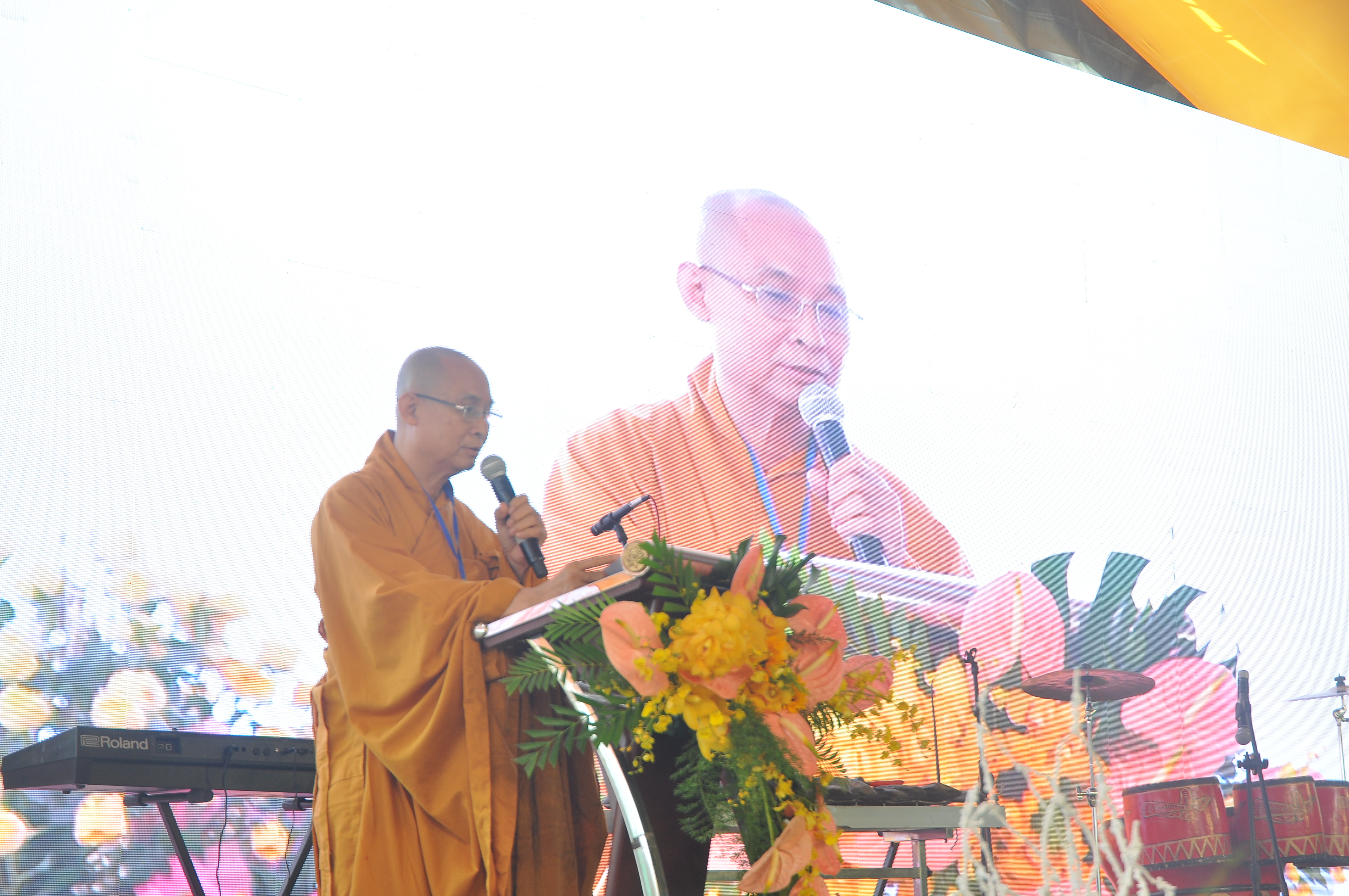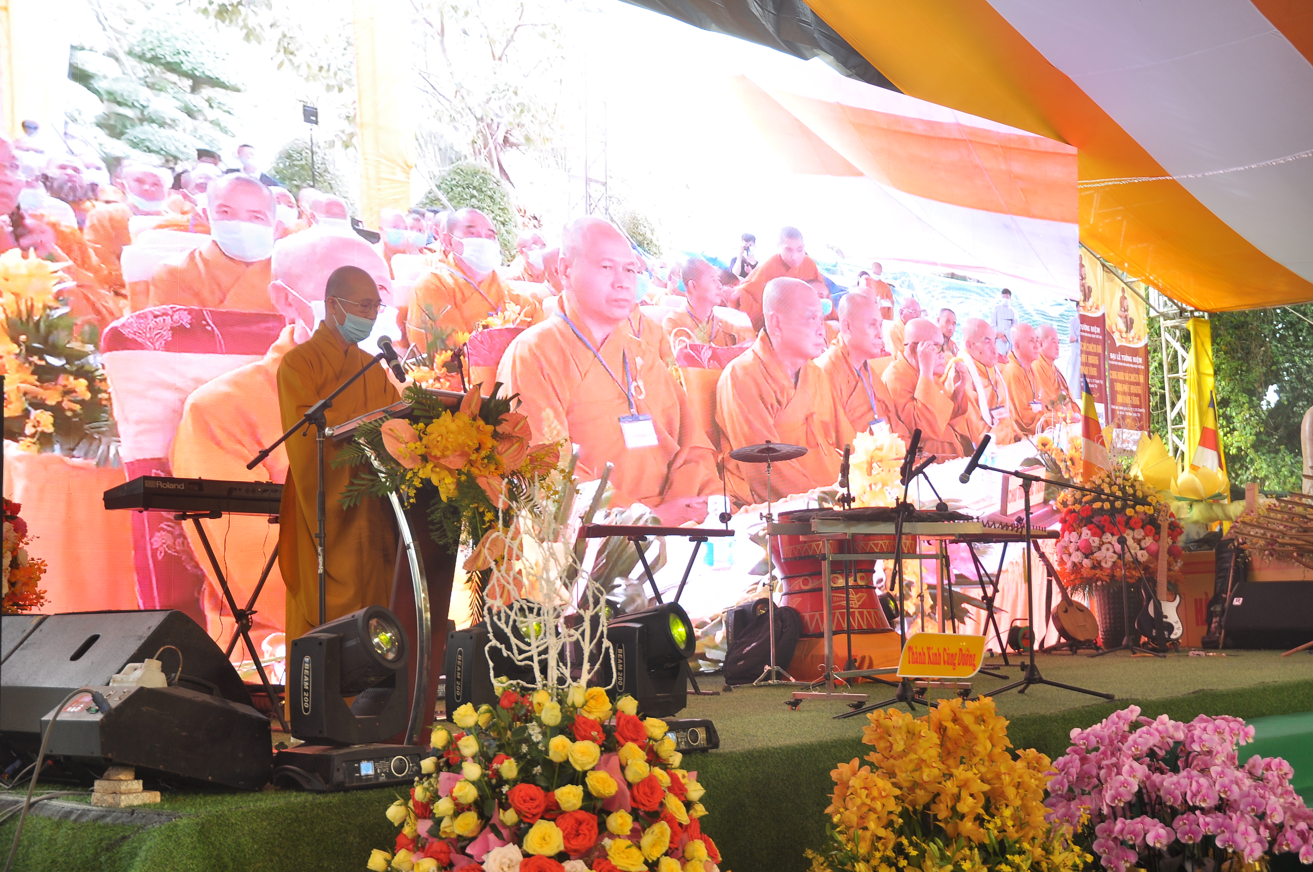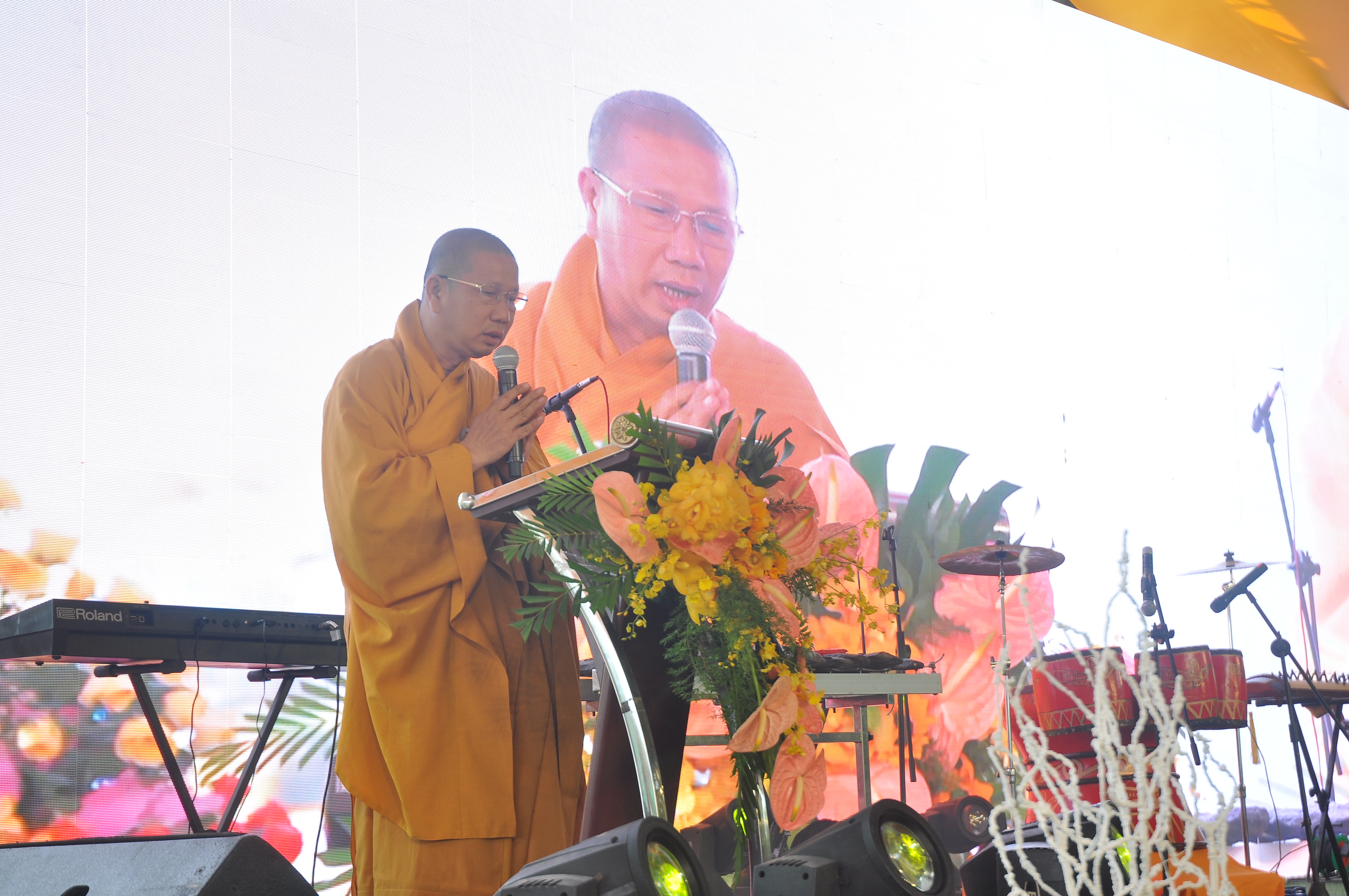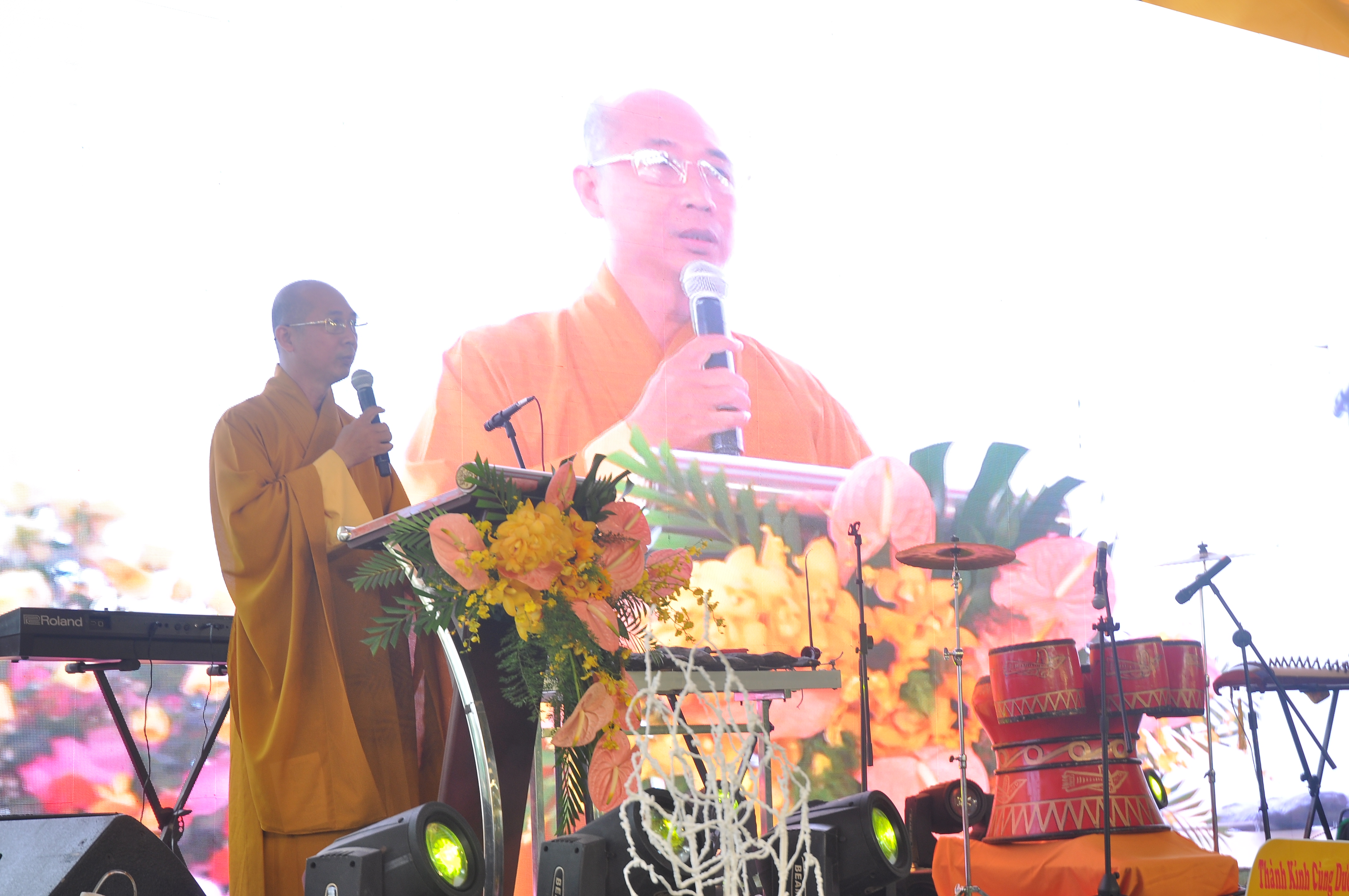 TT.Thích Thông Hạnh. - Phó trưởng Ban Quản trị thiền phái Trúc Lâm tuyên đọc bức thông điệp đạo từ của Hòa thượng Thích Thanh Từ - Phó Pháp chủ GHPGVN, Tông chủ Thiền phái Trúc Lâm Việt Nam gửi đến buổi lễ.