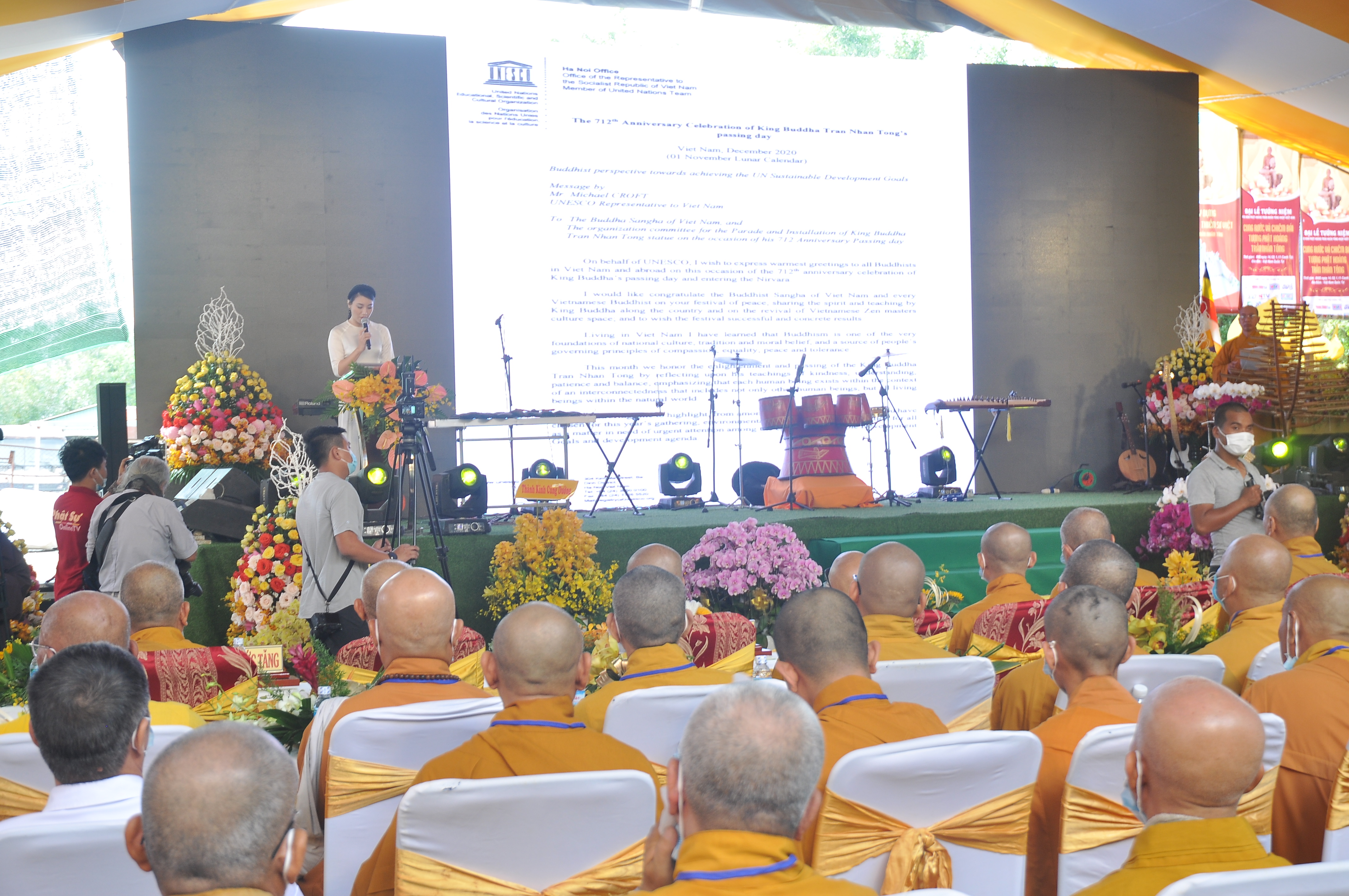 Tại buổi lễ, Á hậu Doanh nhân thế giới người Việt 2018 - Trần Bảo Linh đã đọc bức thông điệp của ngài Michael Croft - Trưởng đại diện UNESCO tại Việt Nam về việc cần bảo vệ và phát huy những giá trị và bản sắc văn hóa của Thiền Việt.